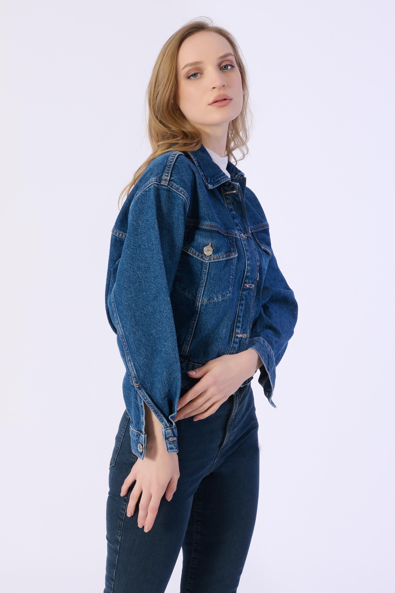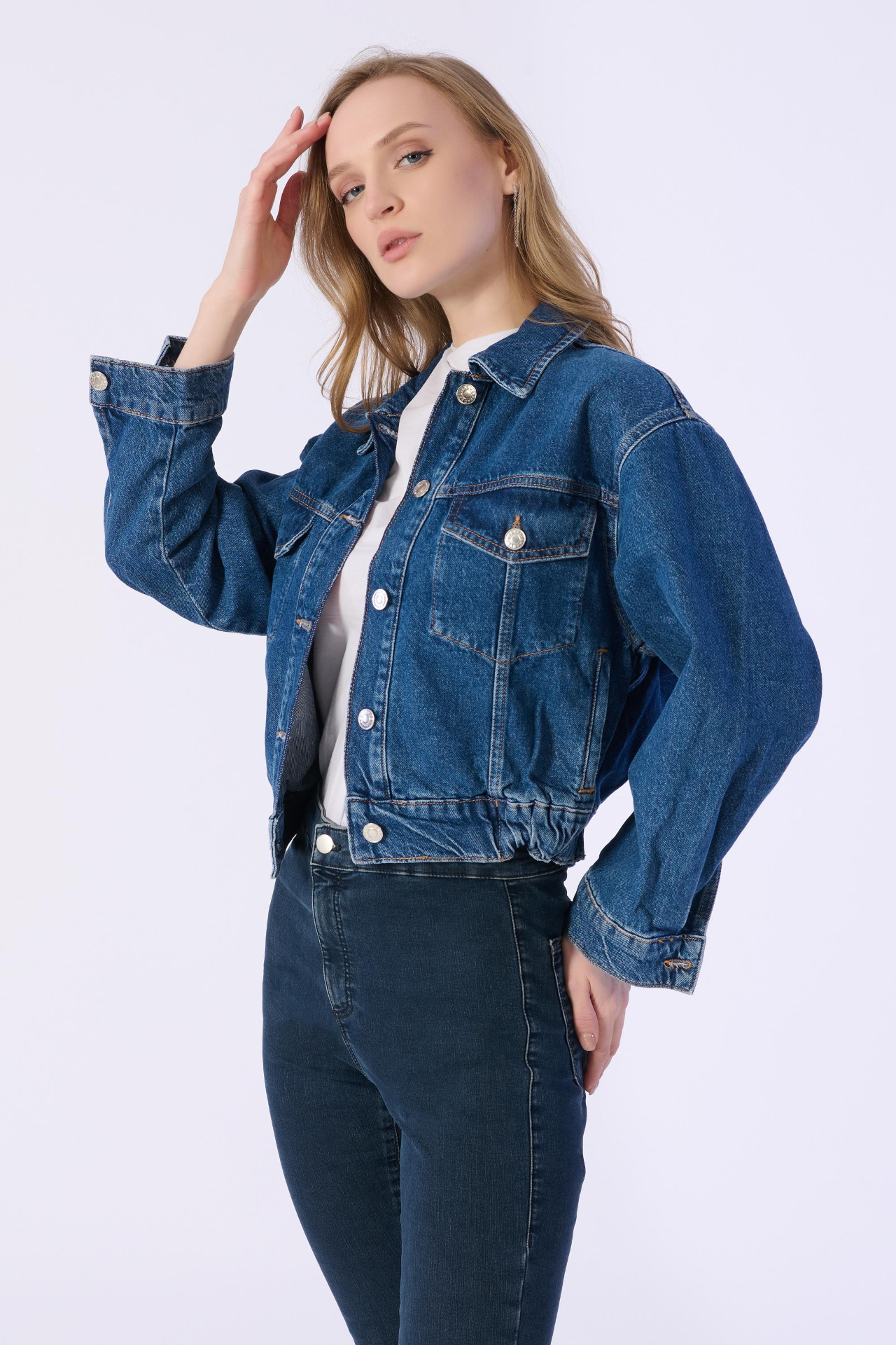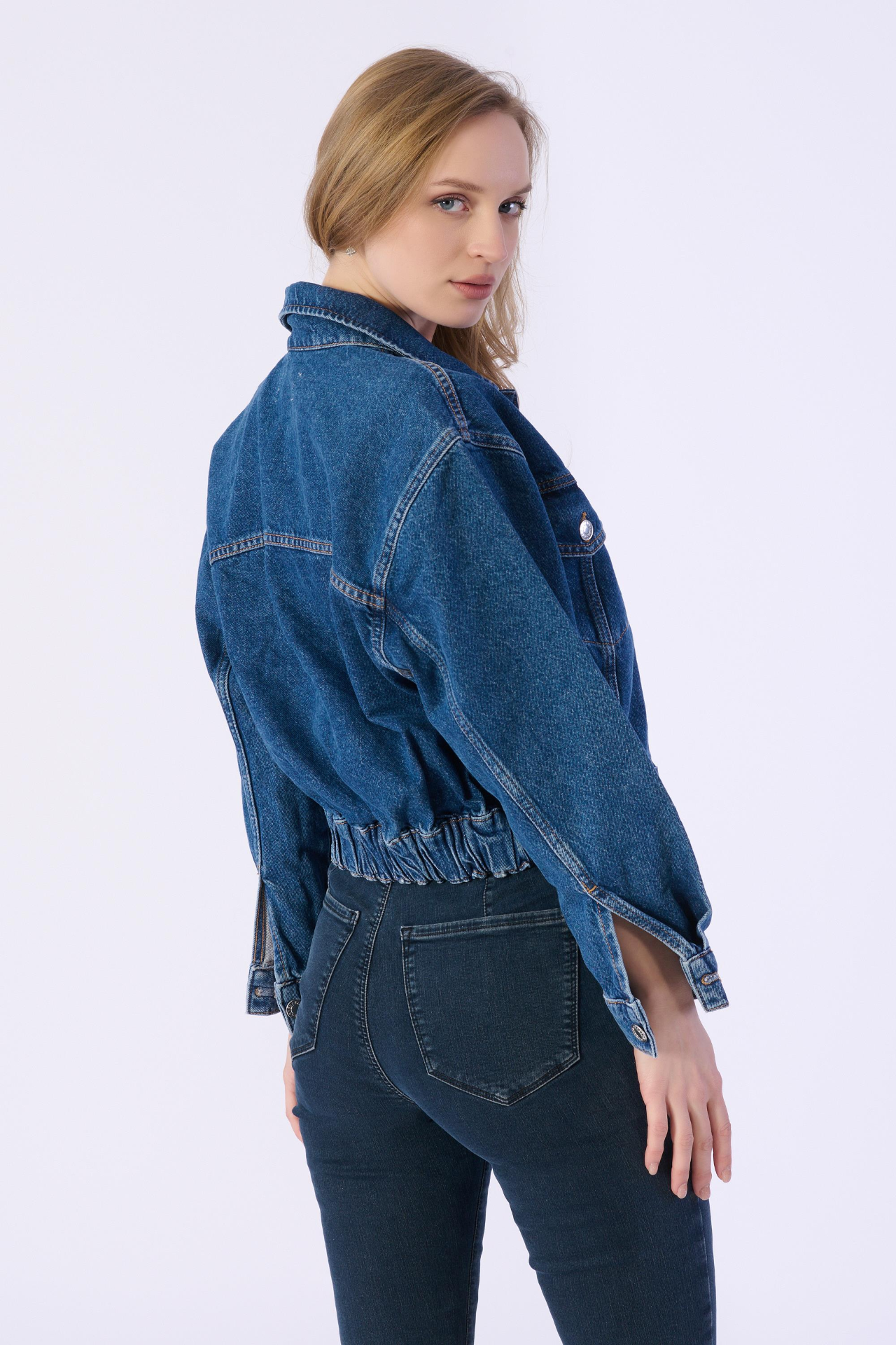 6 Düğmeli Bel Lastikli Denim Ceket
