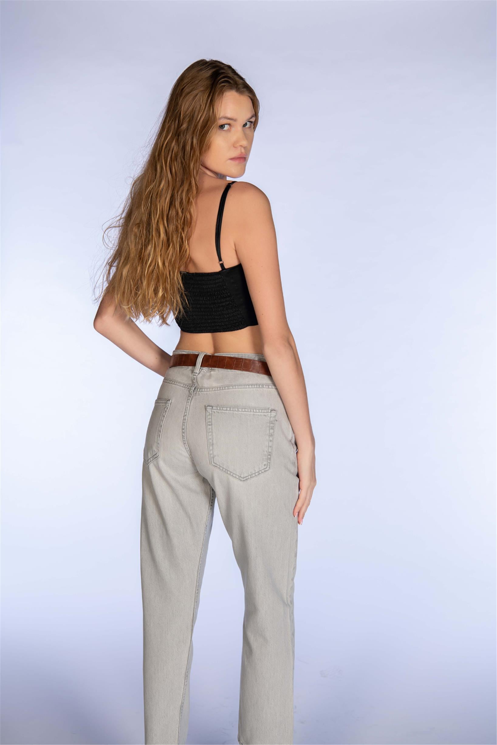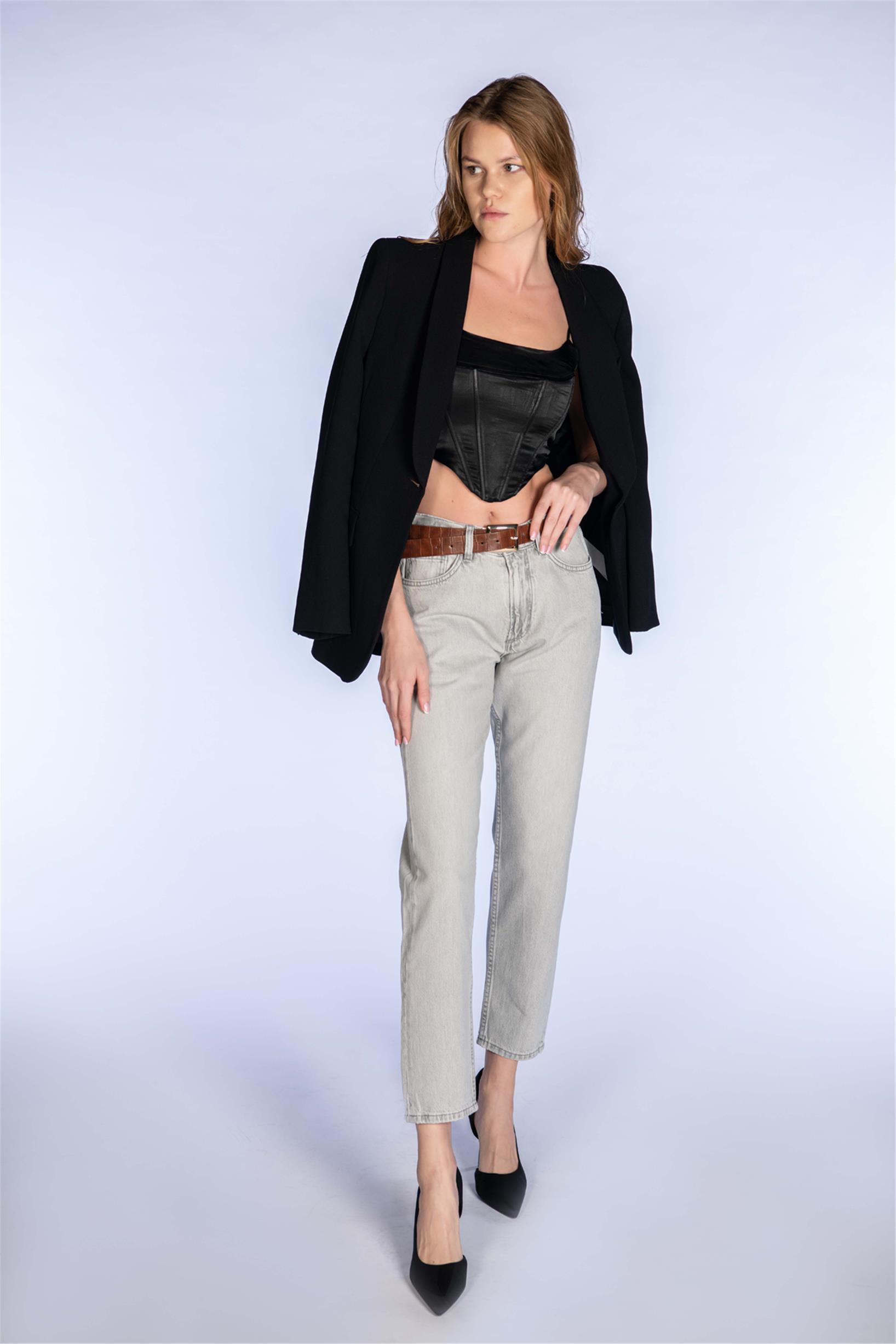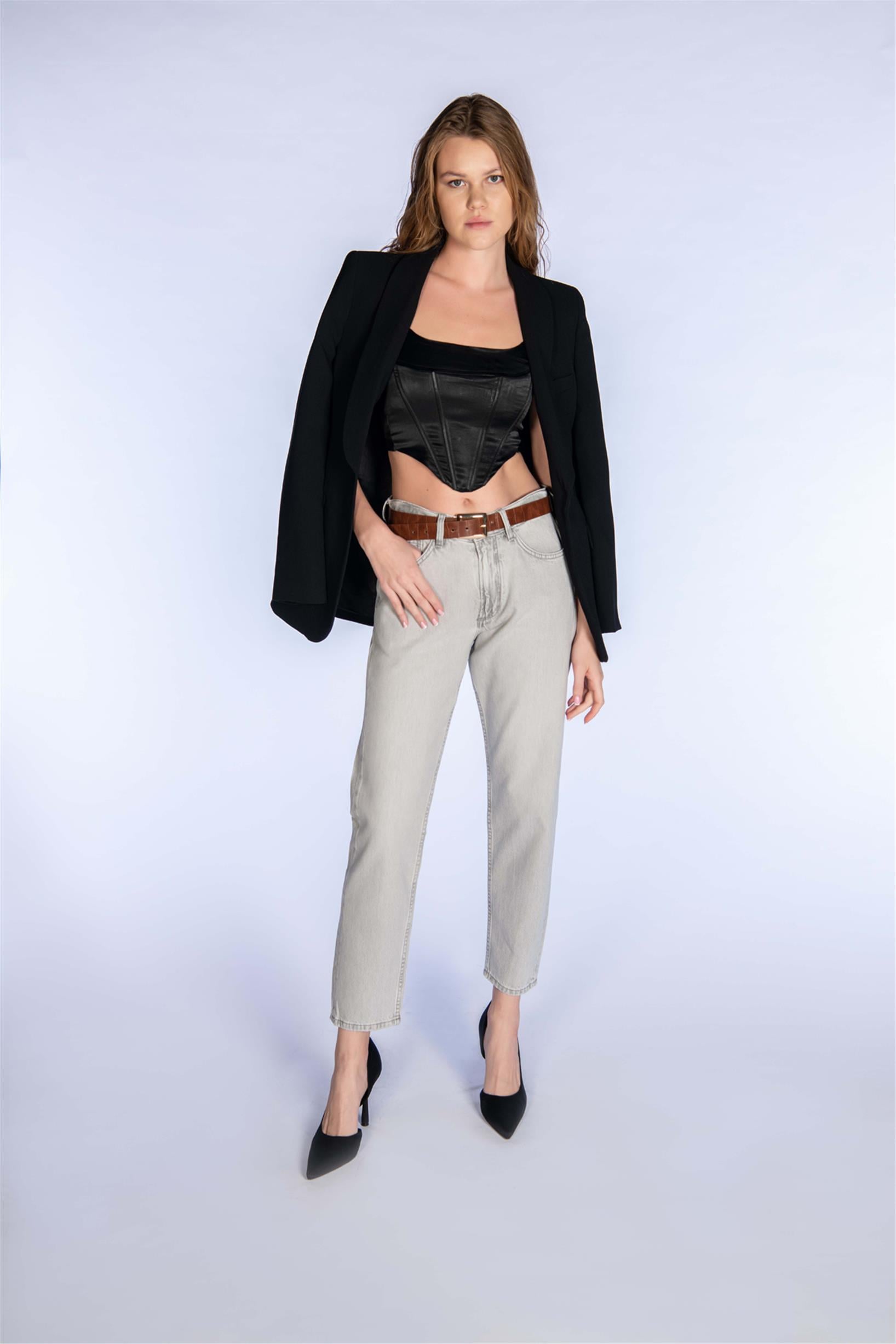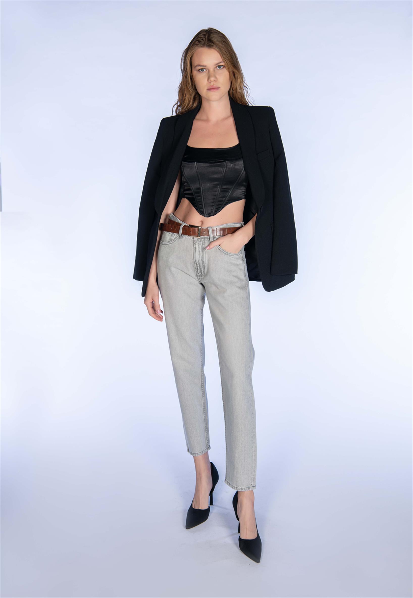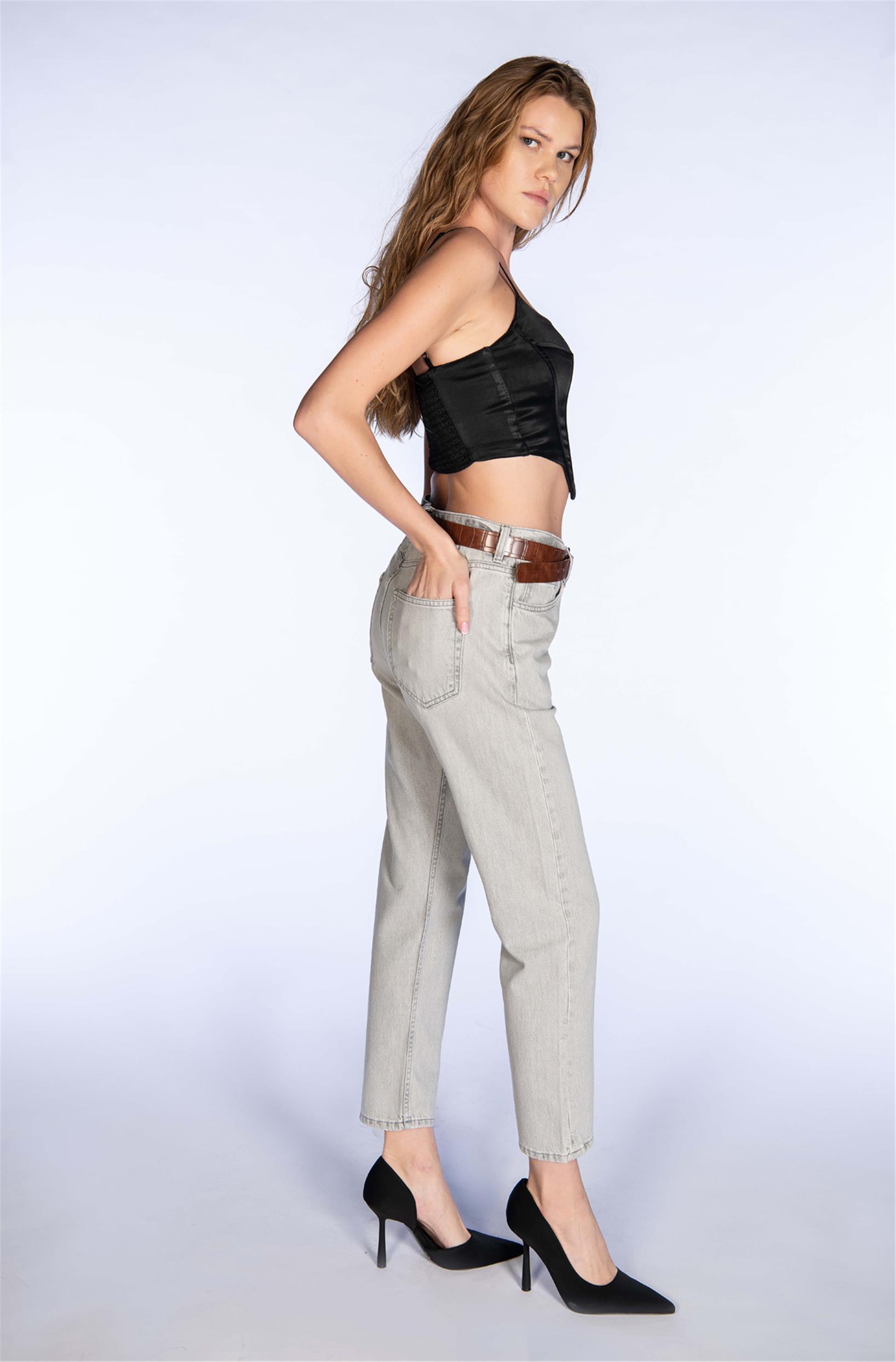 Açık Gri Yüksel Bel Mom Jeans