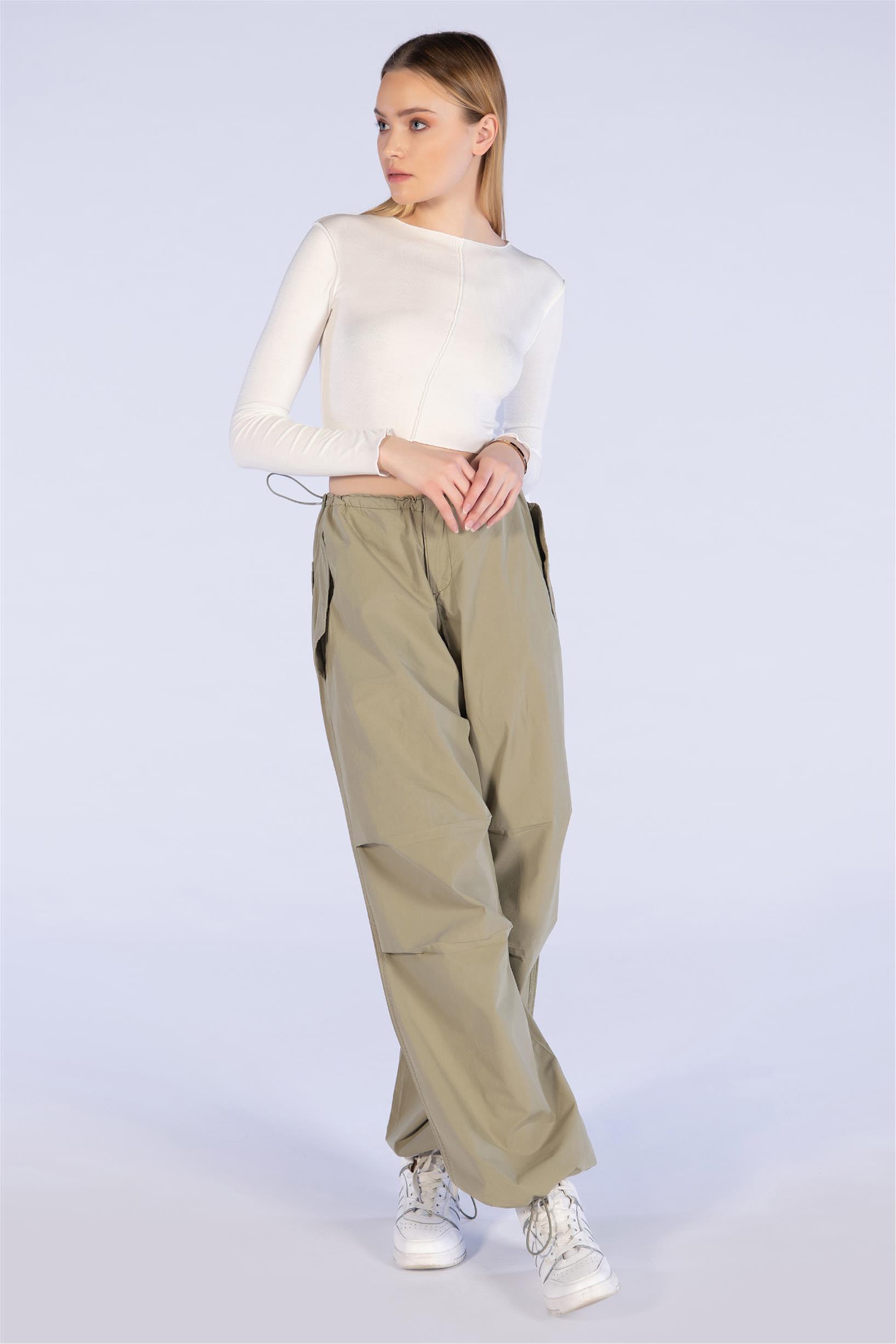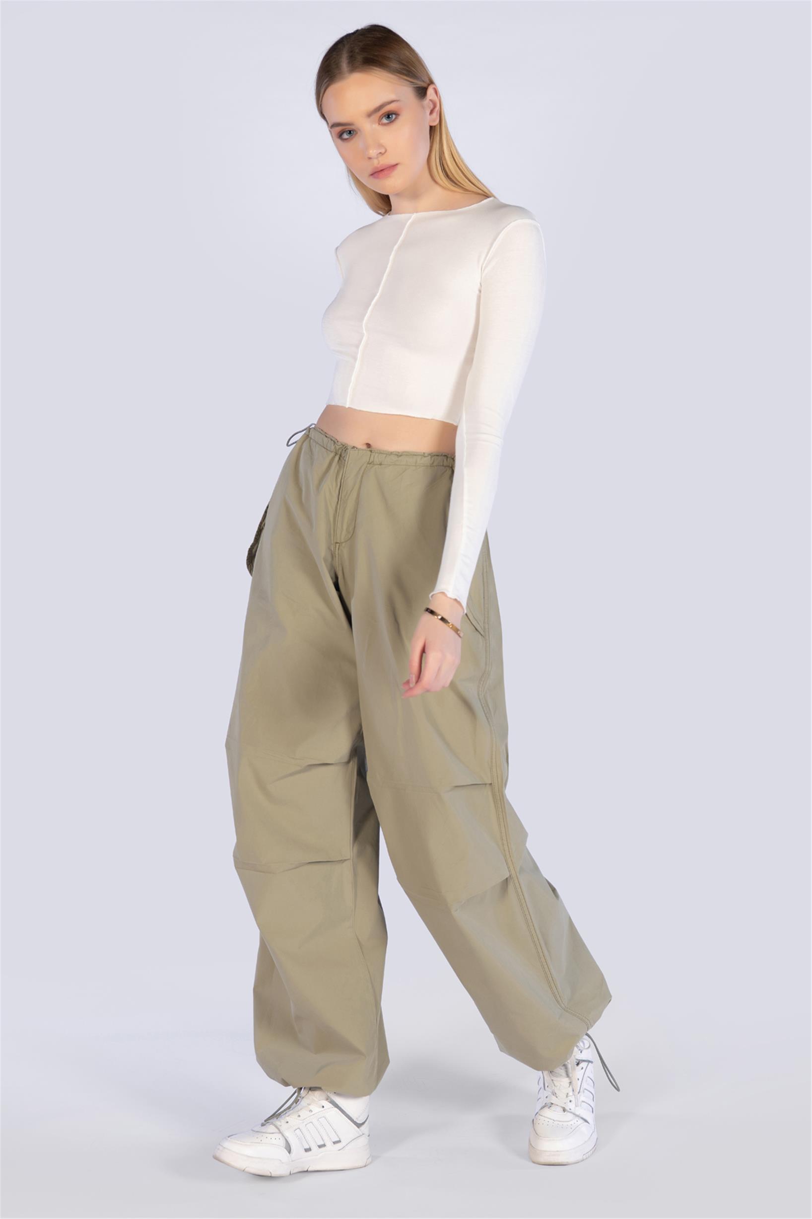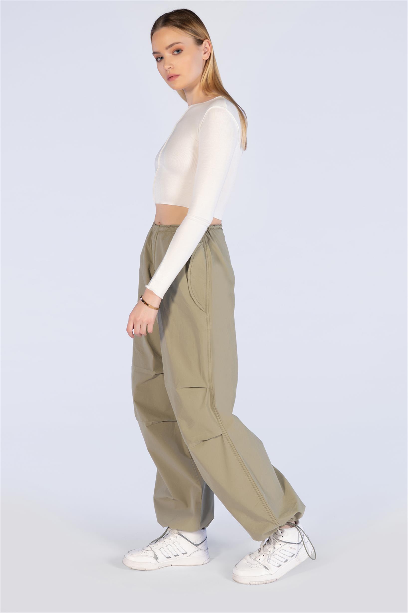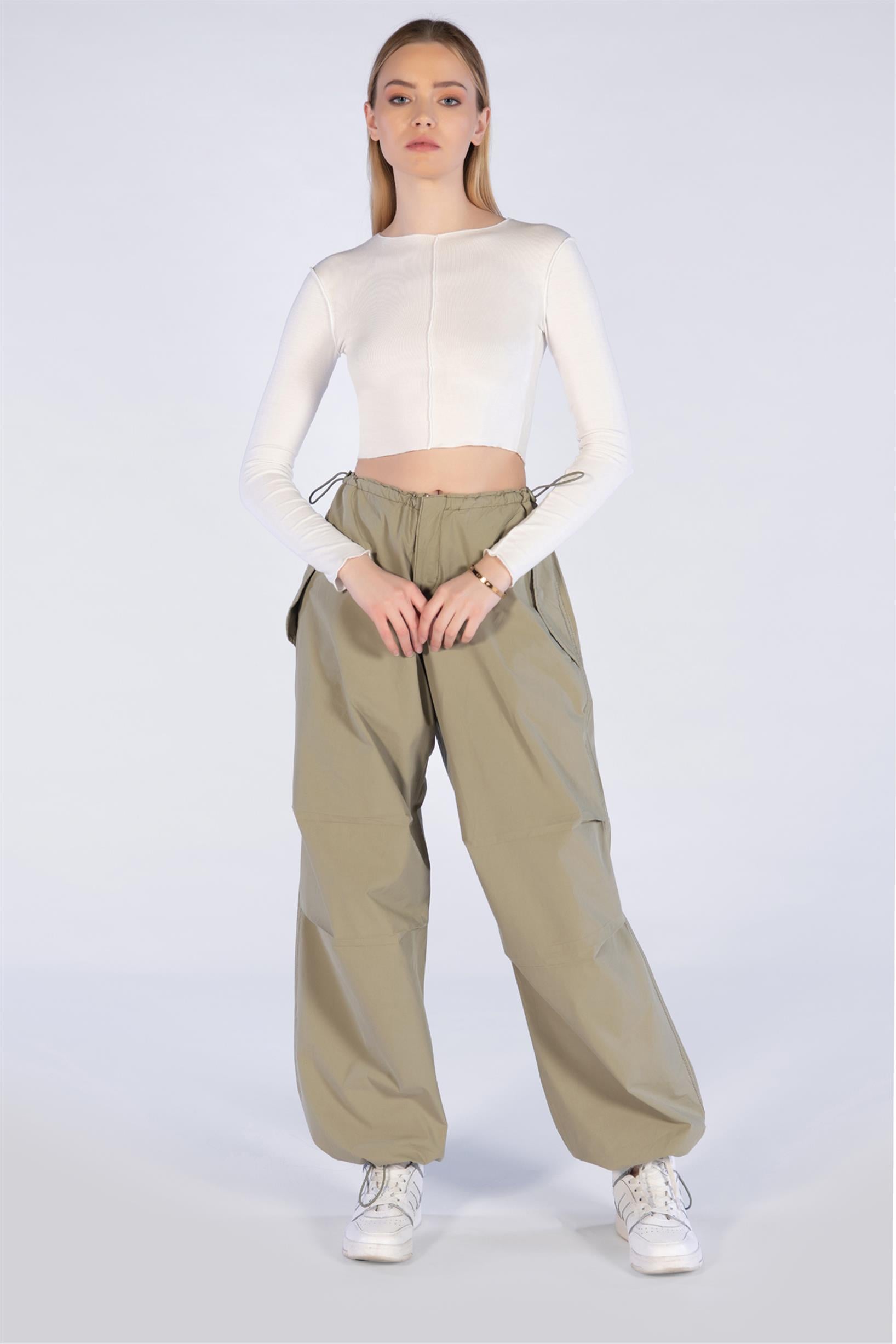 Açık Haki Yeşil Stoperli Paraşüt Kargo Pantolon