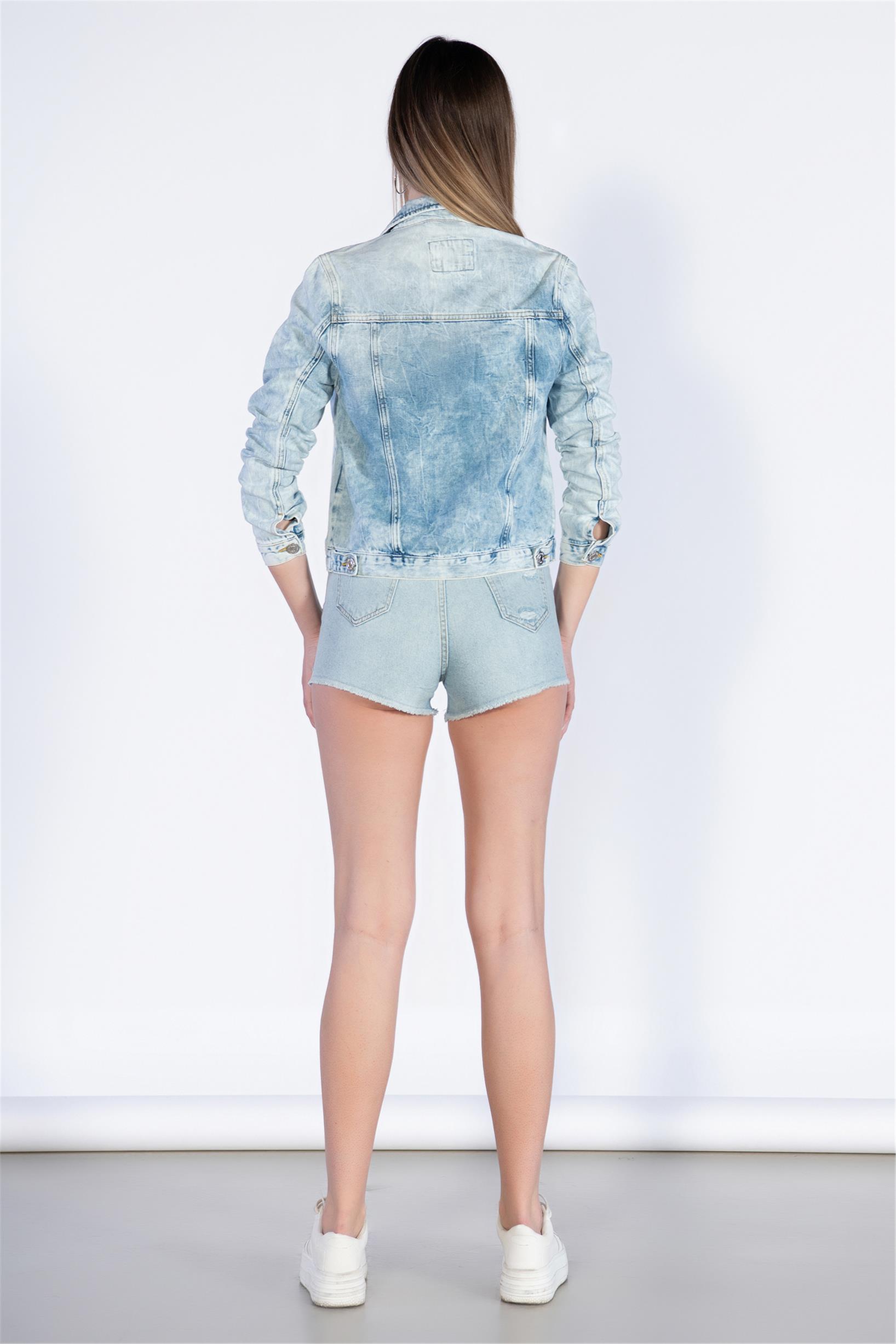 Açık Mavi Crop Kot Ceket