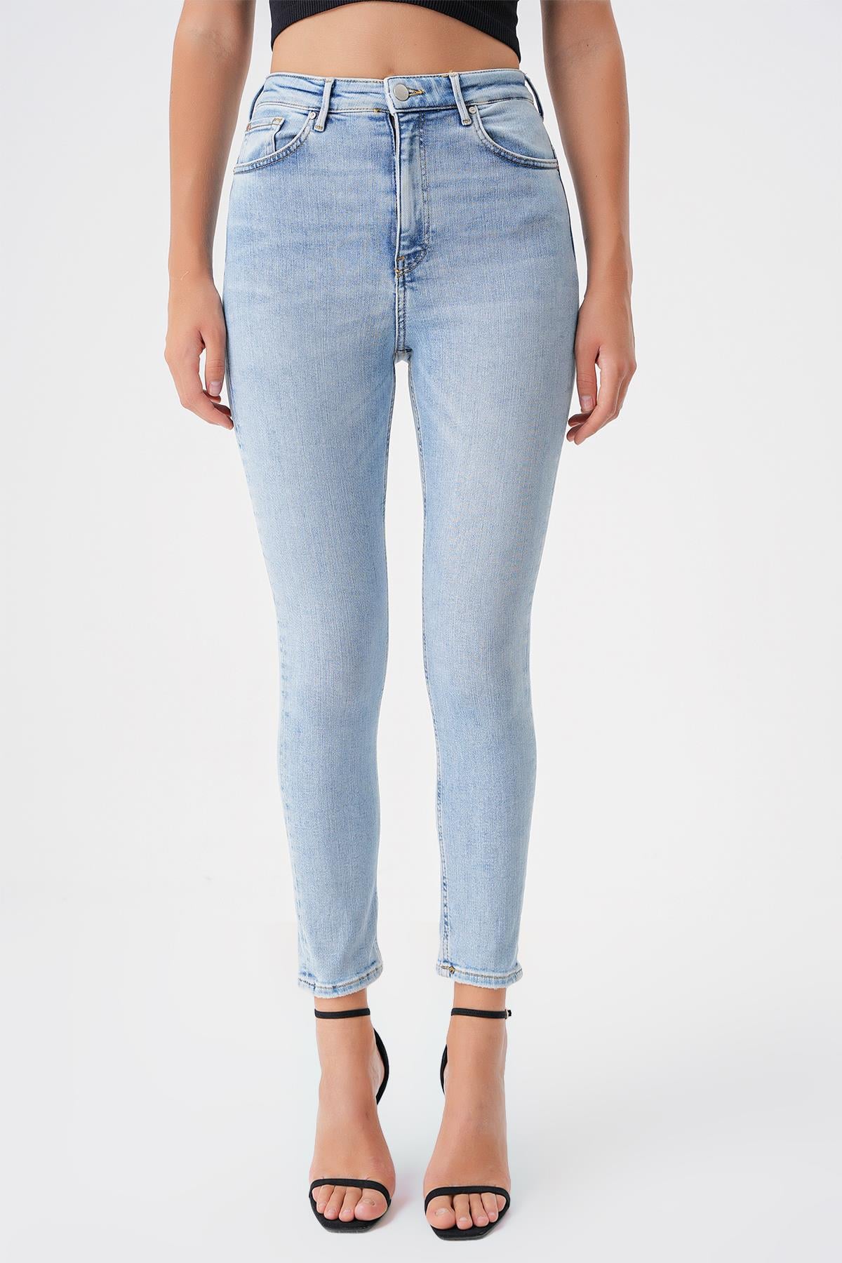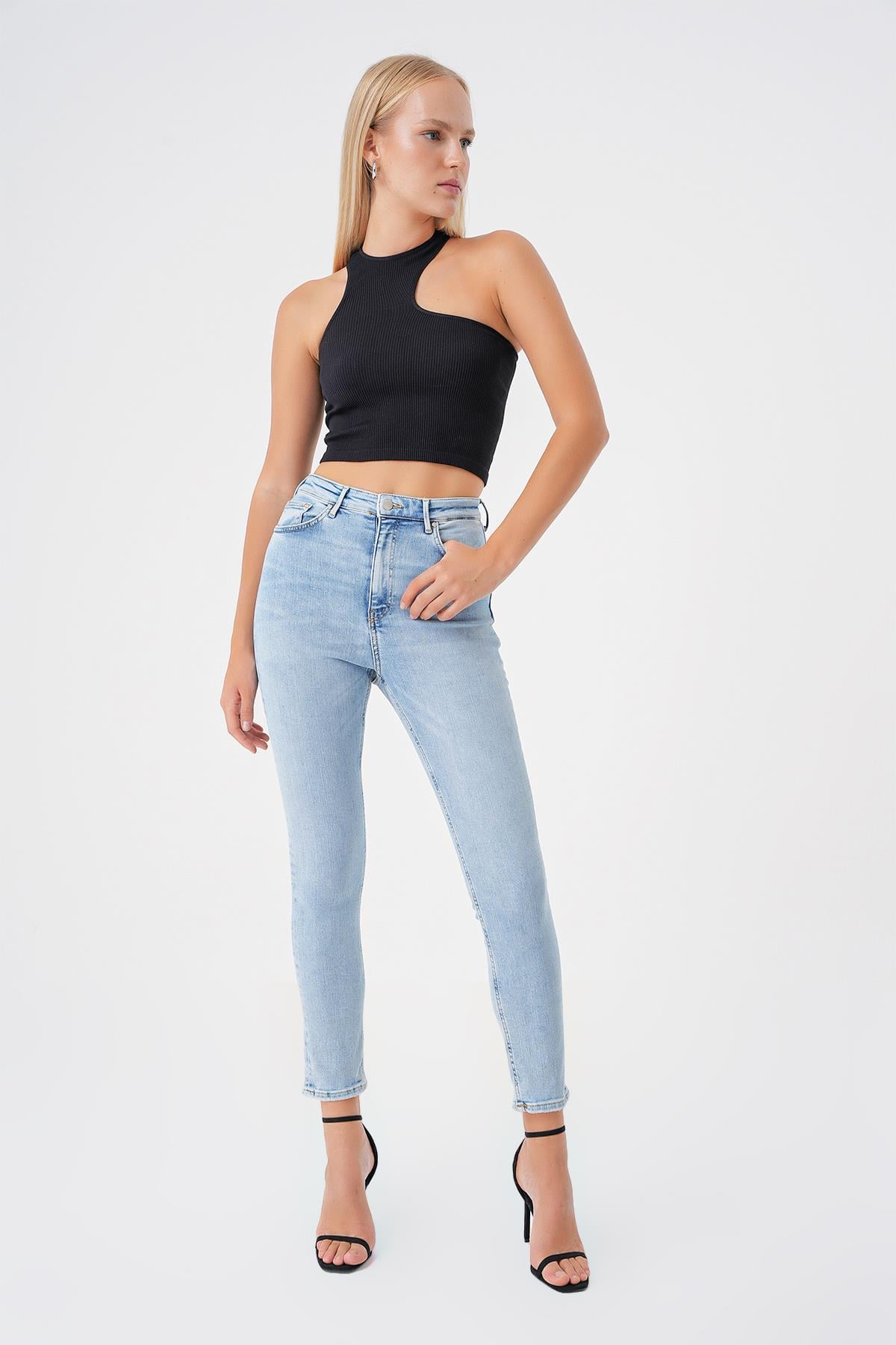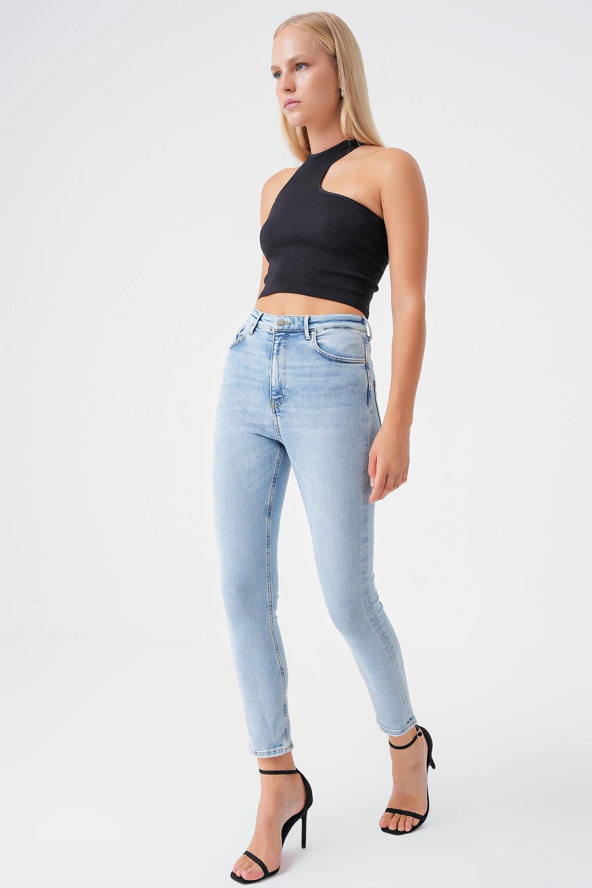 Açık Mavi Şekillendiren Etki Push Up Yuksek Bel Skinny Jean