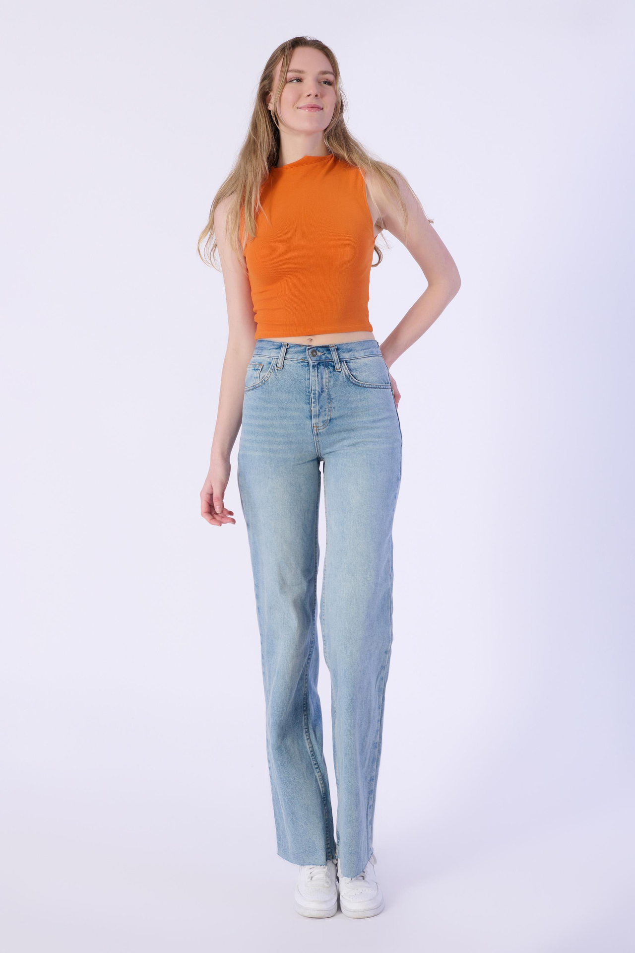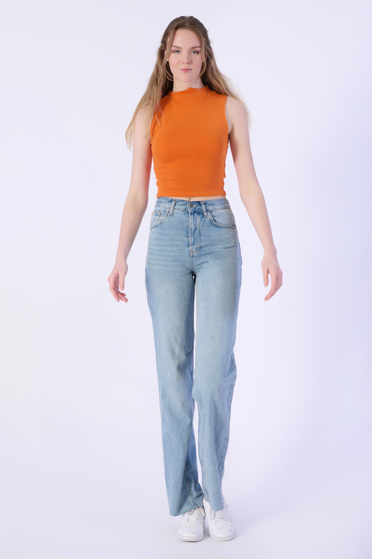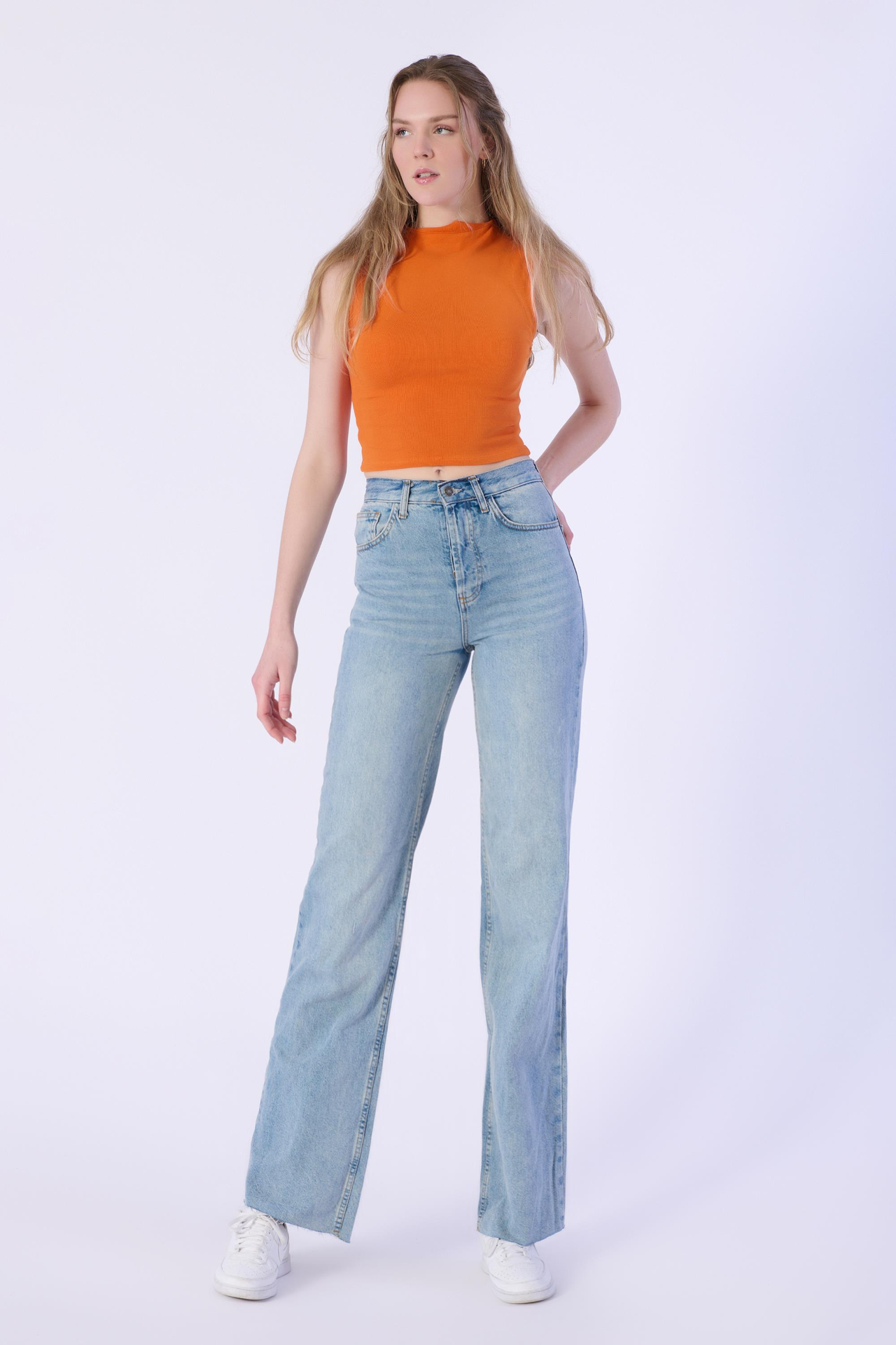 Açik Mavi Wide Leg Yüksek Bel Denim Pantolon