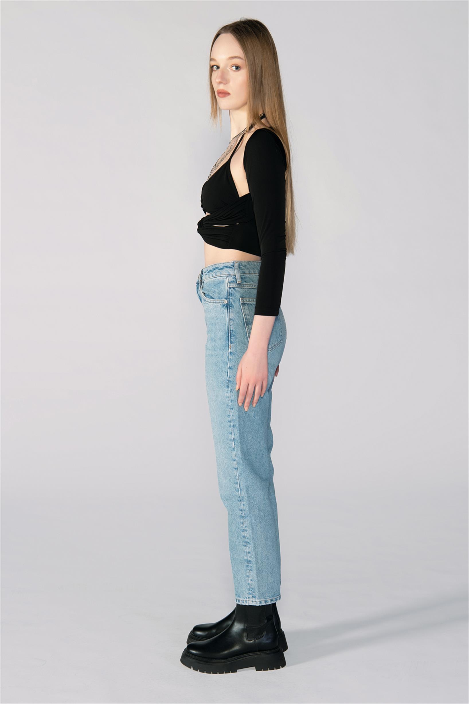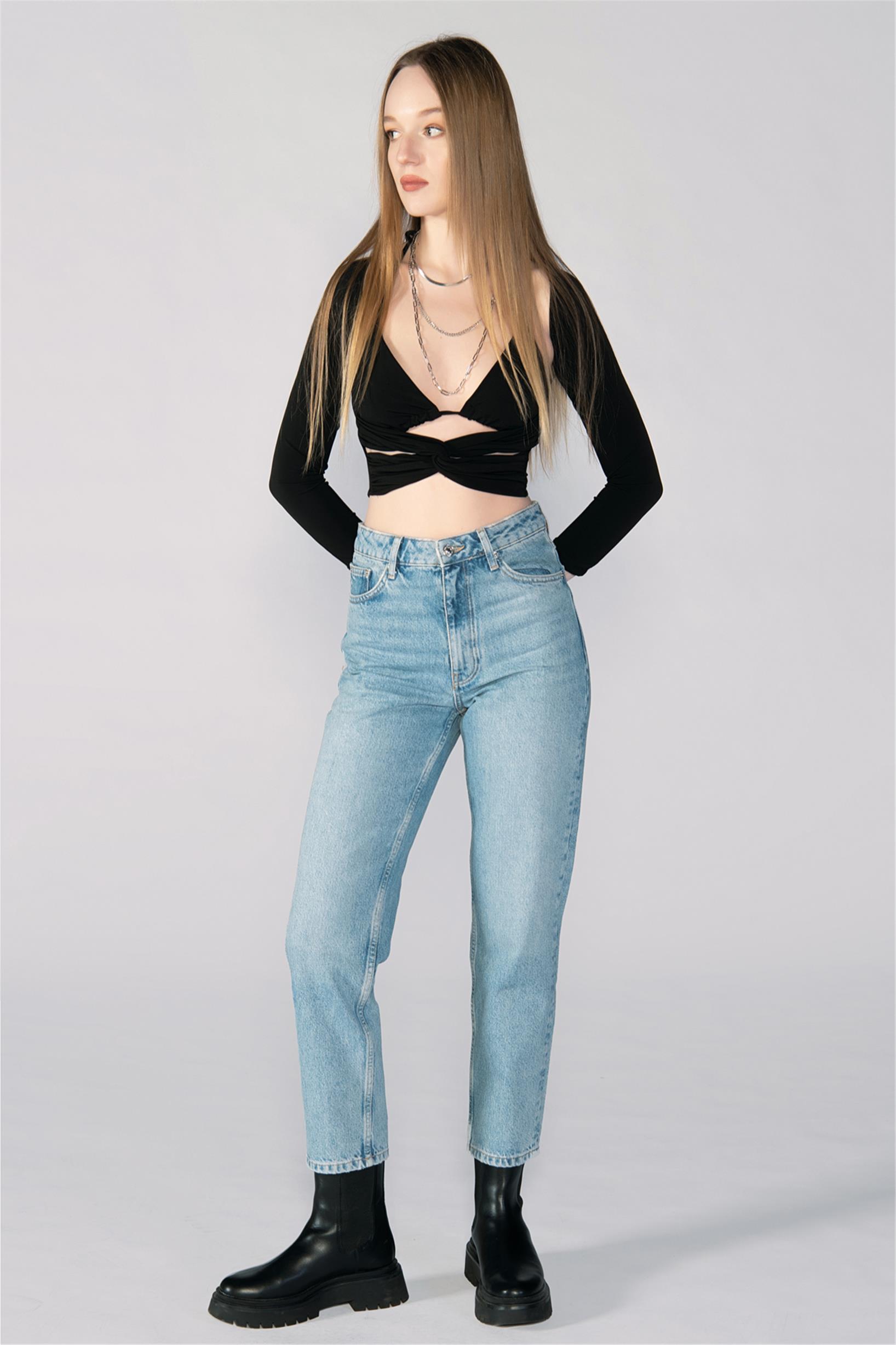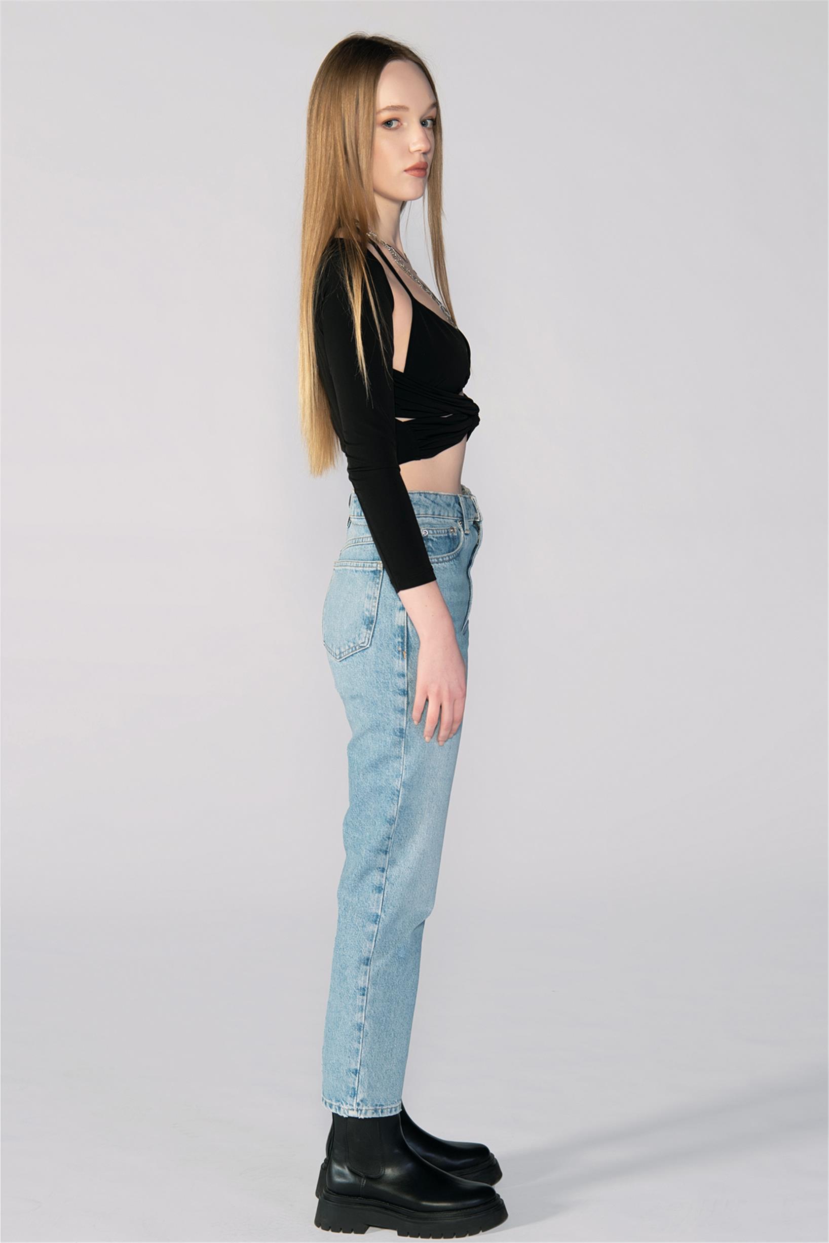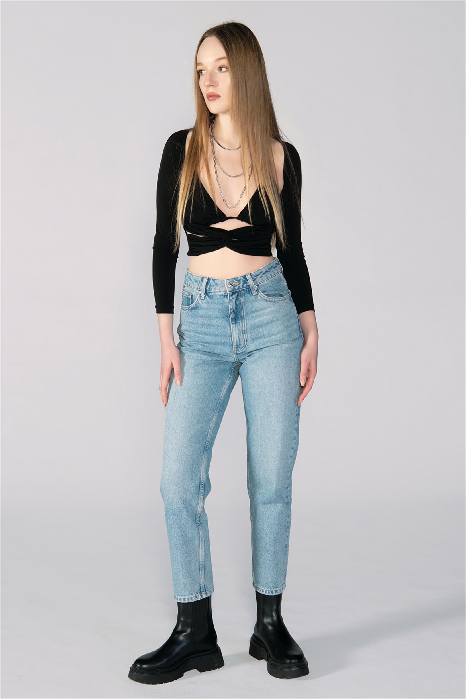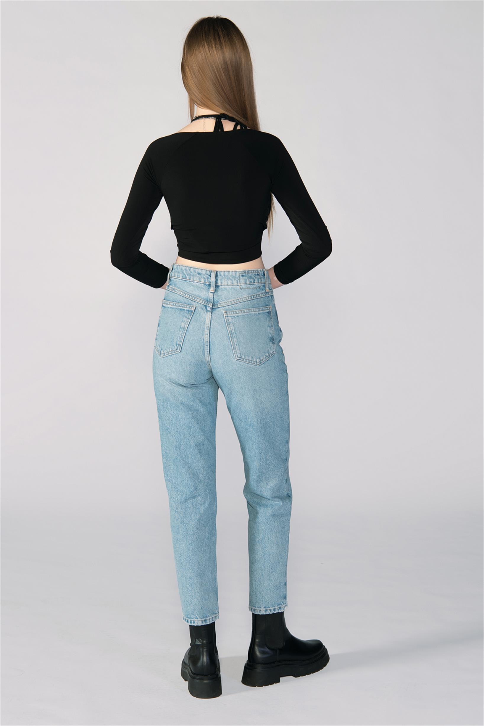 Açık Mavi Yüksek Bel Mom Fit Jeans