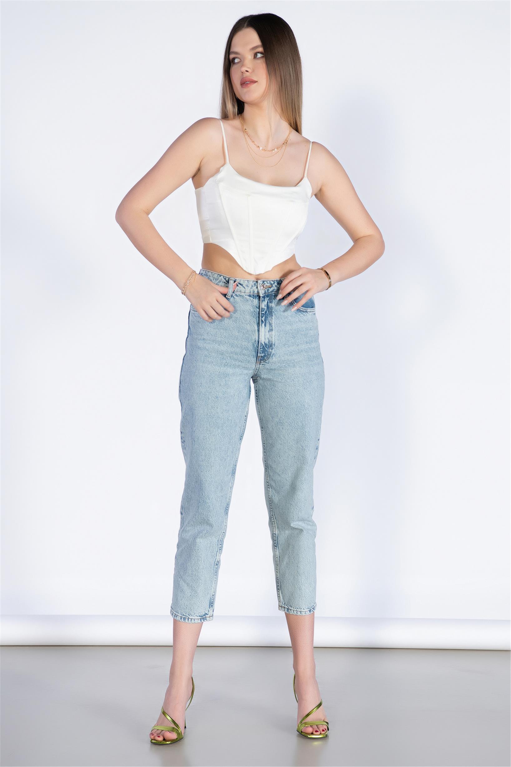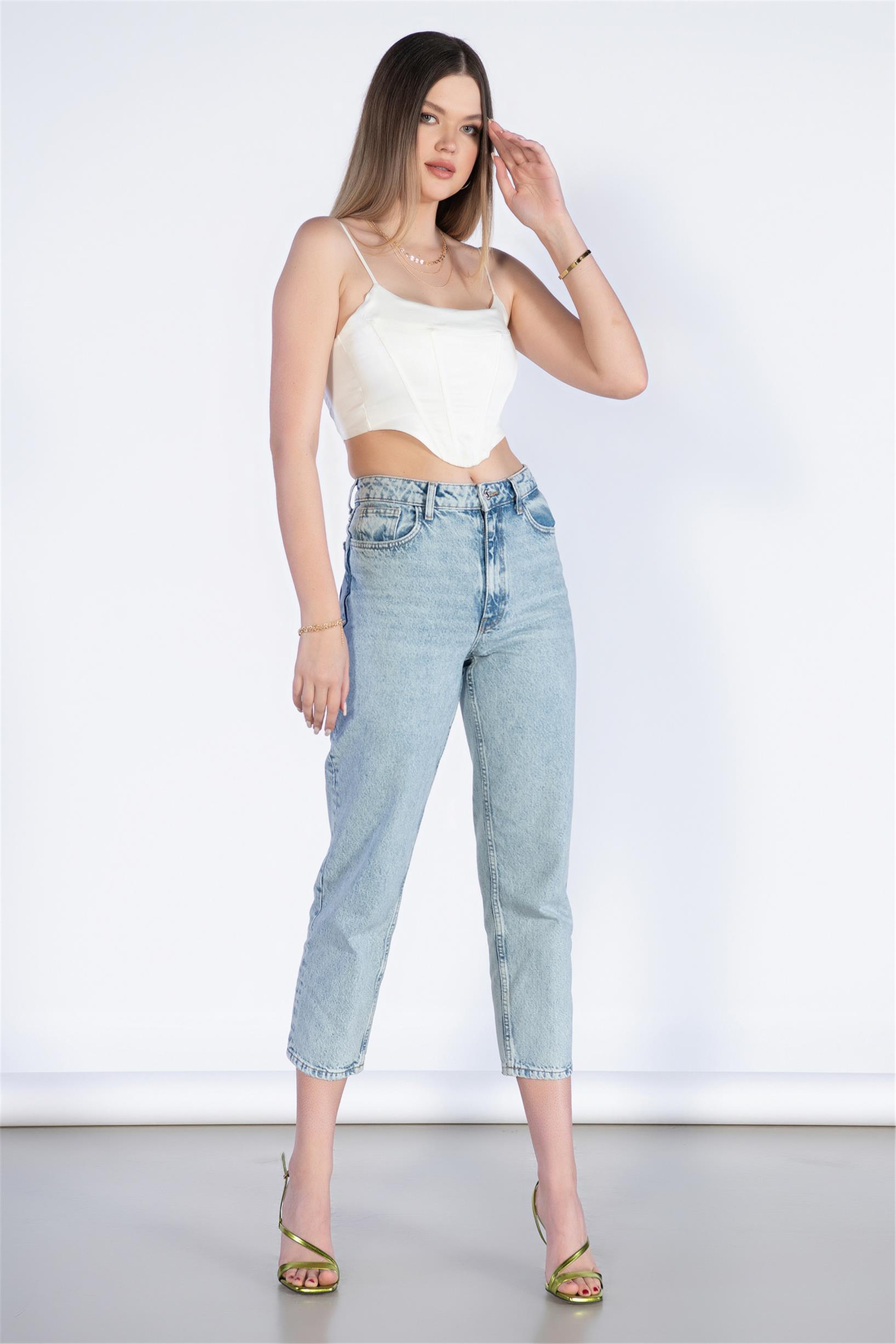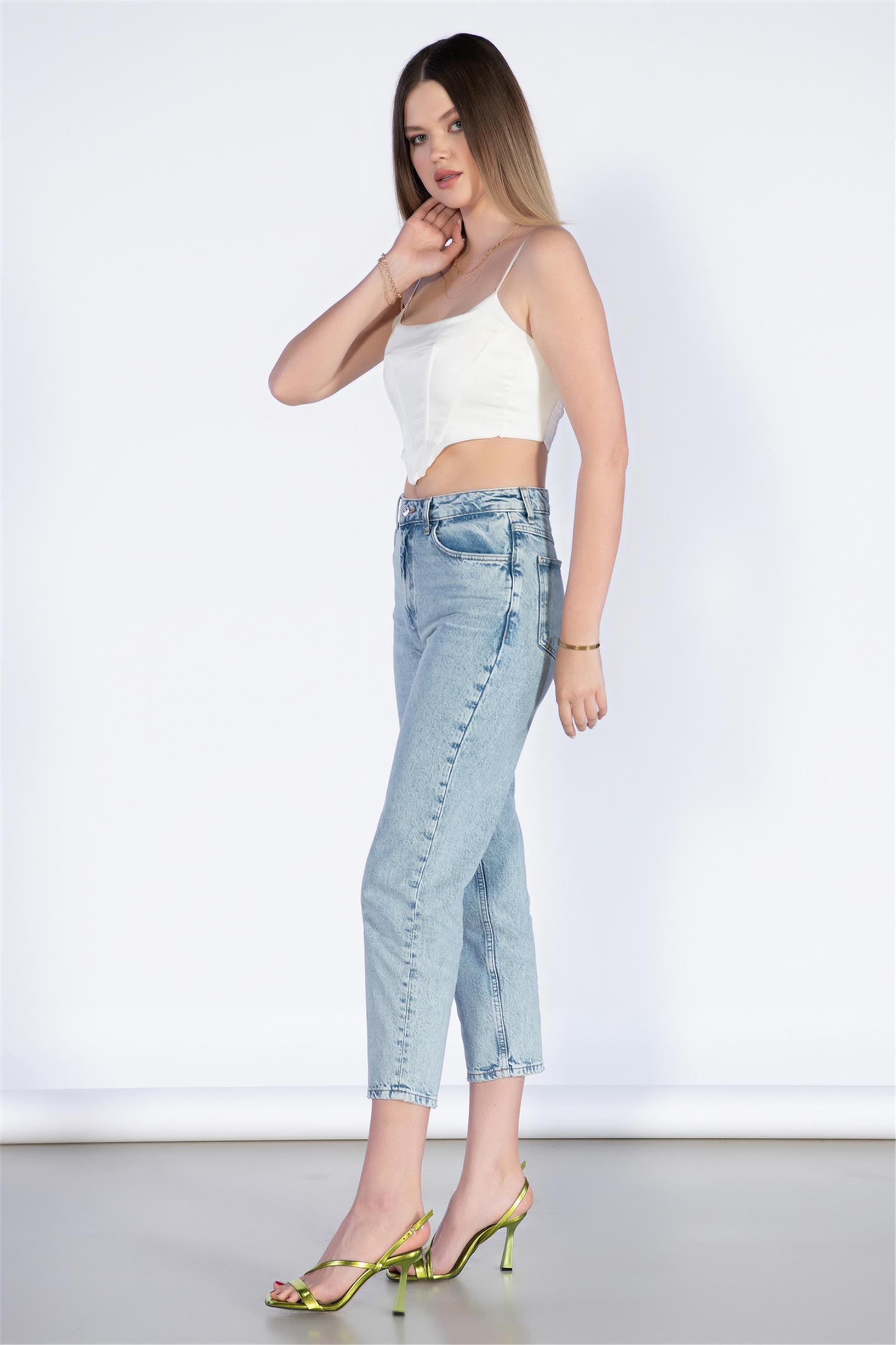Açık Mavi Yüksek Bel Mom Jeans