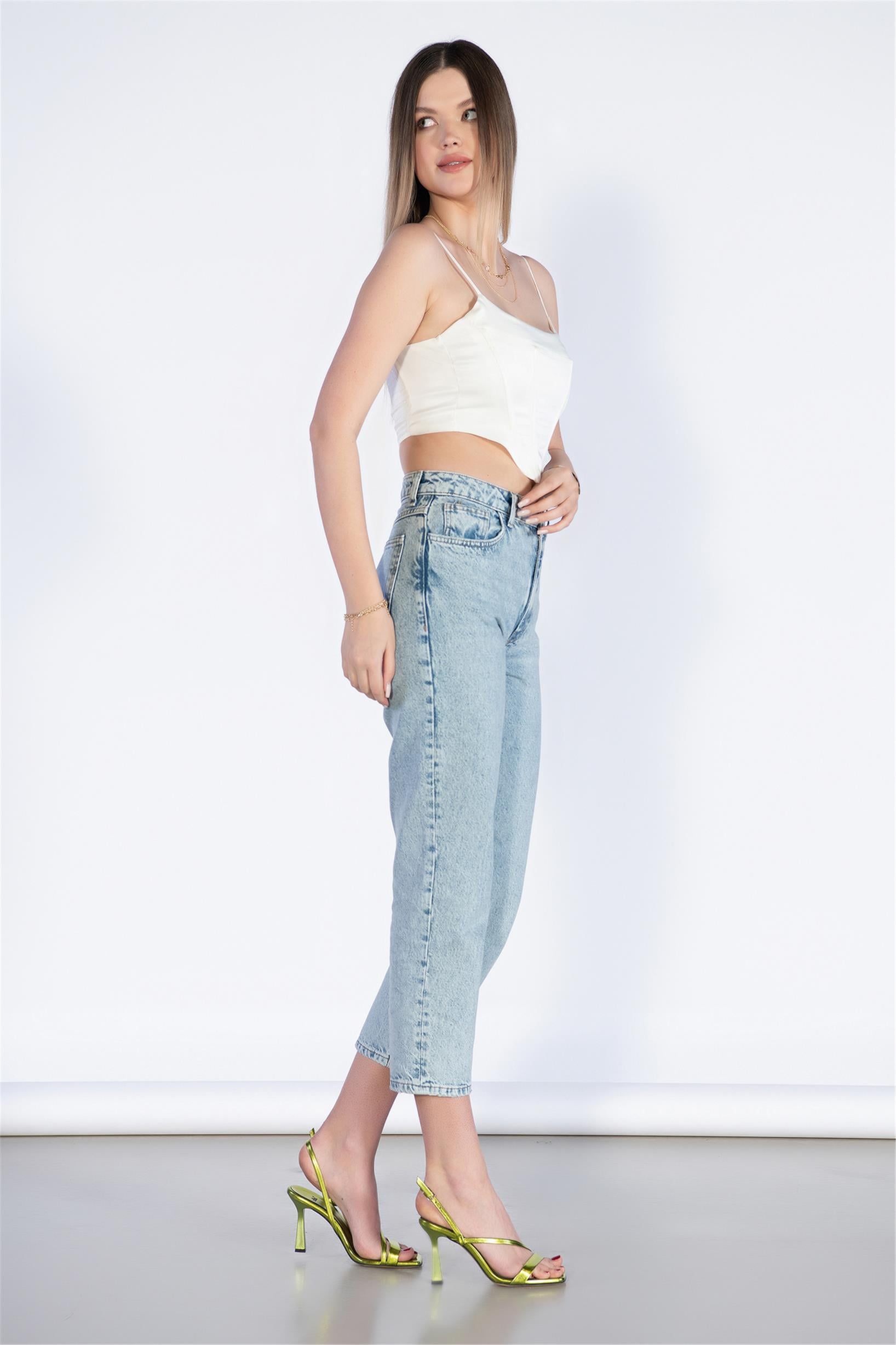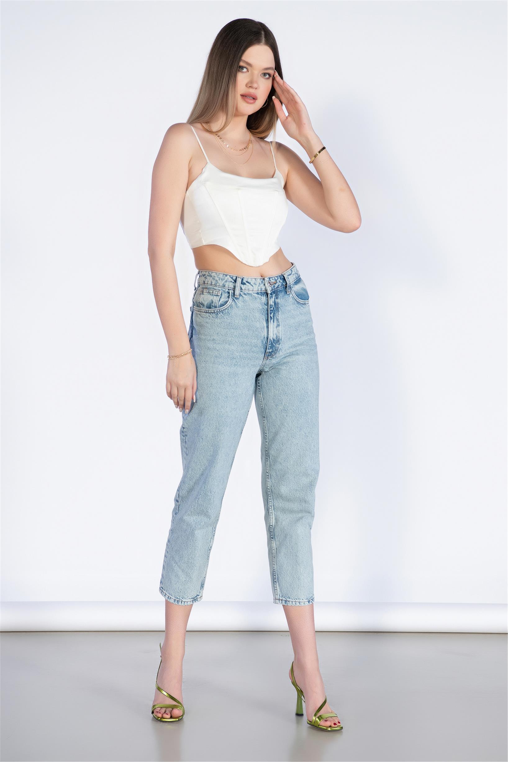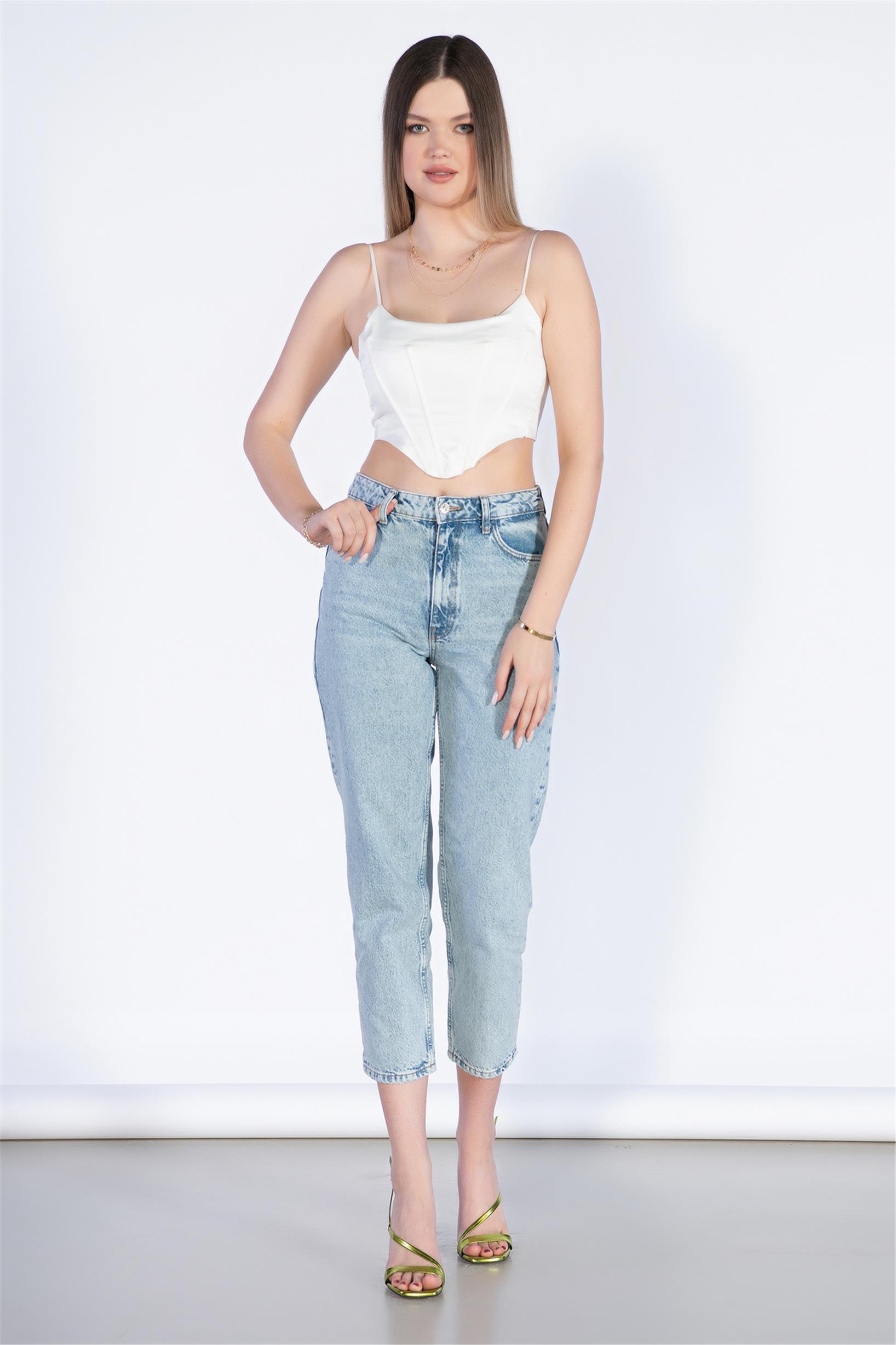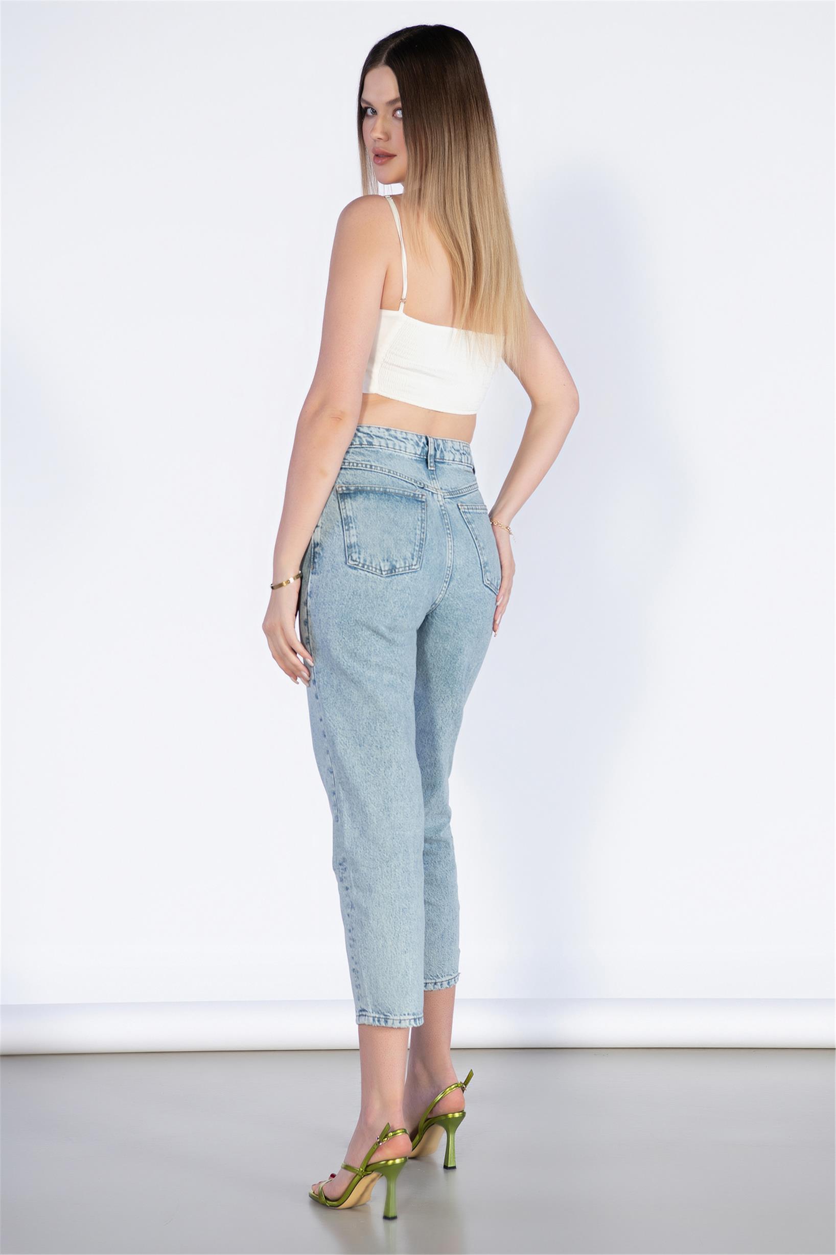 Açık Mavi Yüksek Bel Mom Jeans