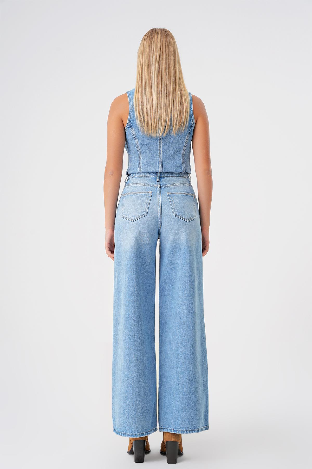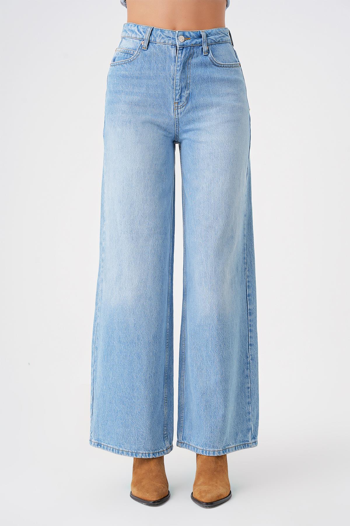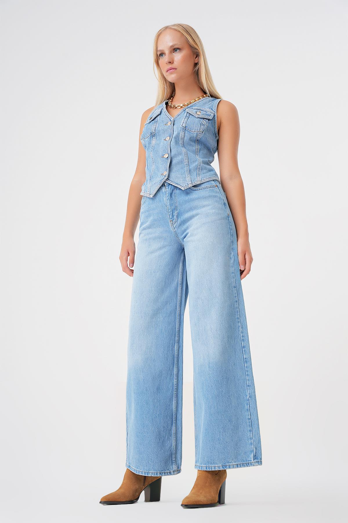 Açık Mavi Yüksek Bel Wide Leg Jean