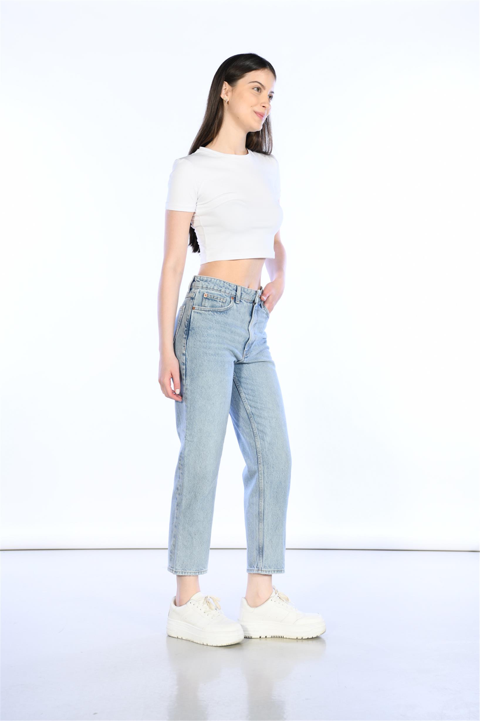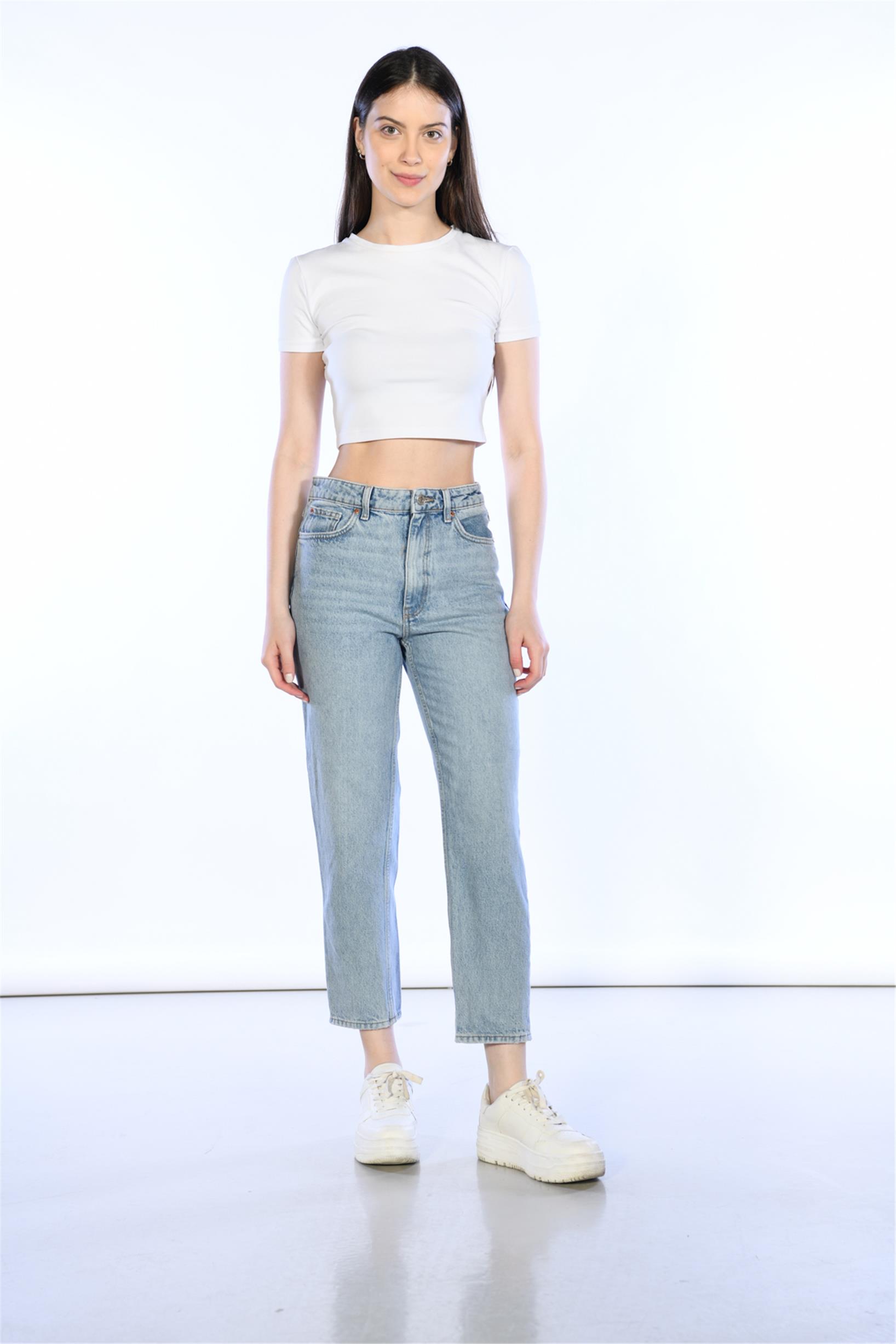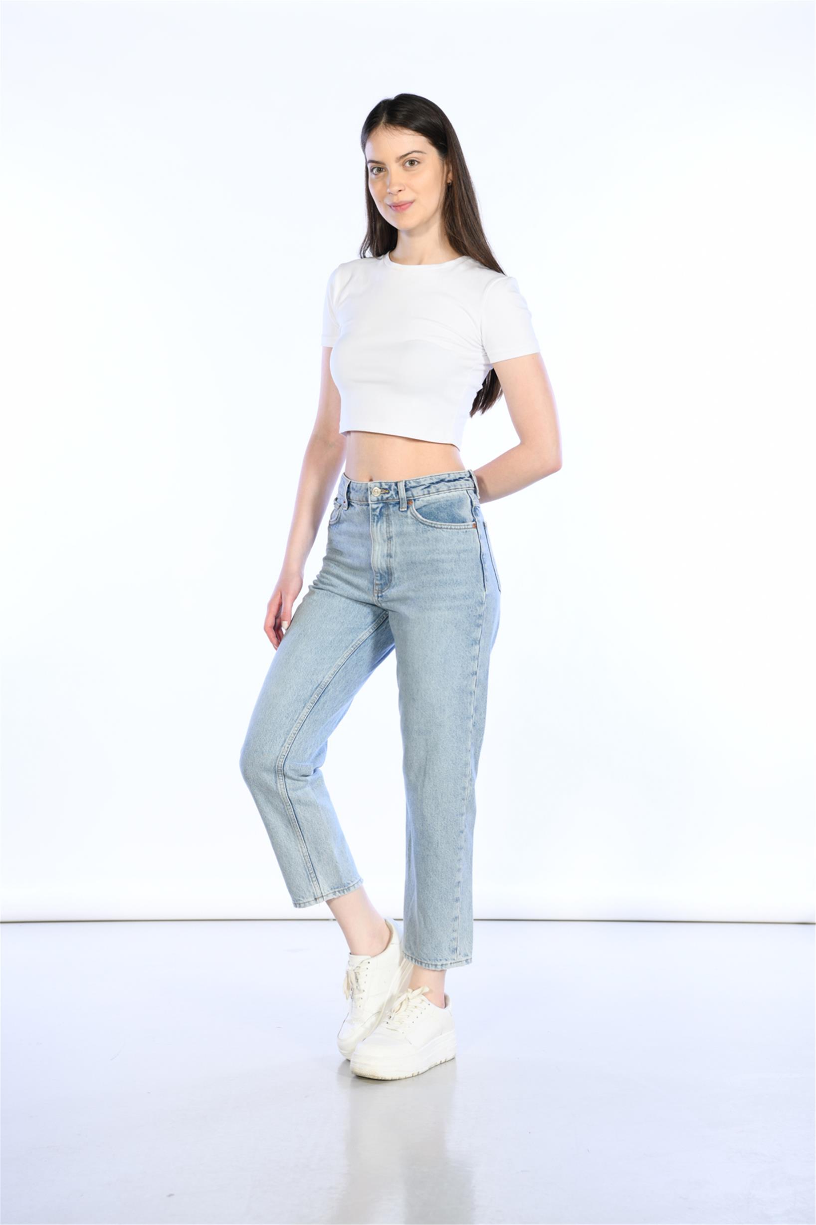 Açık Mavi Yüksek Bel Wideleg Jeans