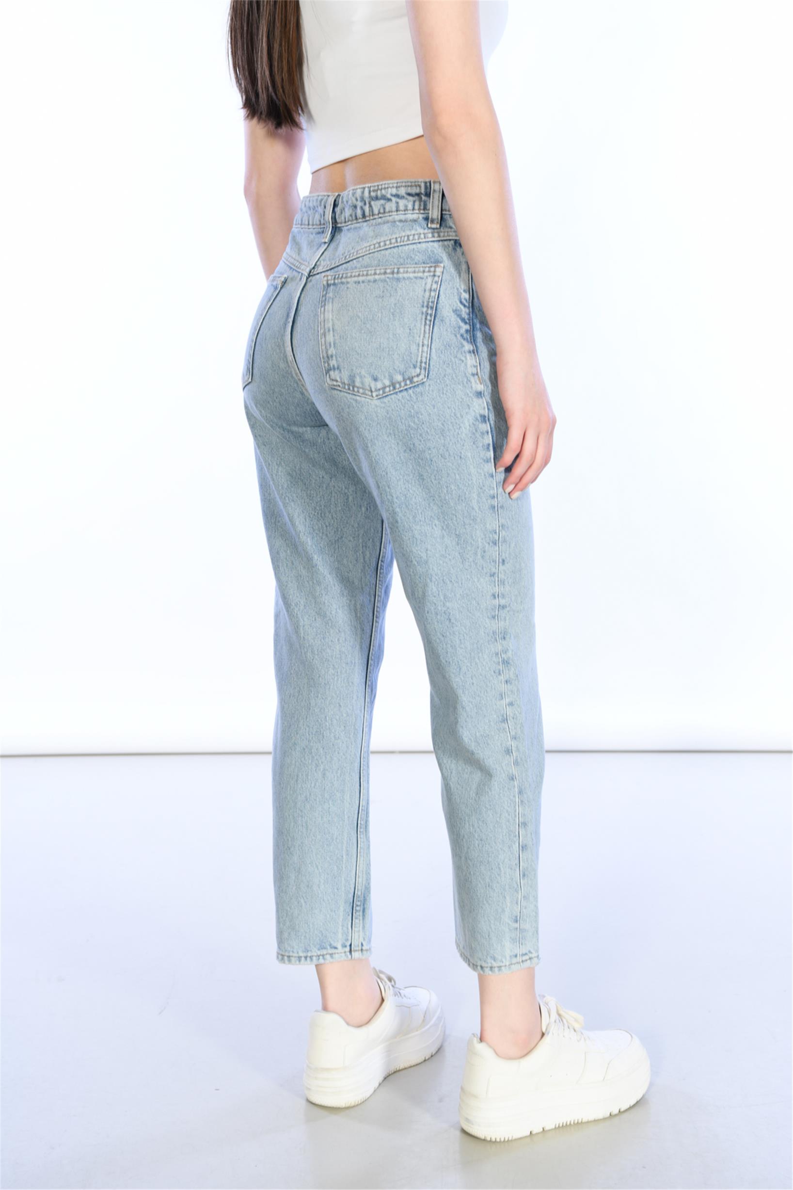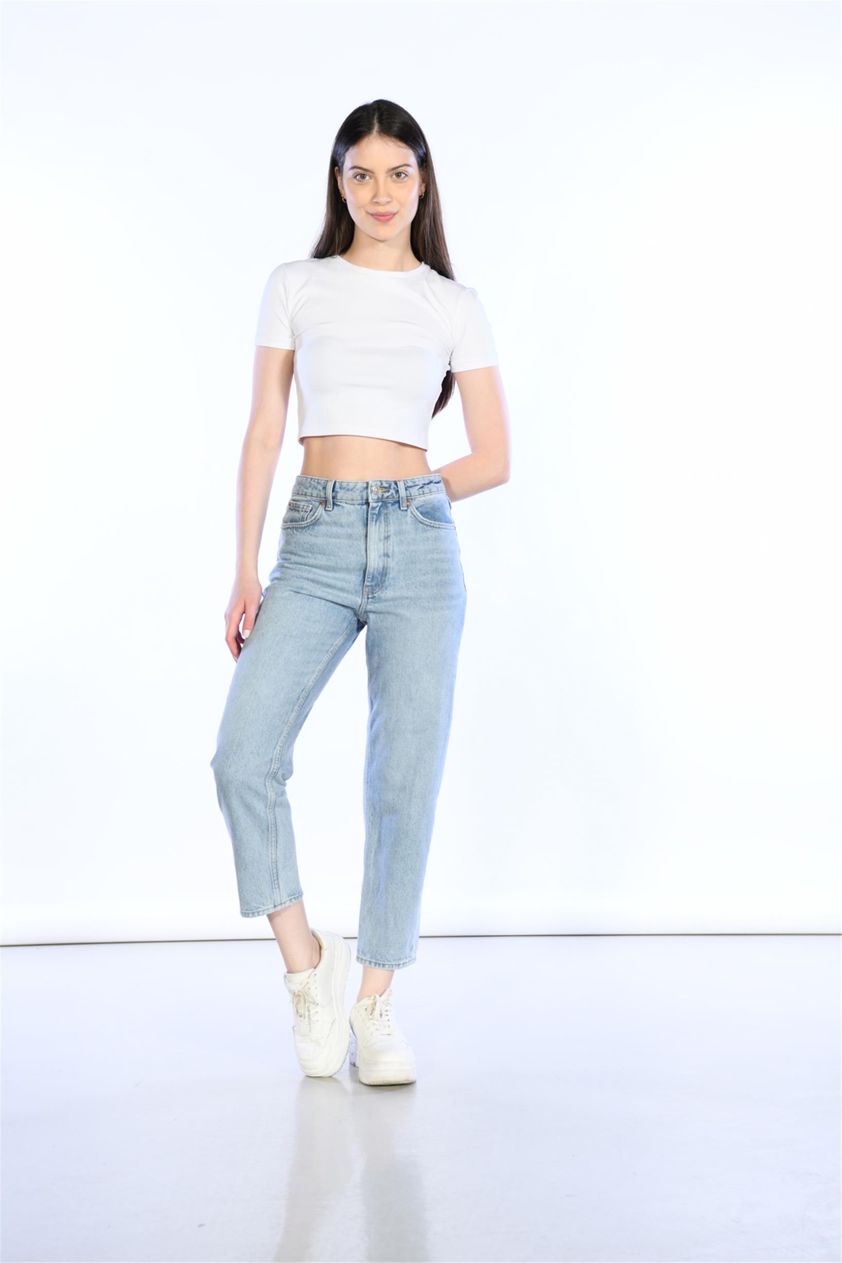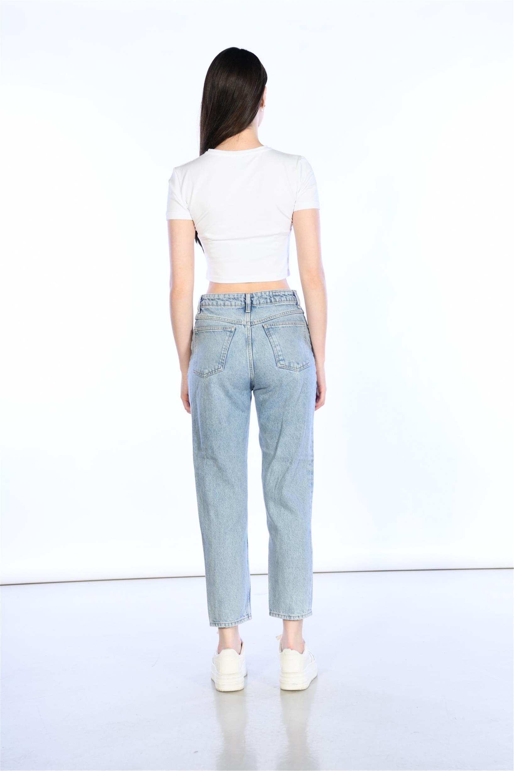 Açık Mavi Yüksek Bel Wideleg Jeans