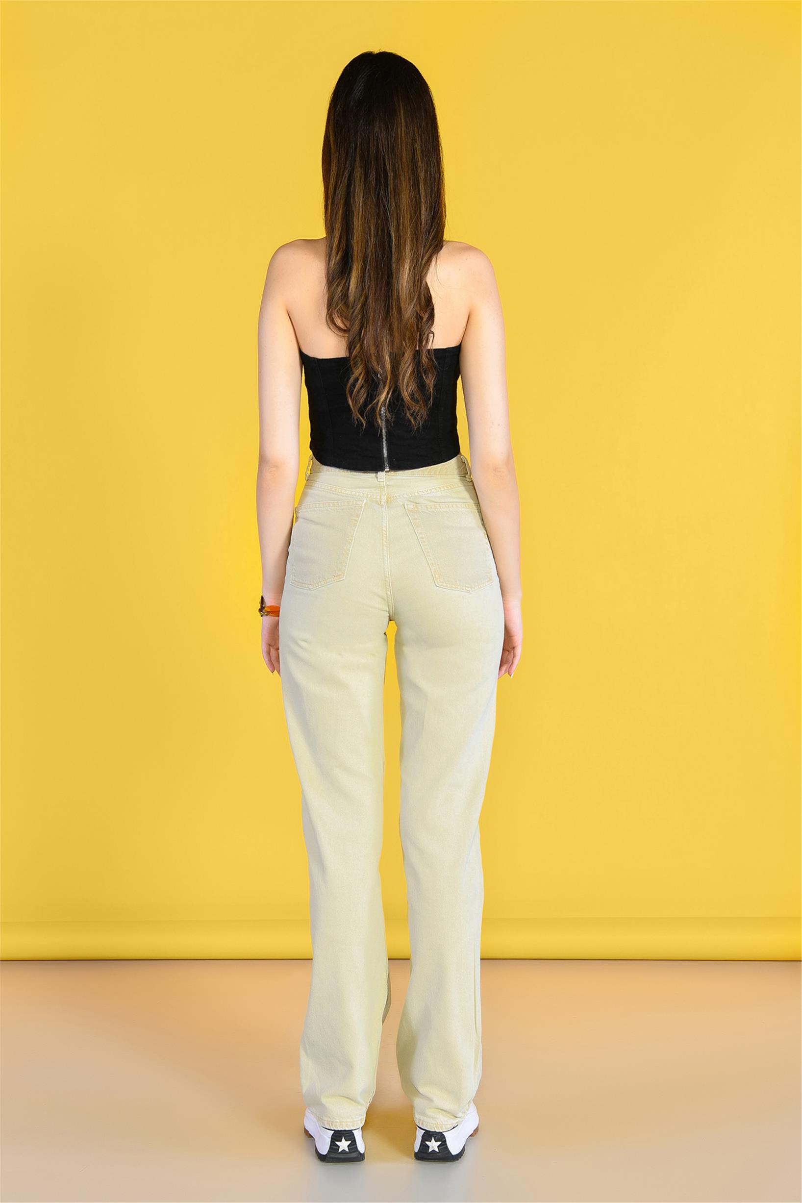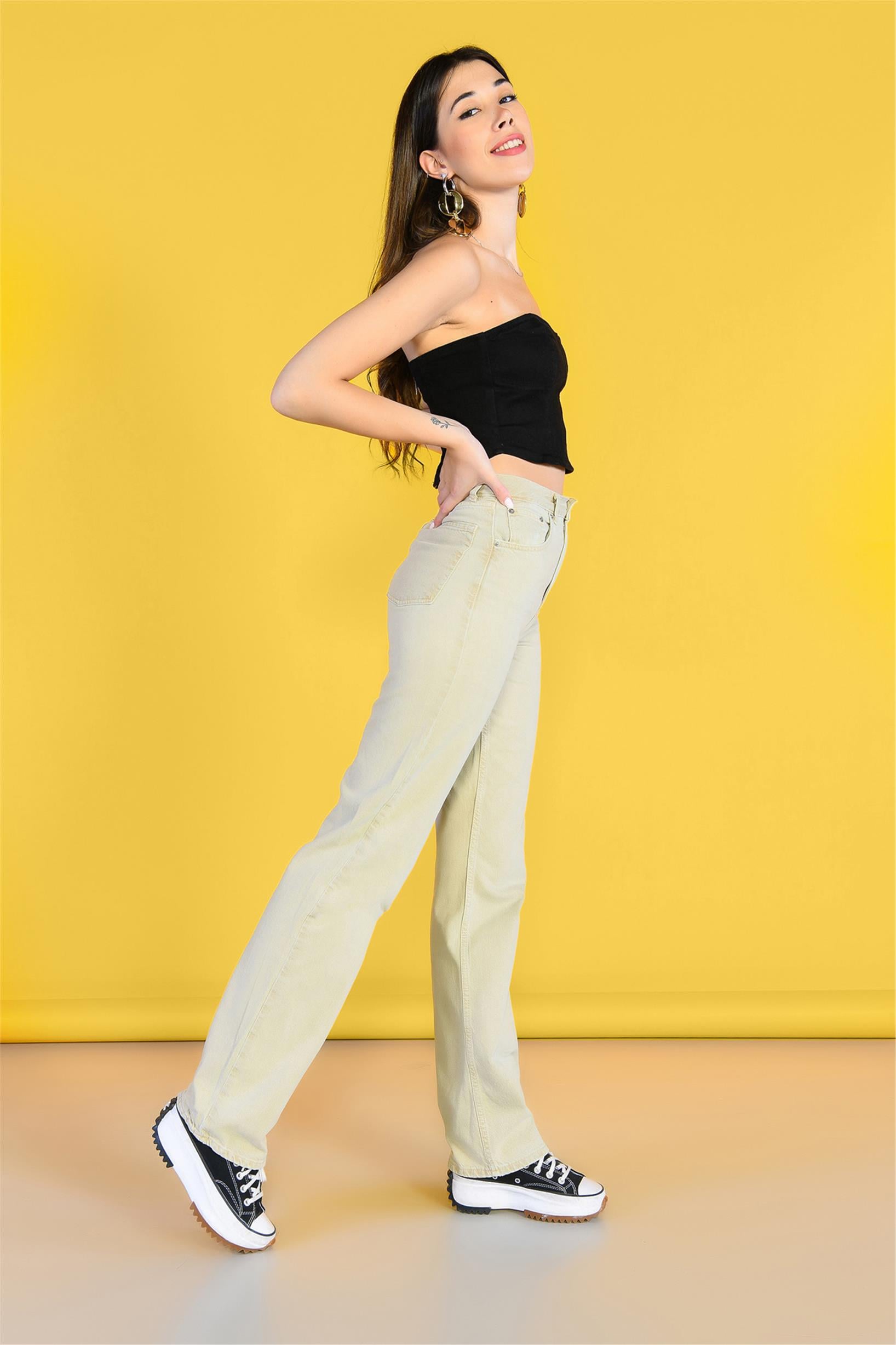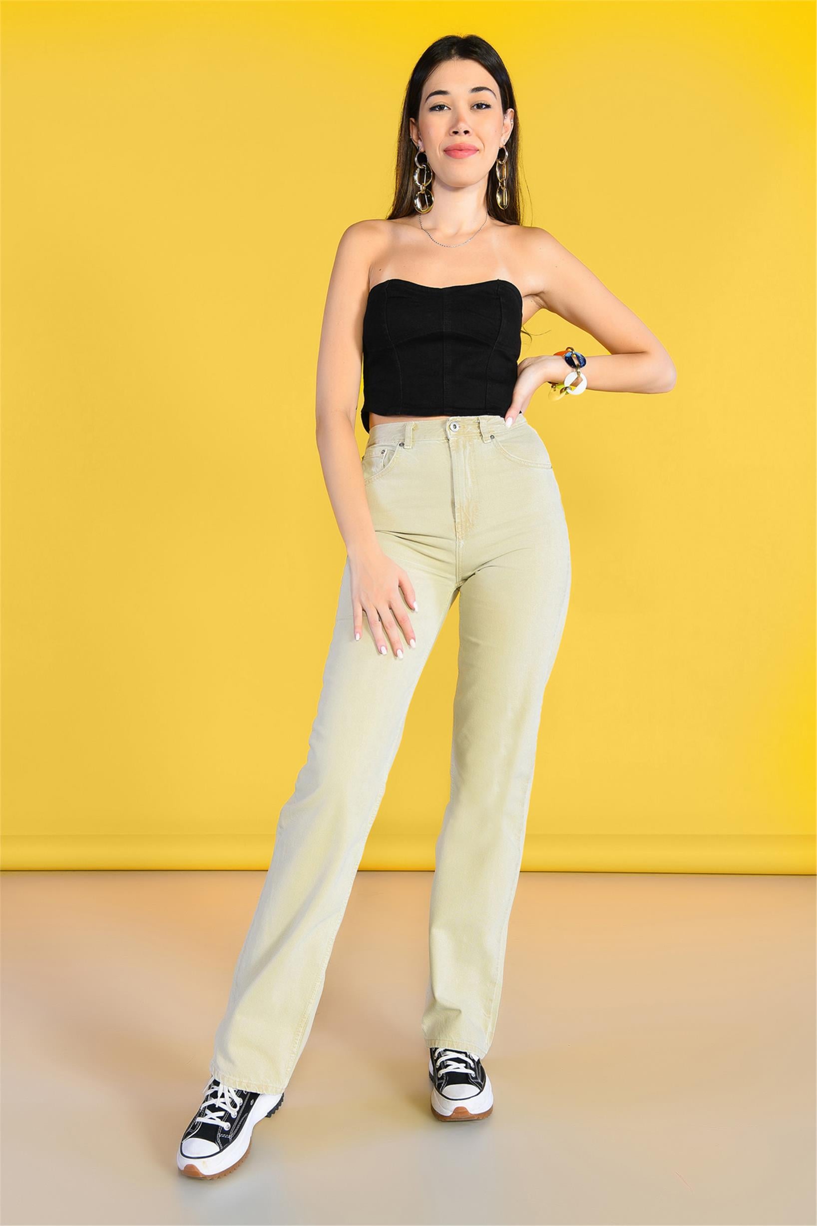 Açık Yeşil Yüksek Bel Wideleg Jeans