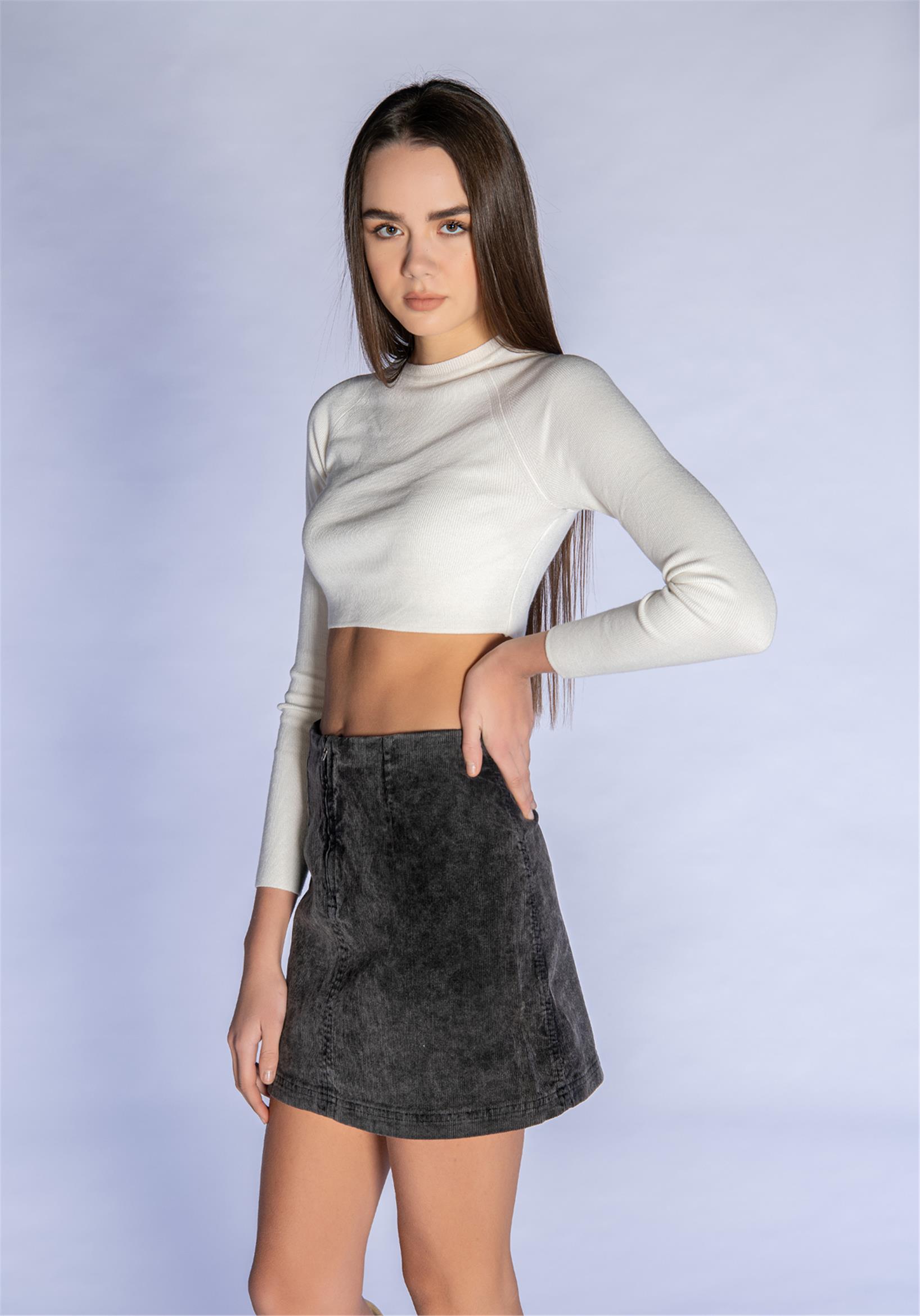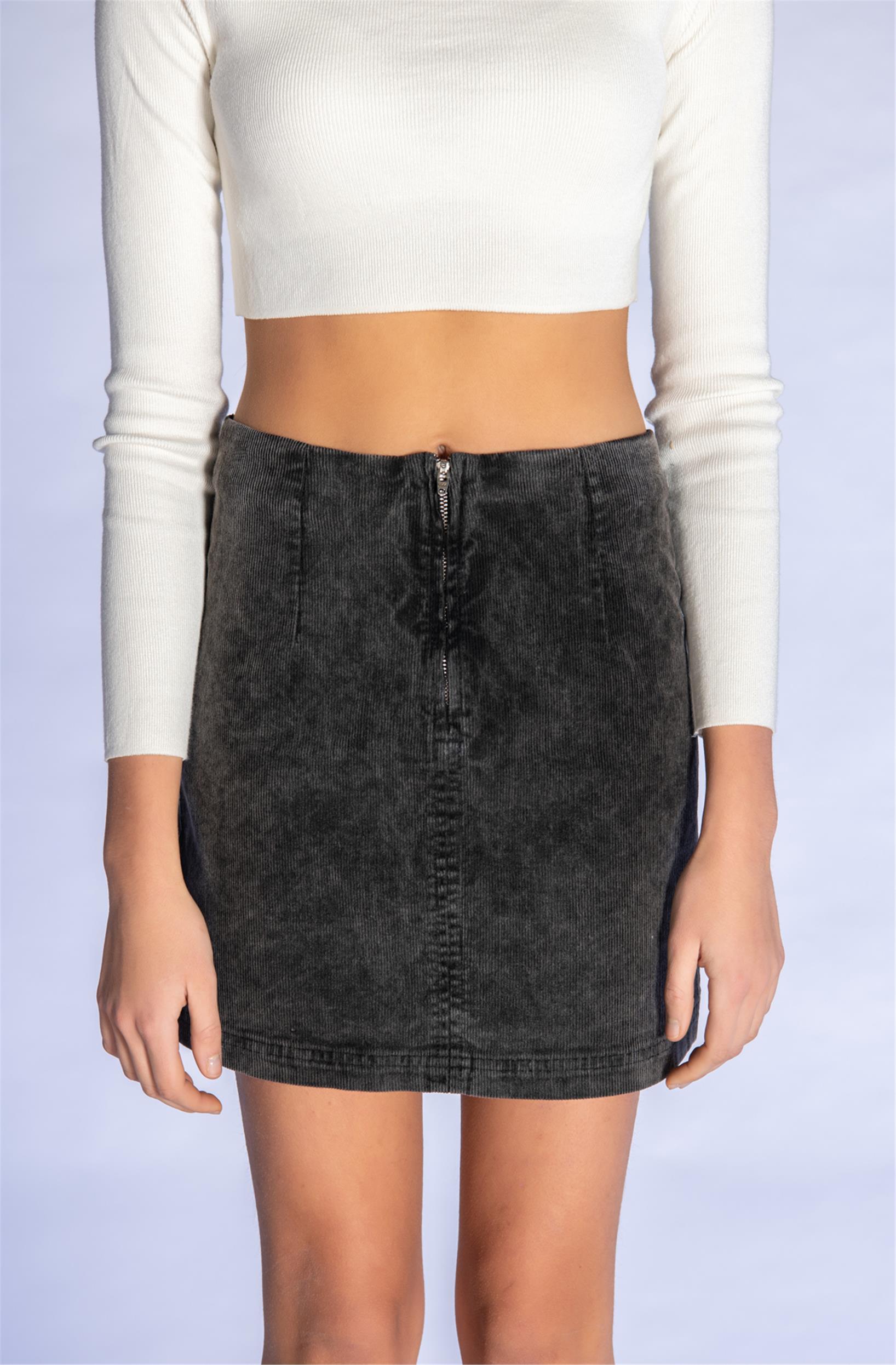 Antrasit Fitilli Kadife Mini Etek