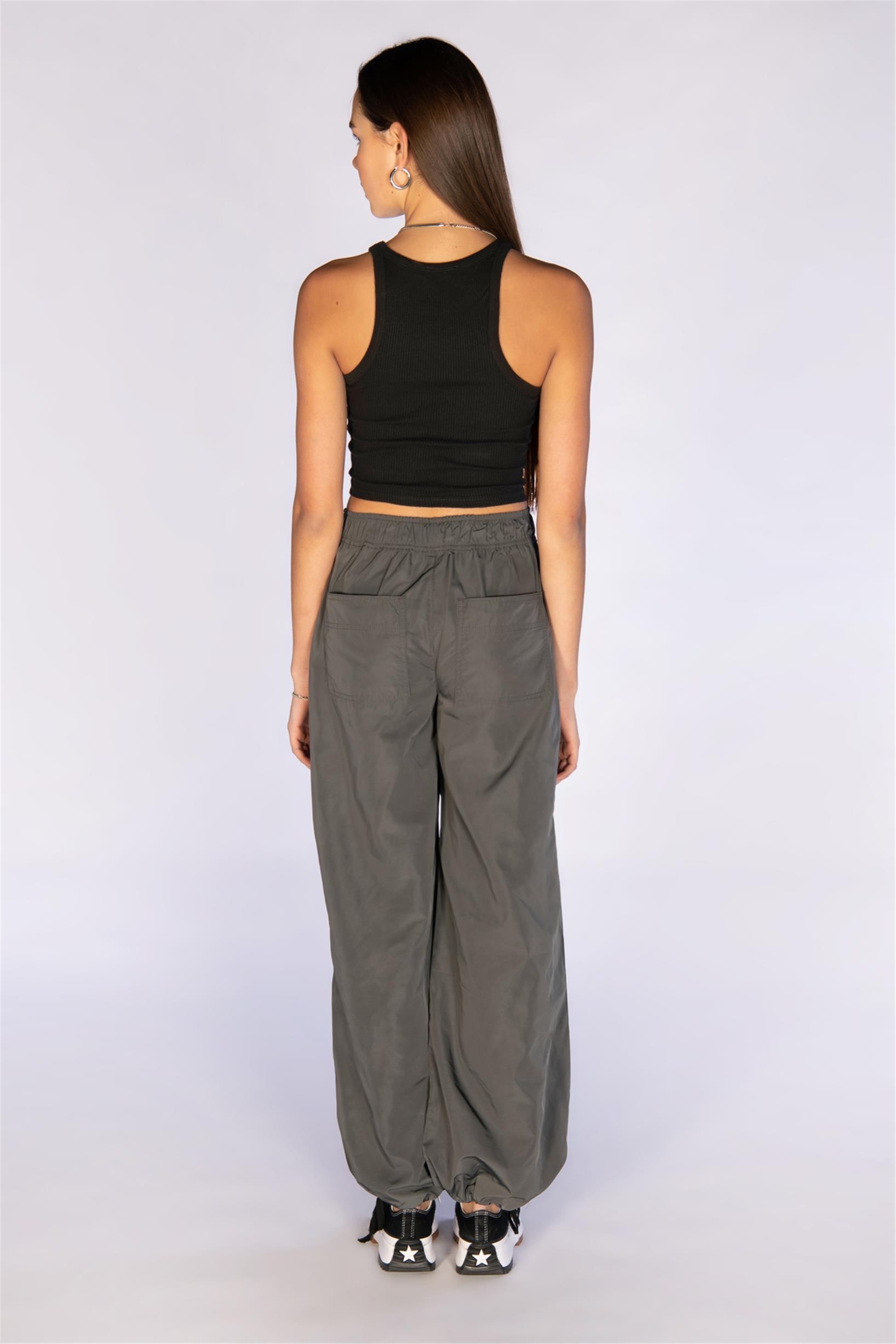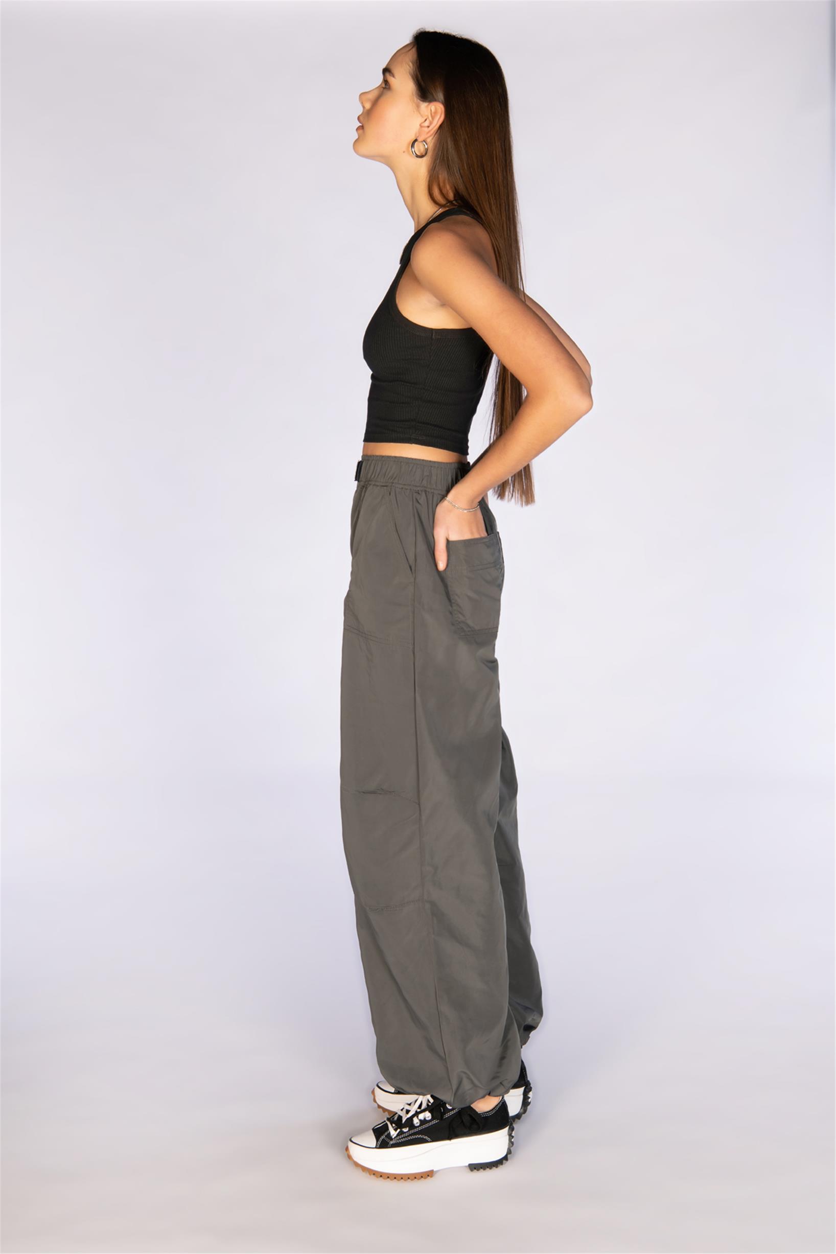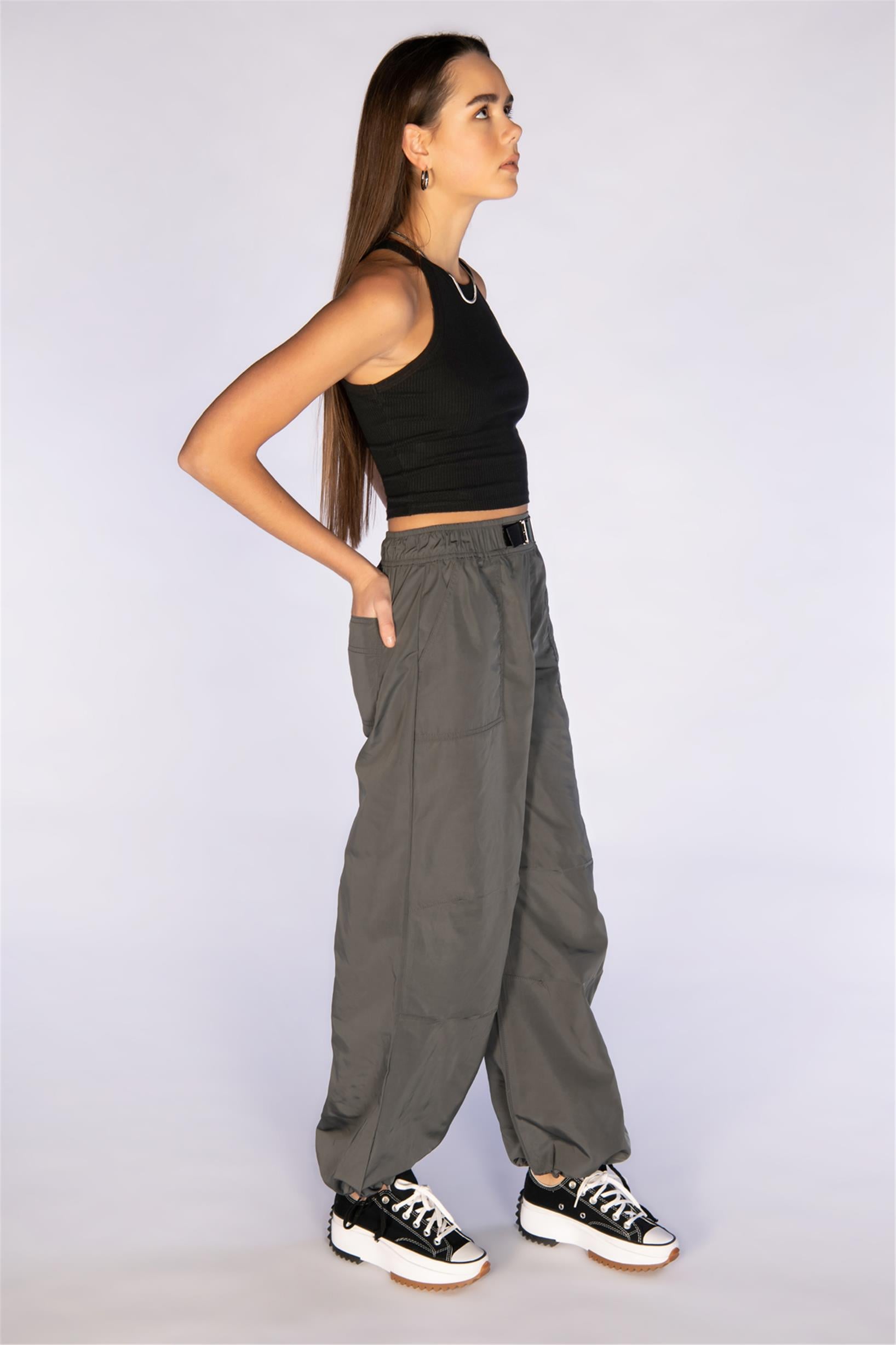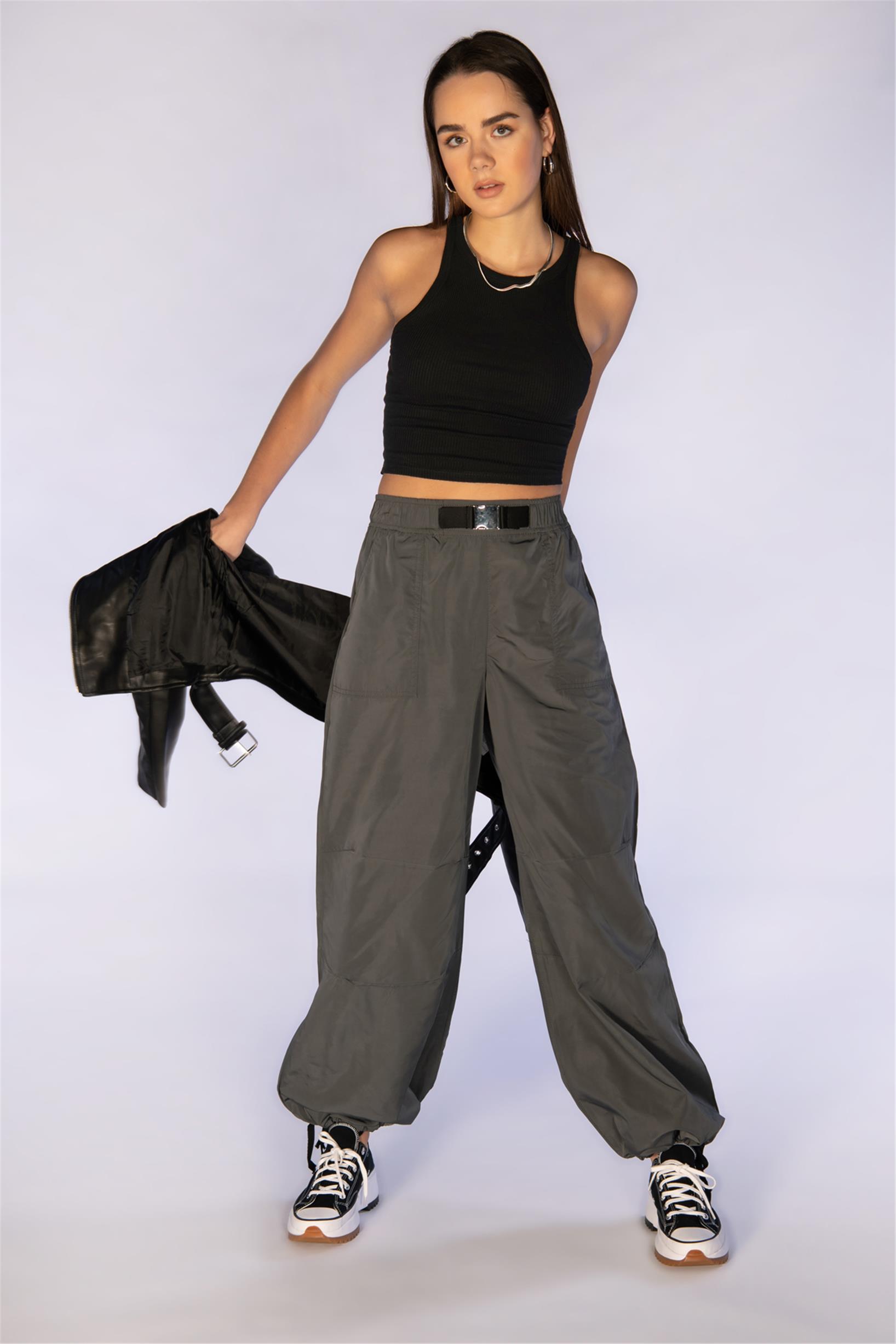 Antrasit Gri Yüksek Bel Tokalı Paraşüt Kargo Pantolon