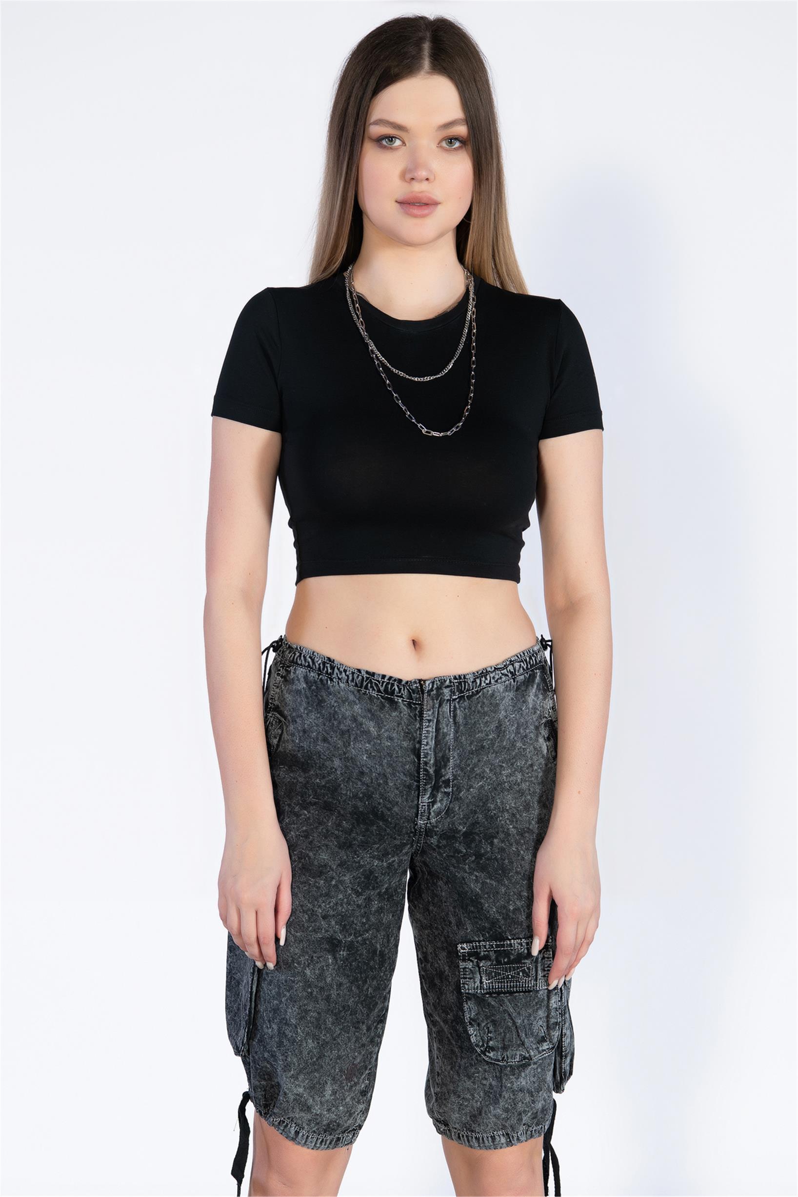 Antrasit Normal Bel Stoperli Bermuda Kargo Şort