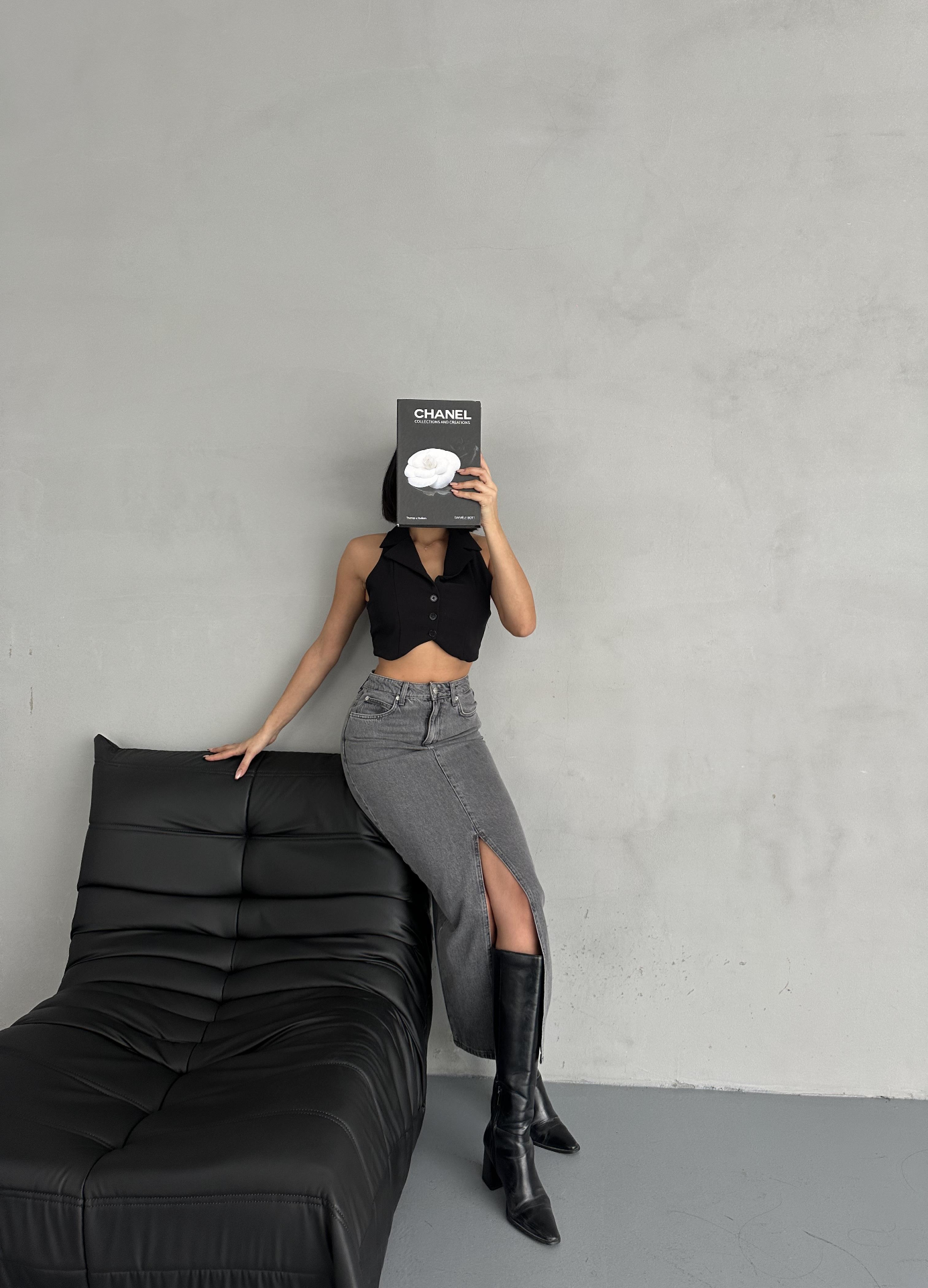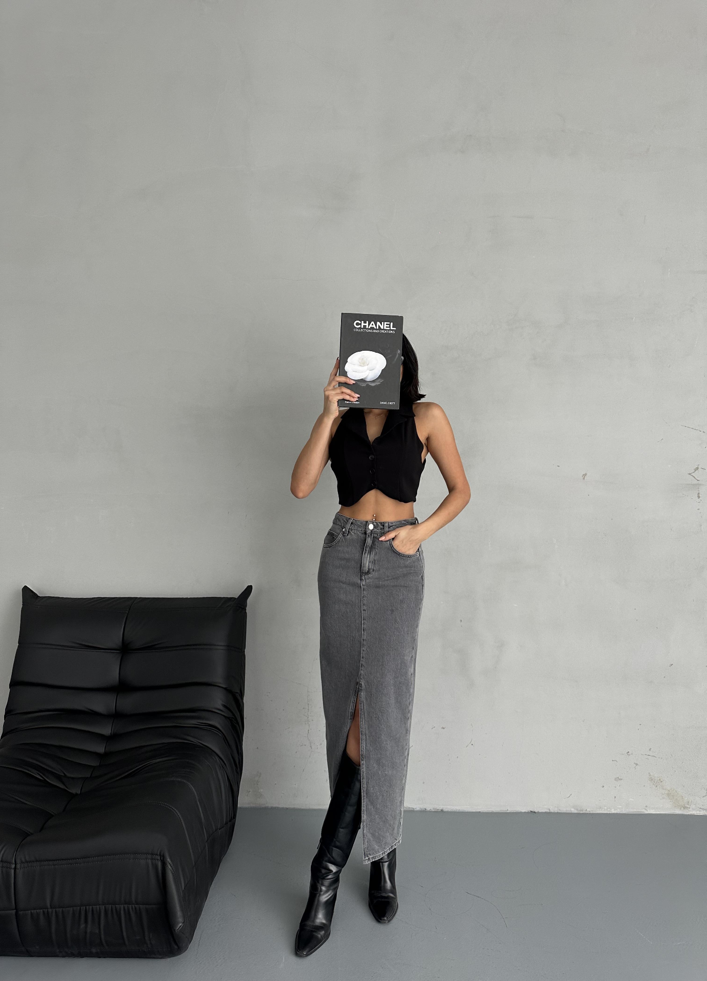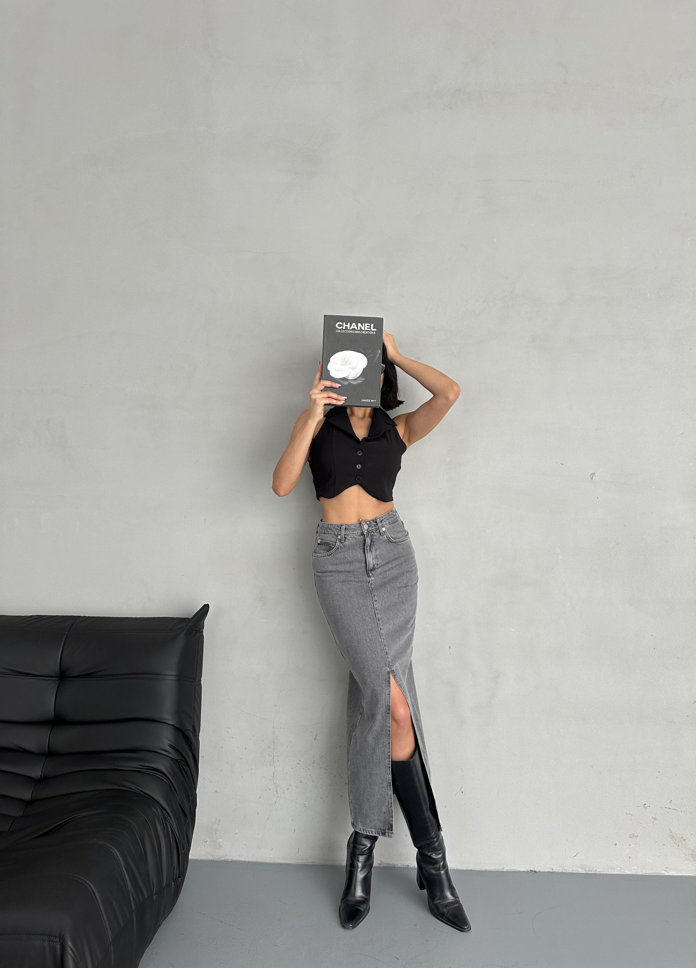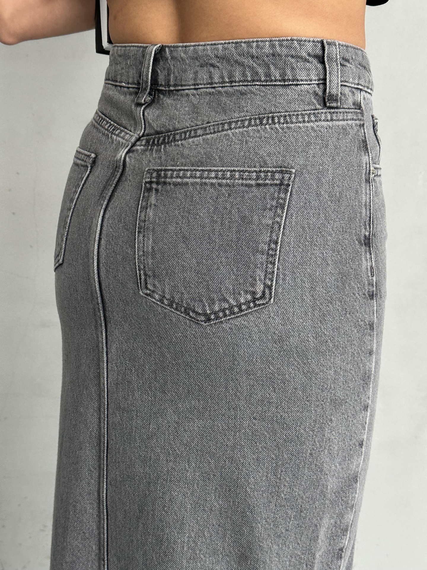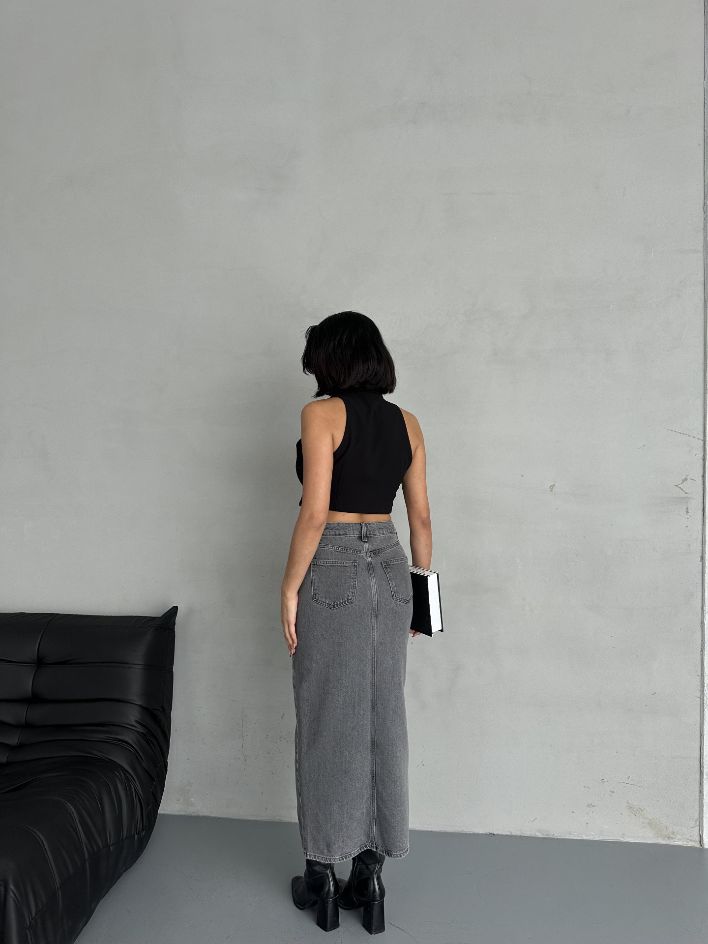 Antrasit Ön Yırtmaç Detaylı Jean Etek