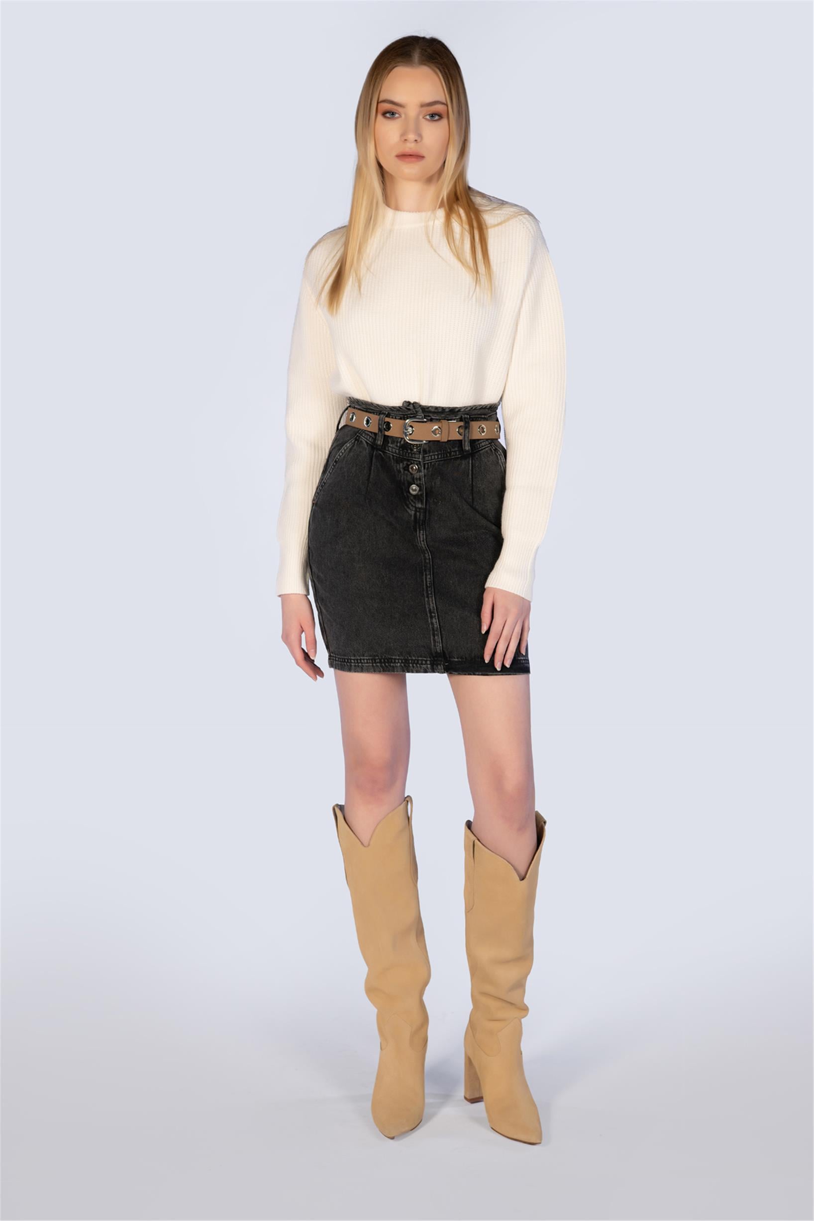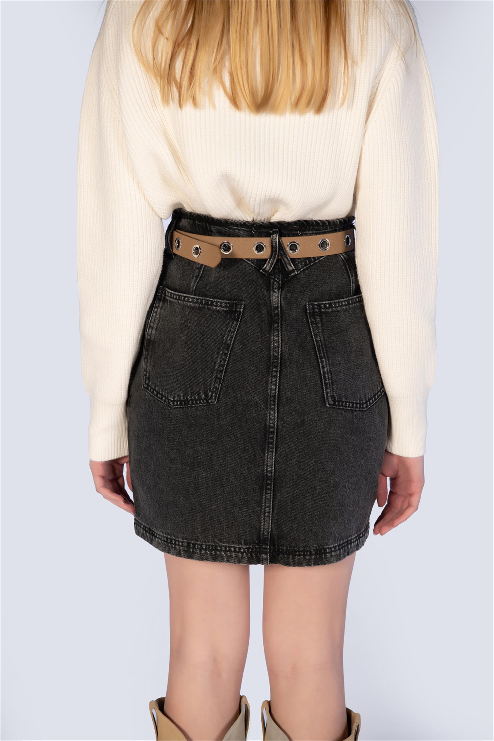 Antrasit Yüksek Bel Denim Mini Kot Etek
