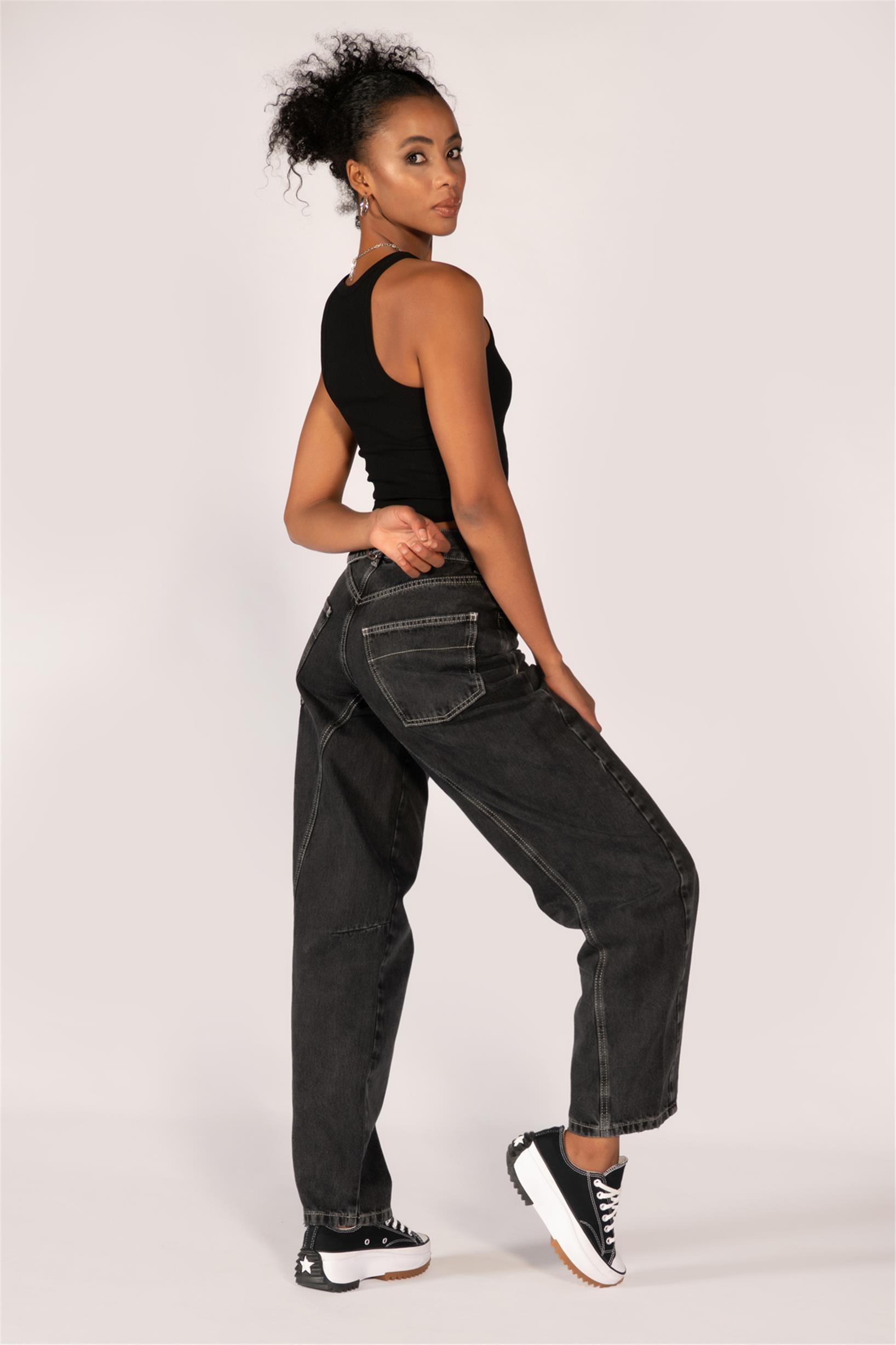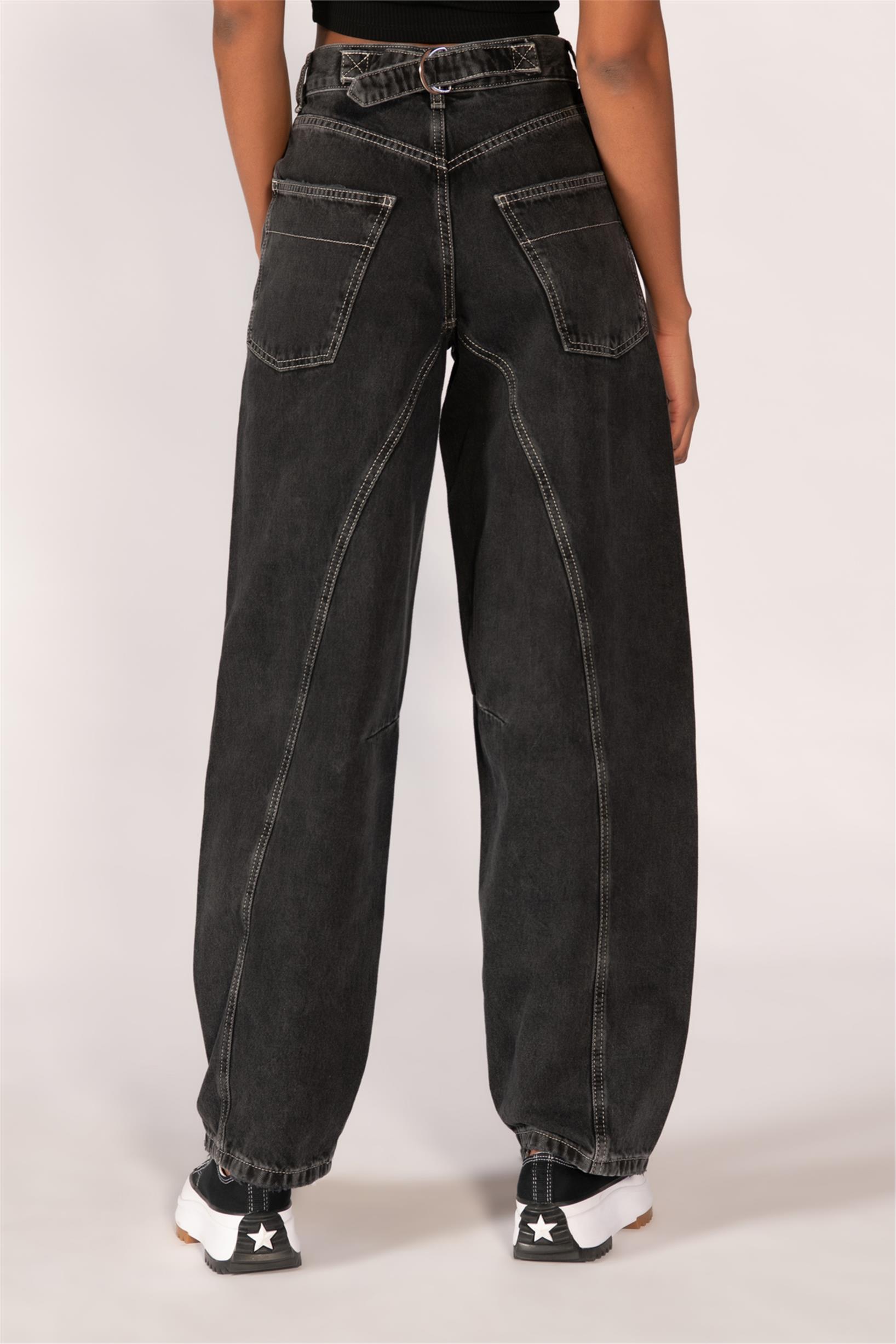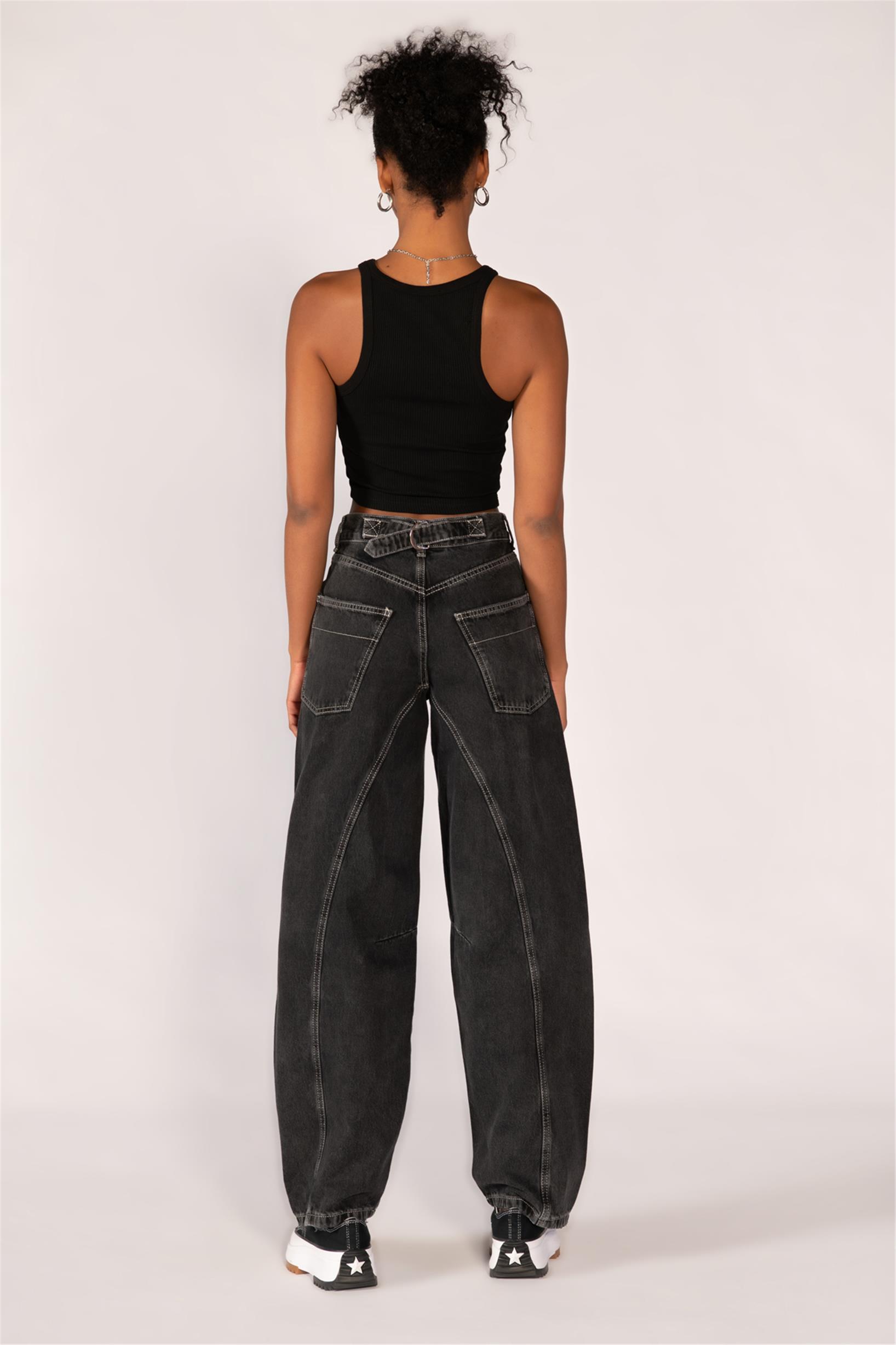 Antrasit Yüksek Bel Tokalı Wide Leg Jeans