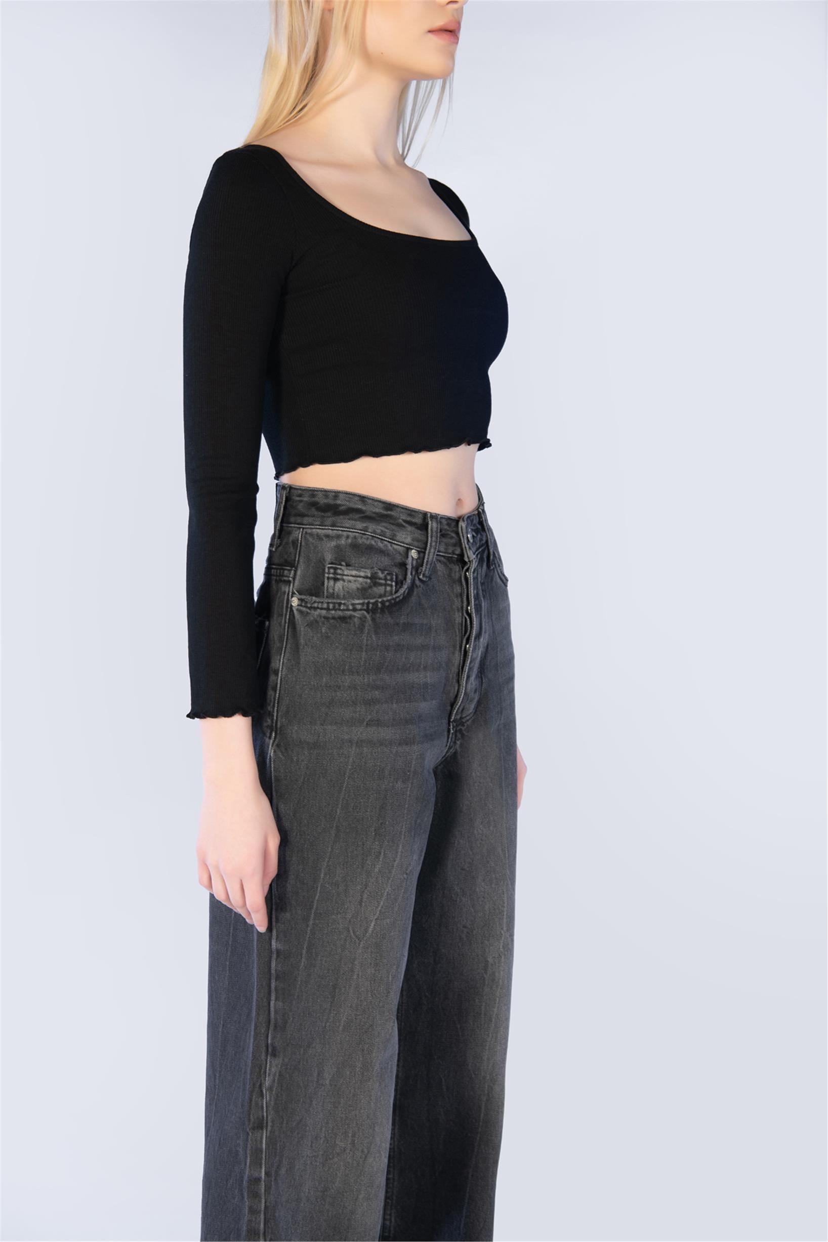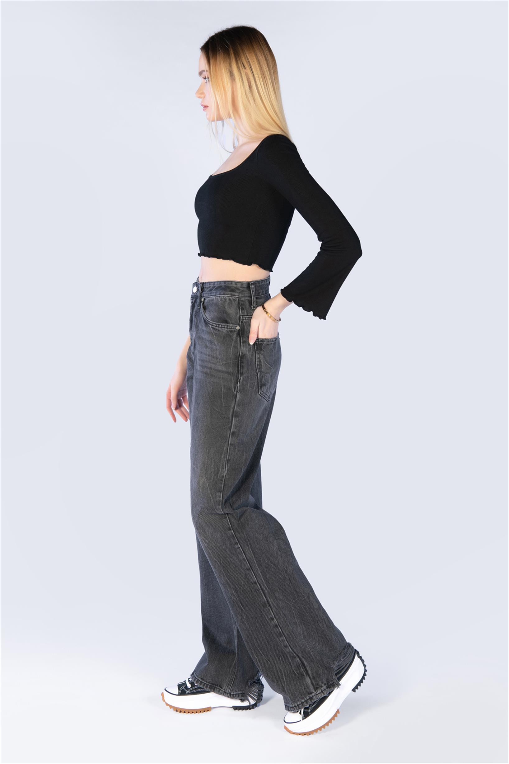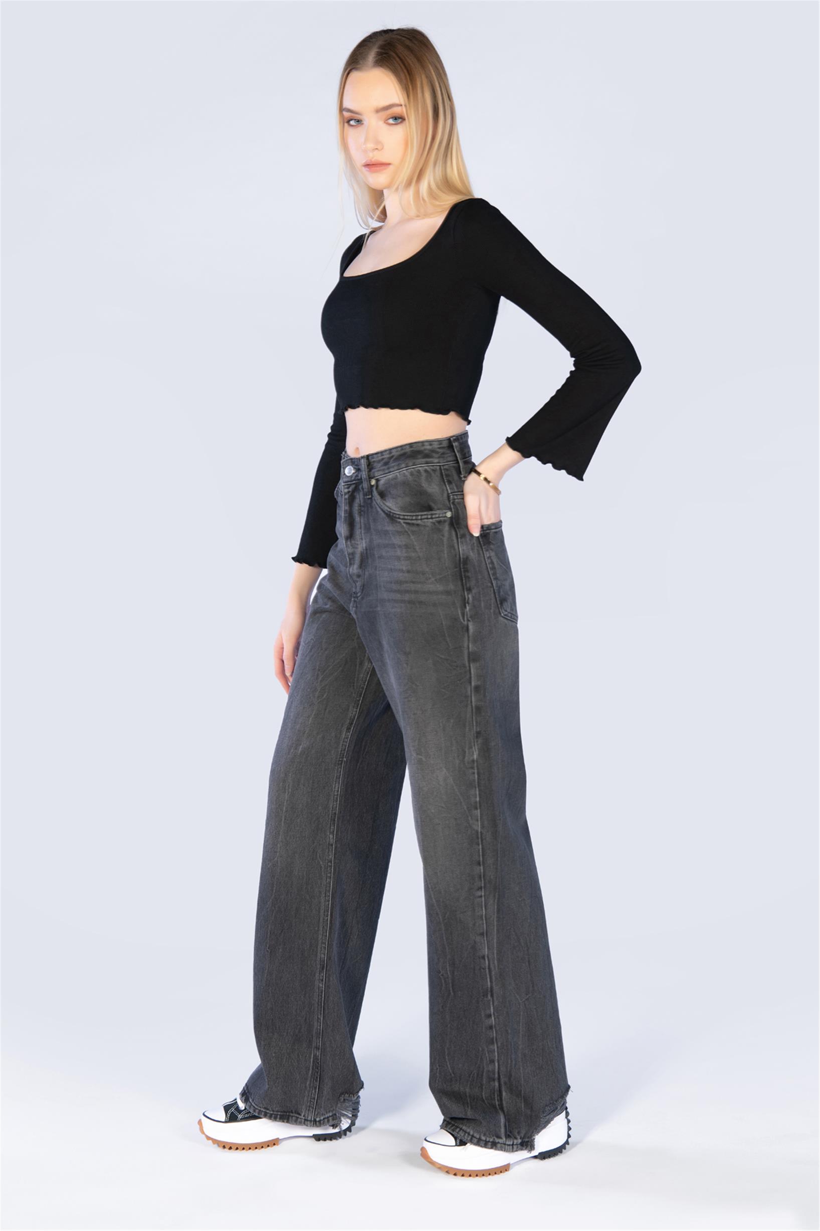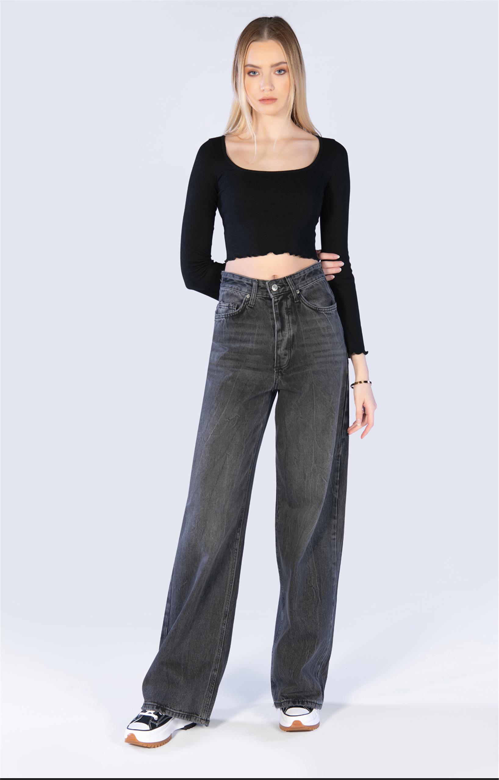Antrasit Yüksel Bel Palazzo Jeans