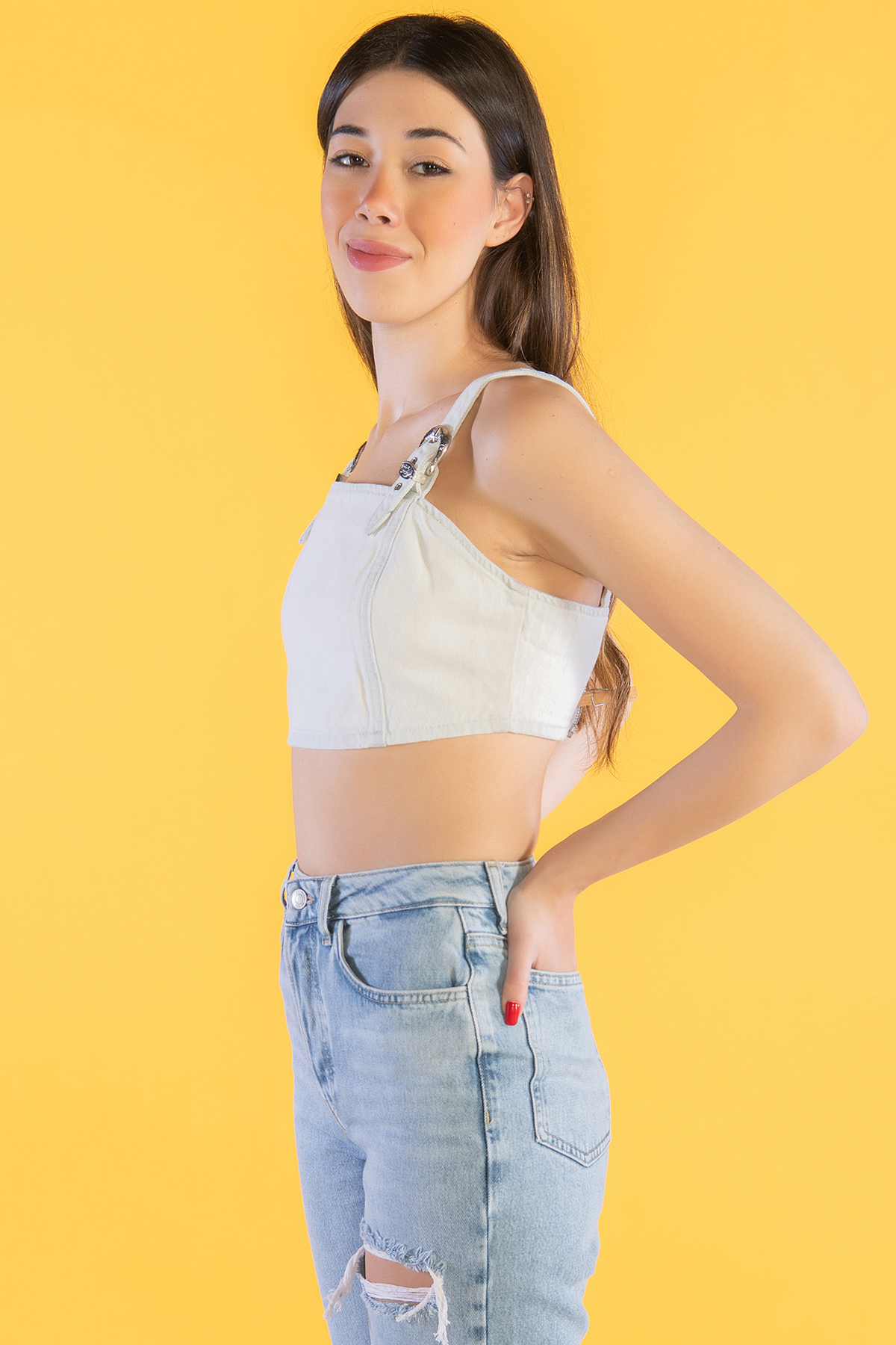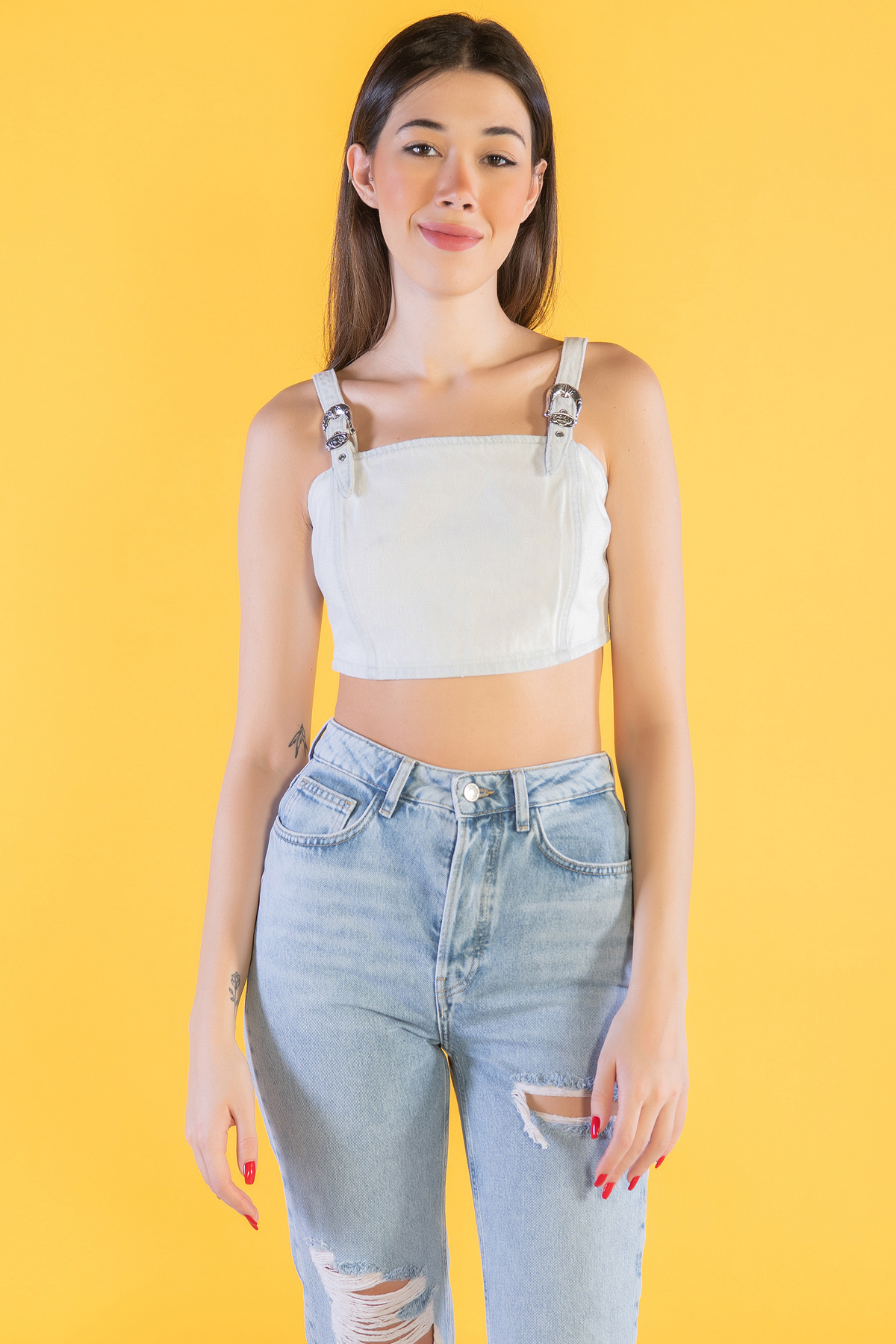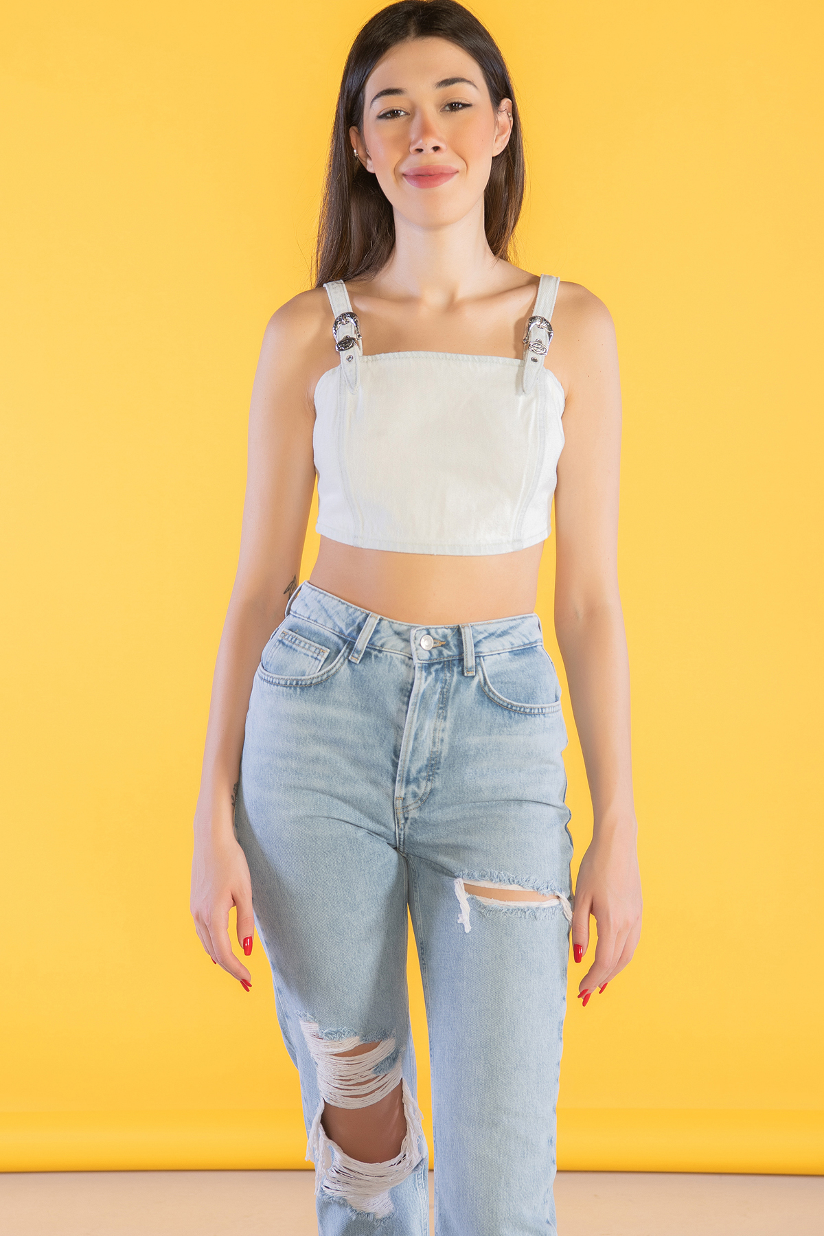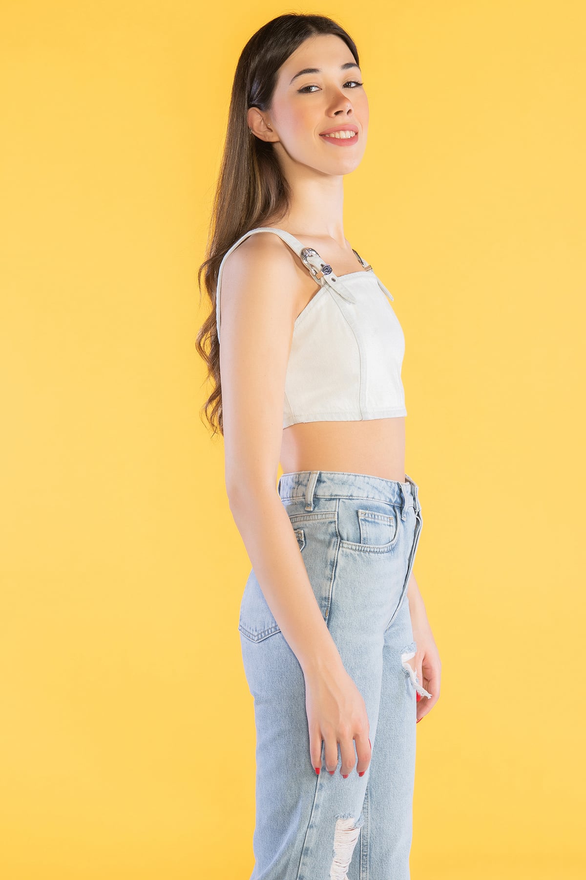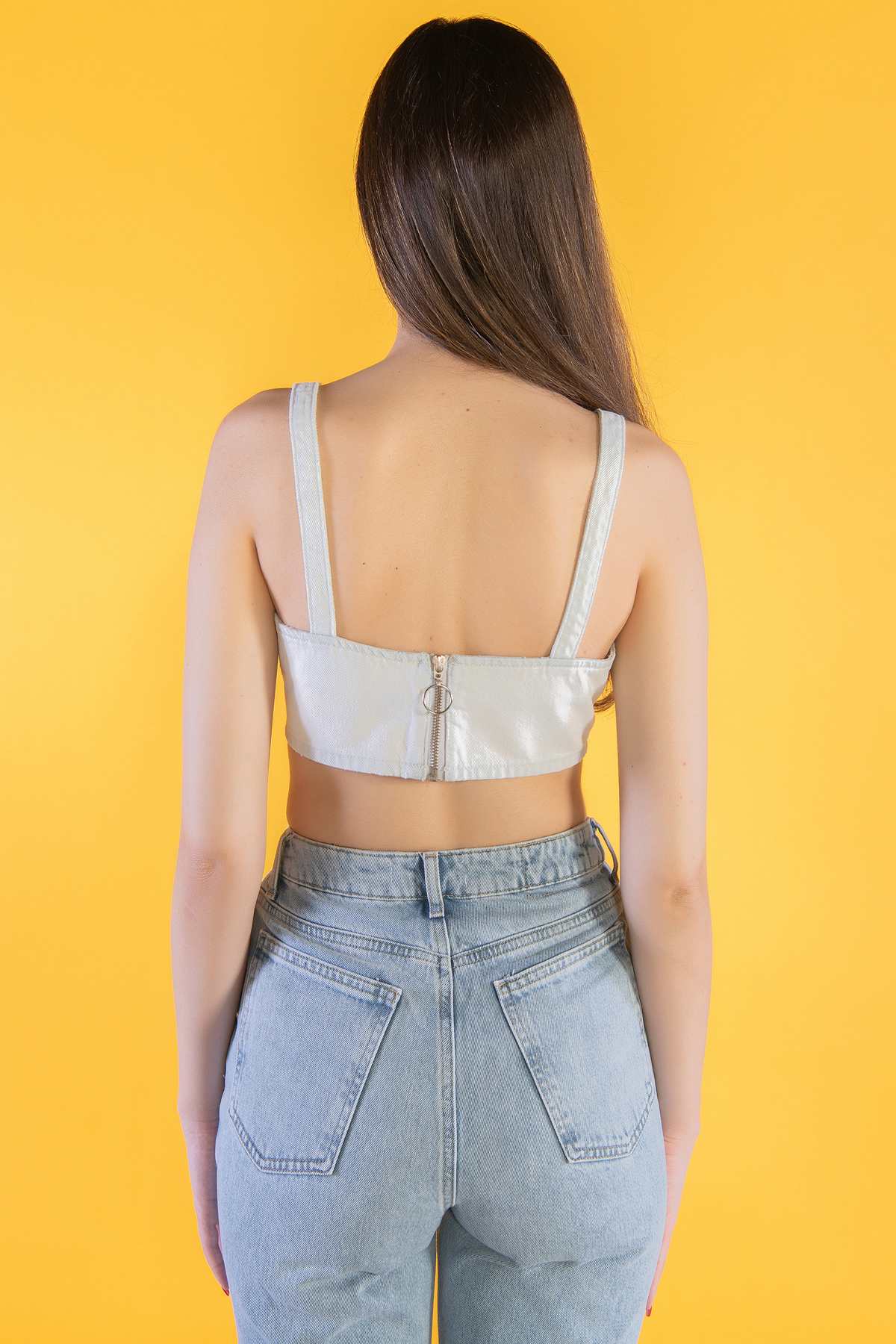 Askılı Denim Crop Top