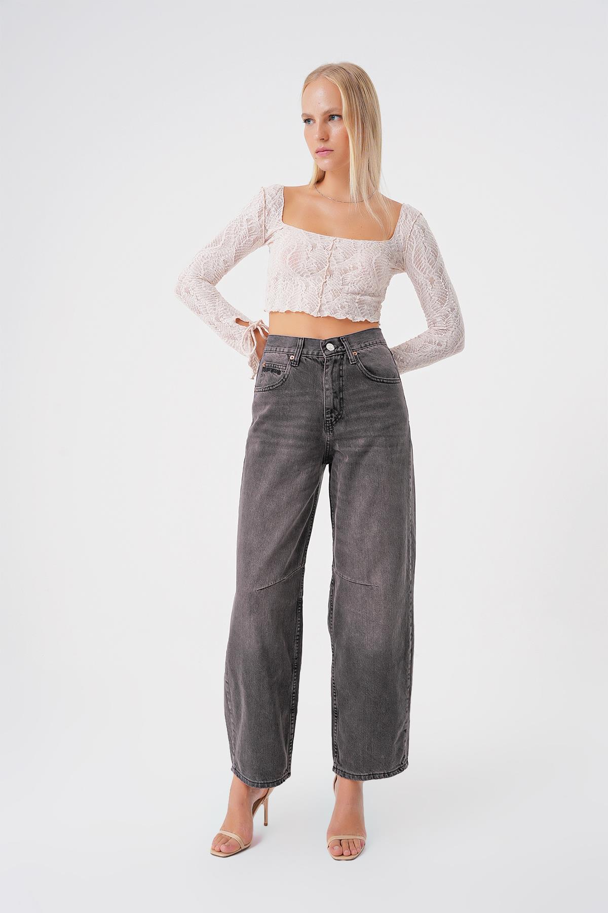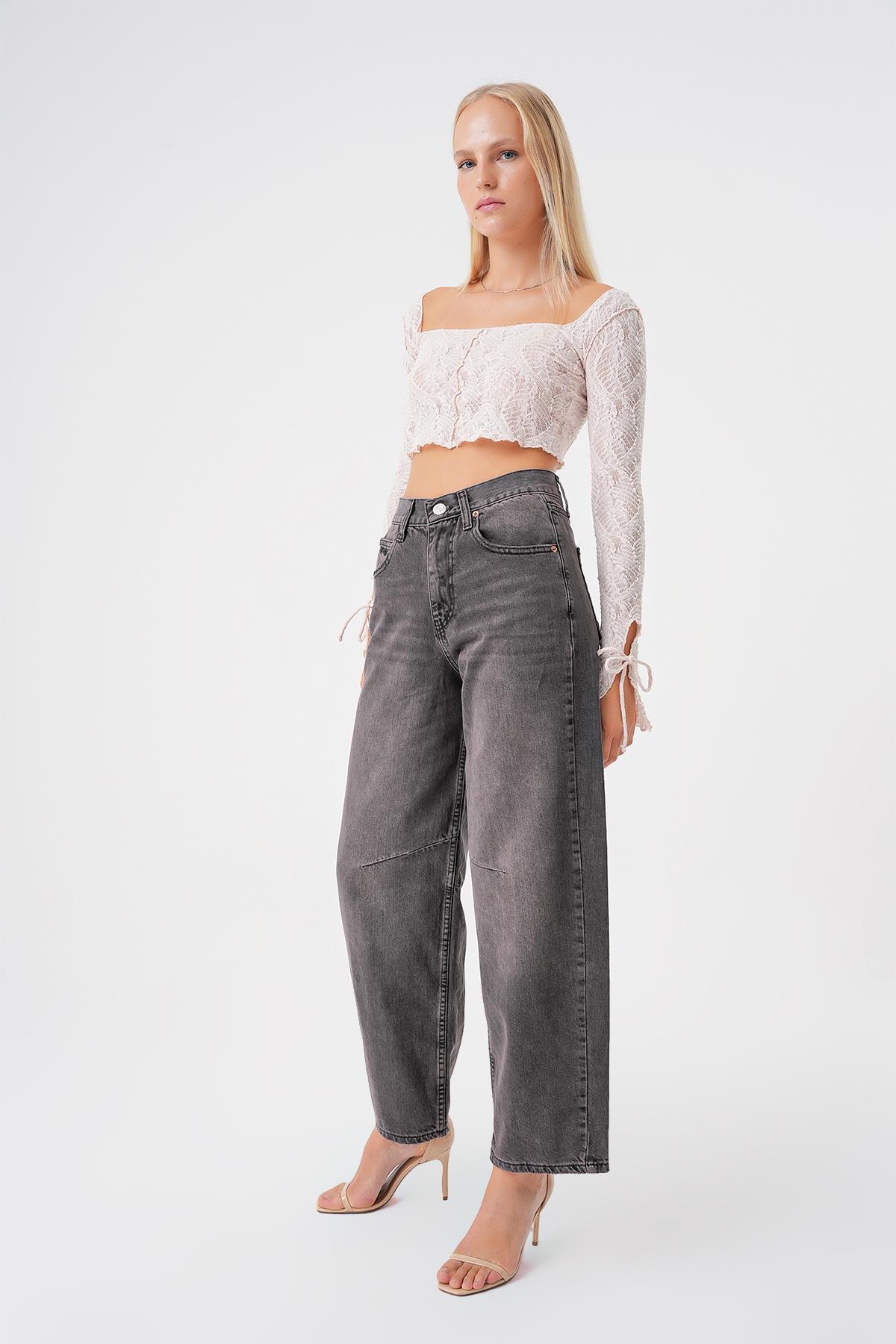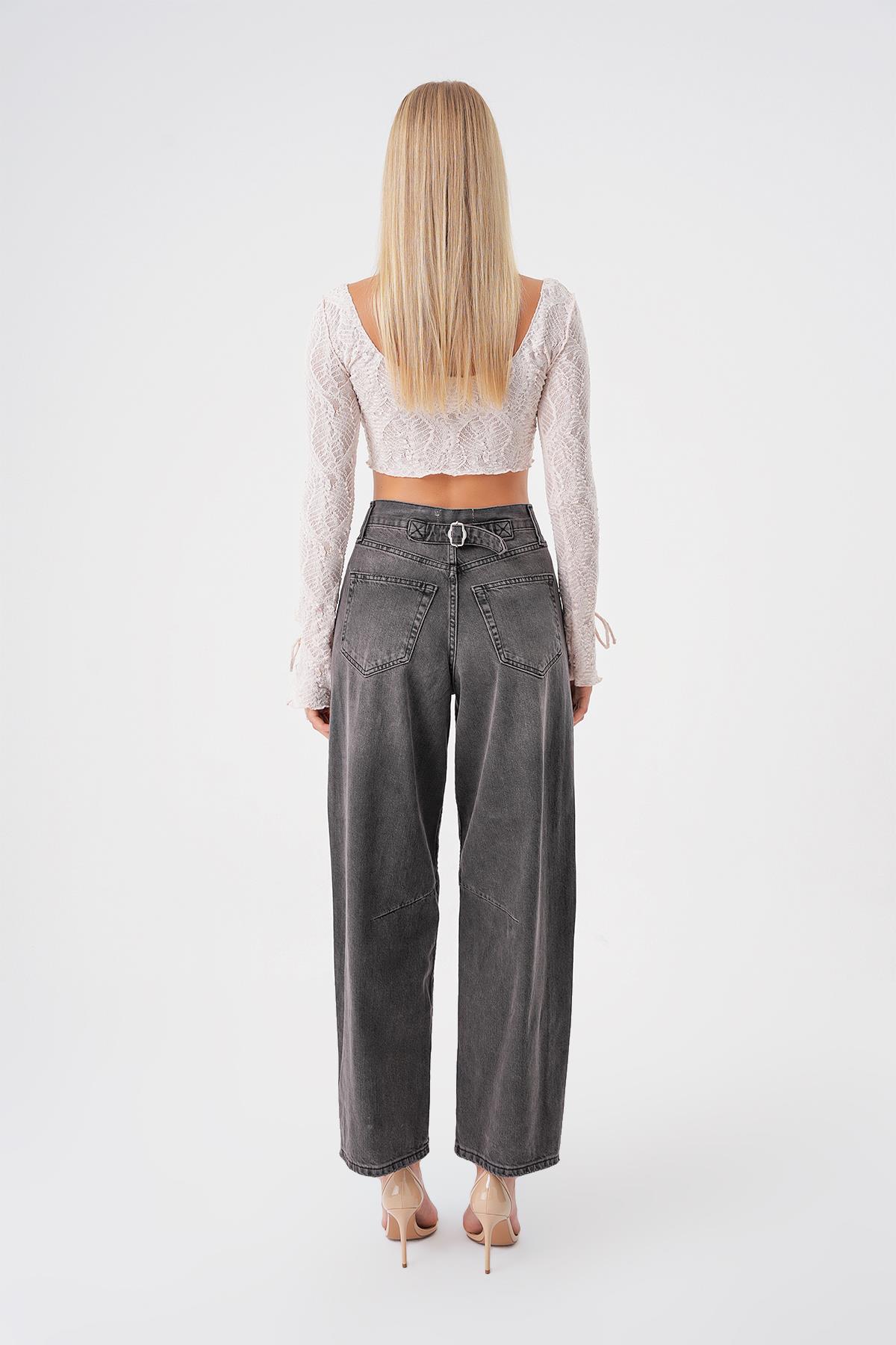 Ayarlanabilir Tokali Yuksek Bel Baggy Skater Jean