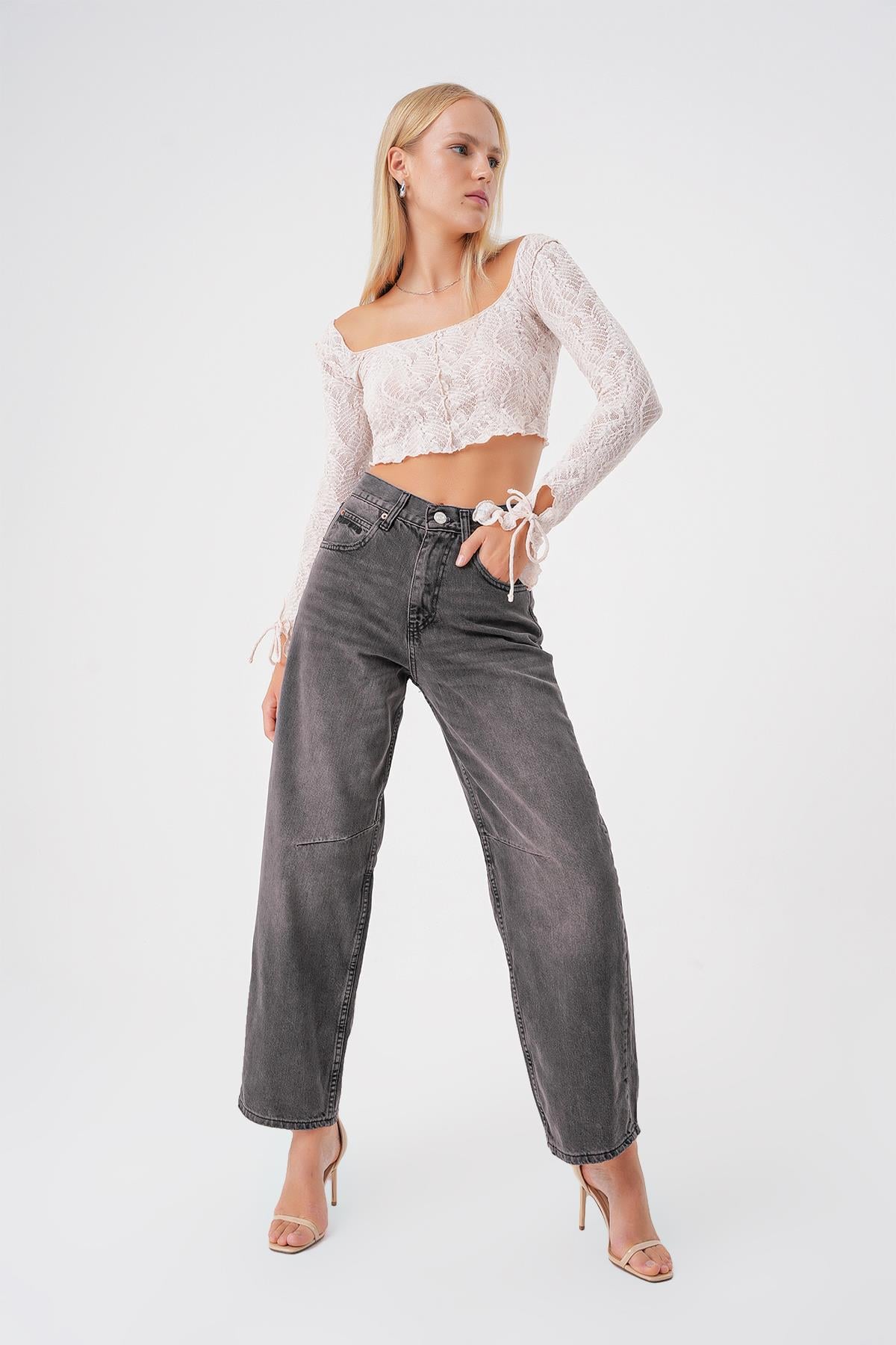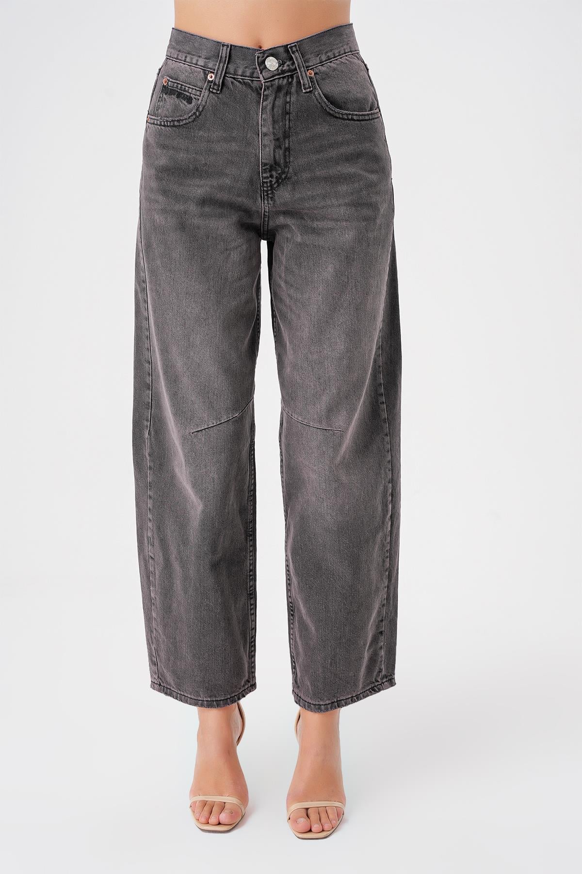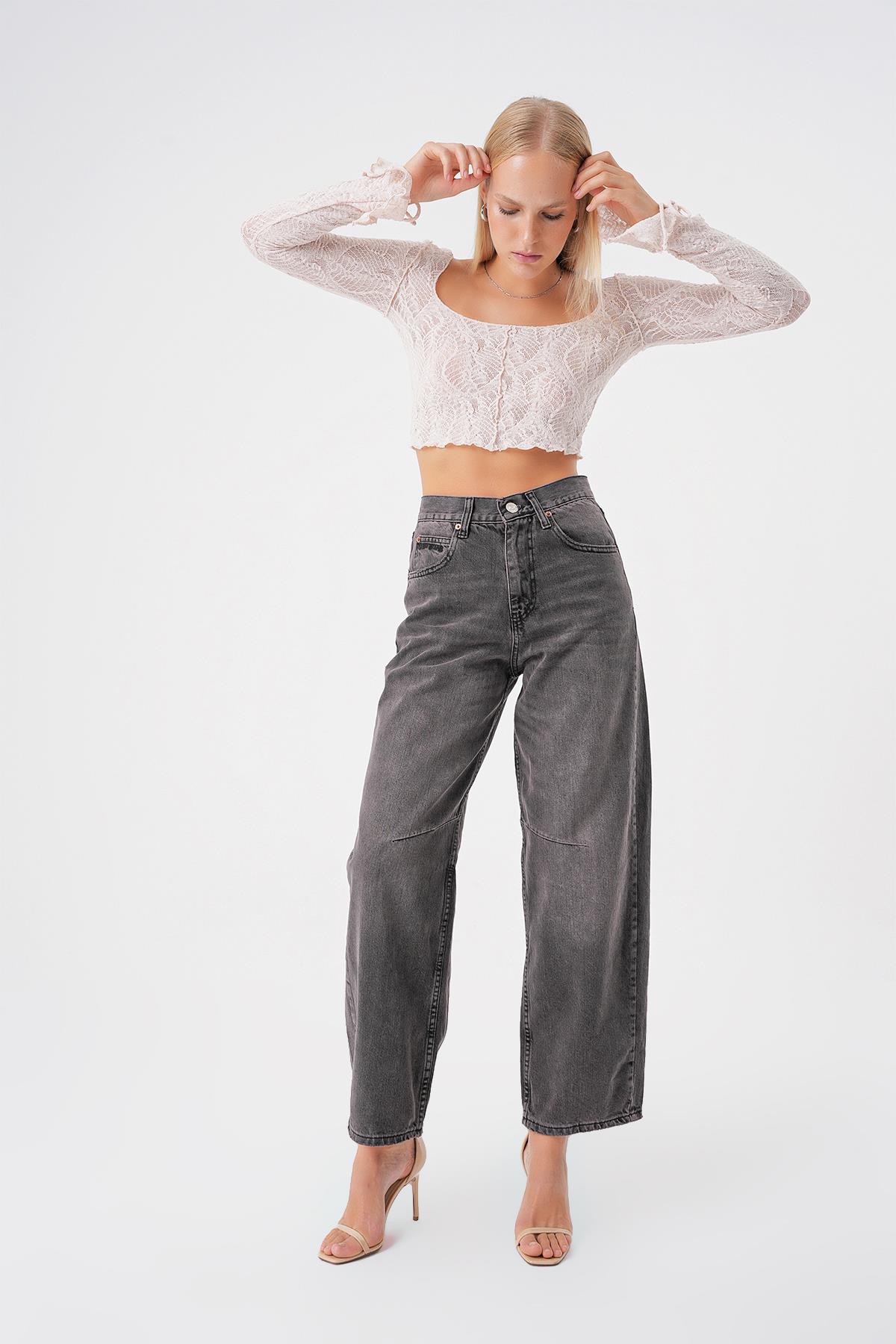 Ayarlanabilir Tokali Yuksek Bel Baggy Skater Jean