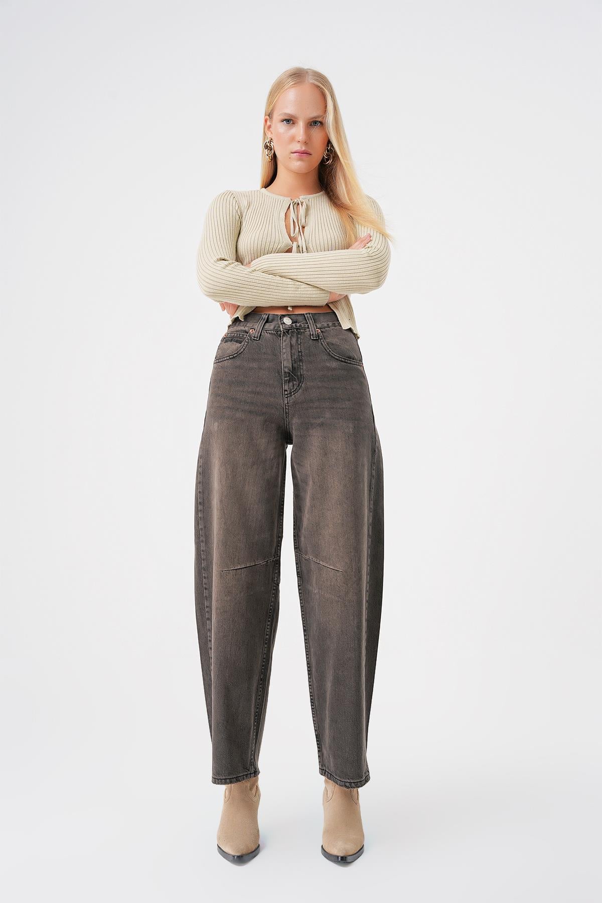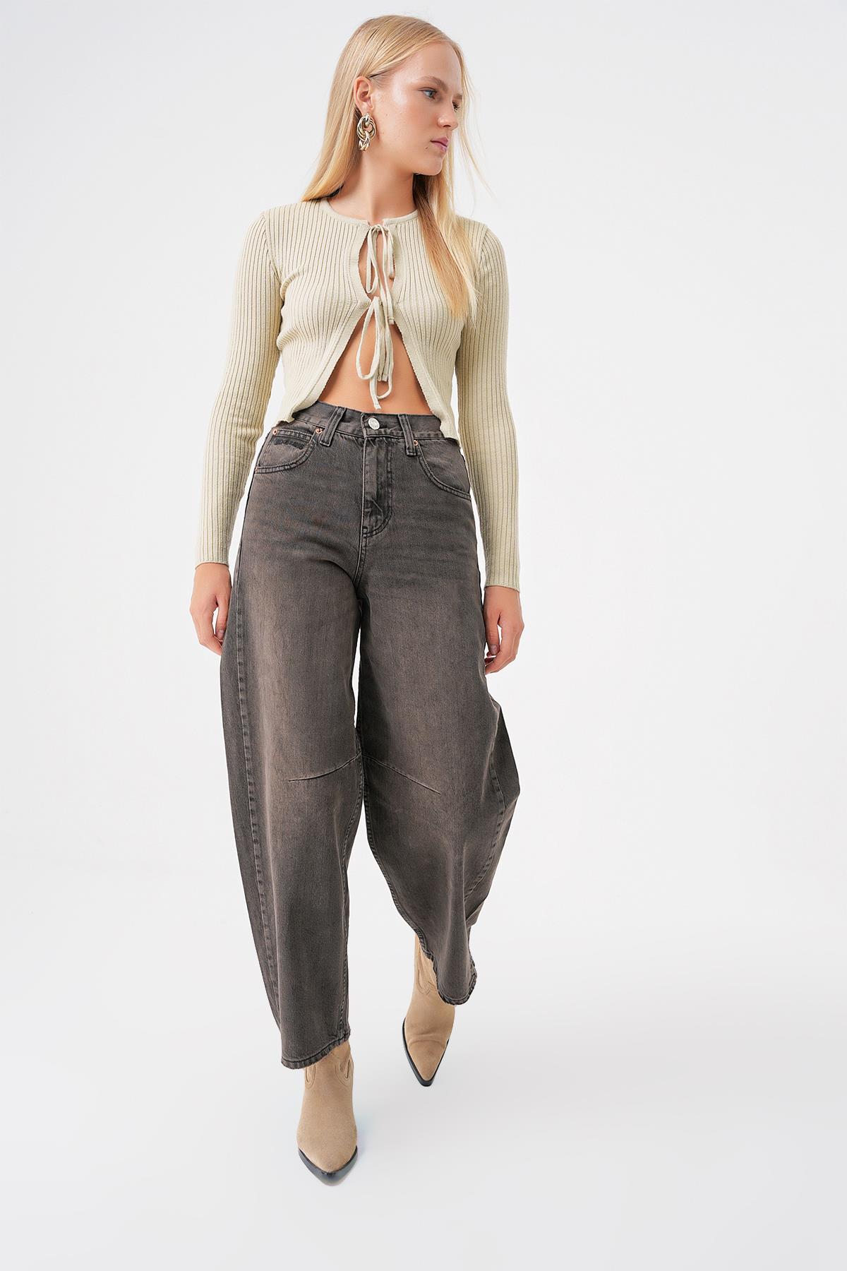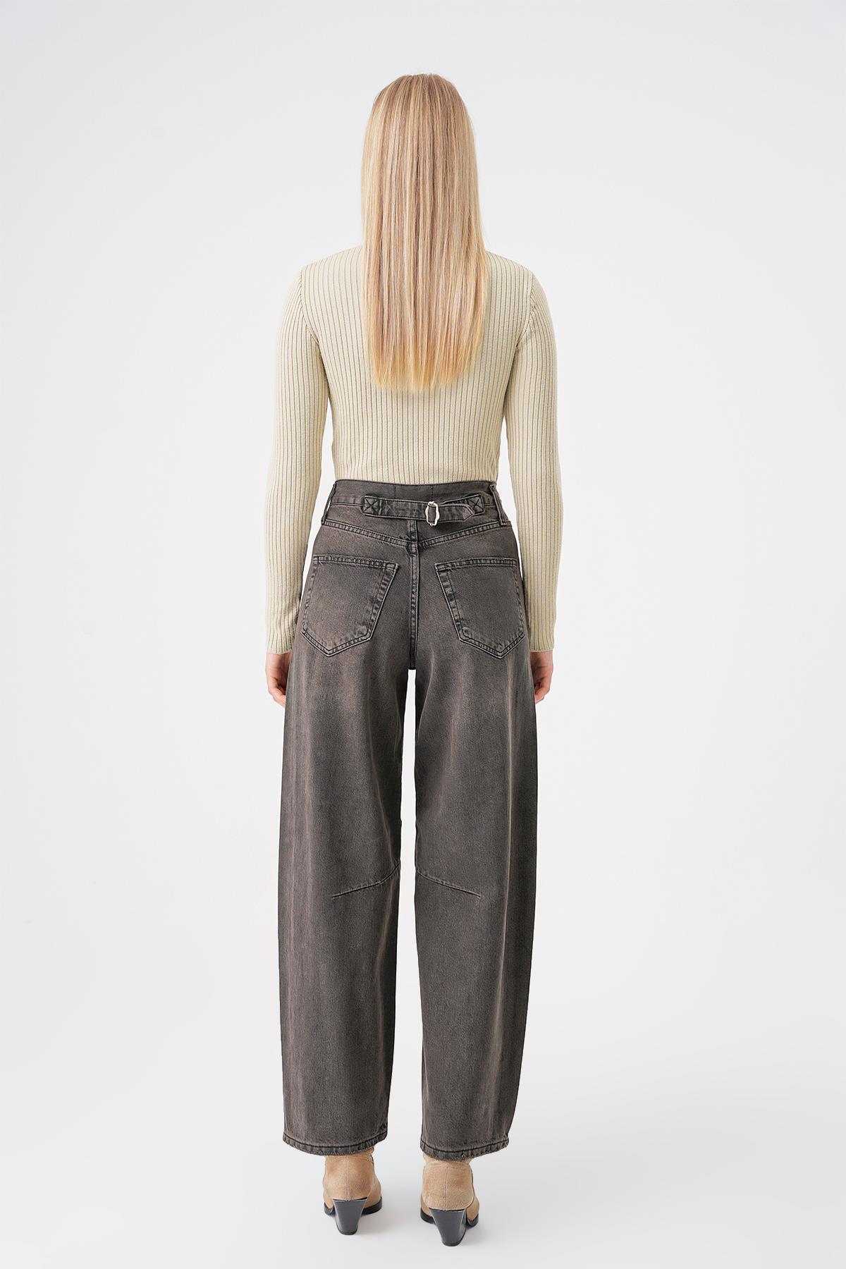 Ayarlanabilir Tokali Yuksek Bel Baggy Skater Jean