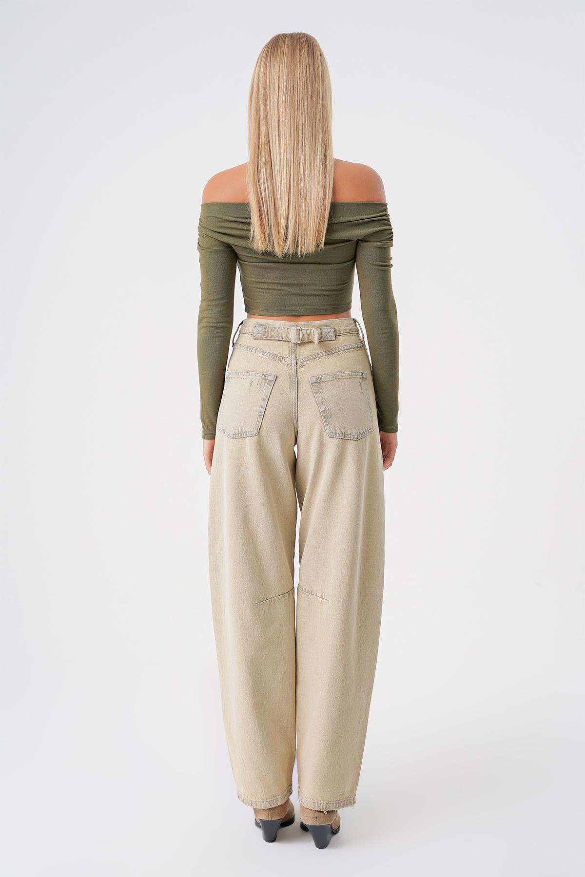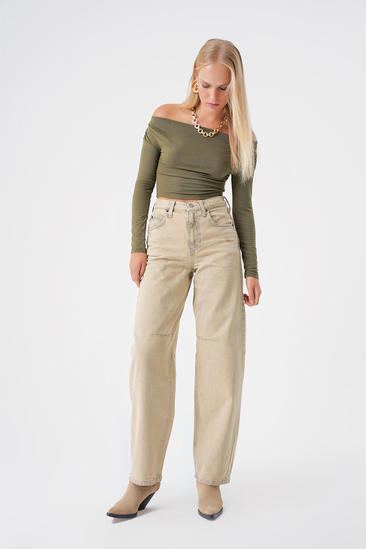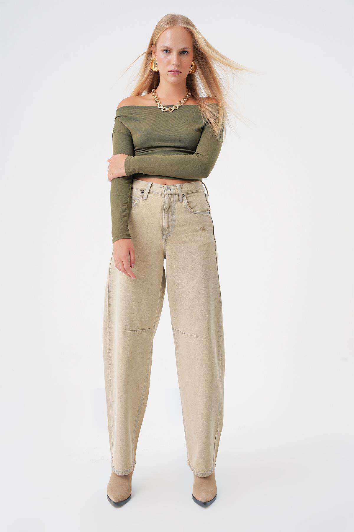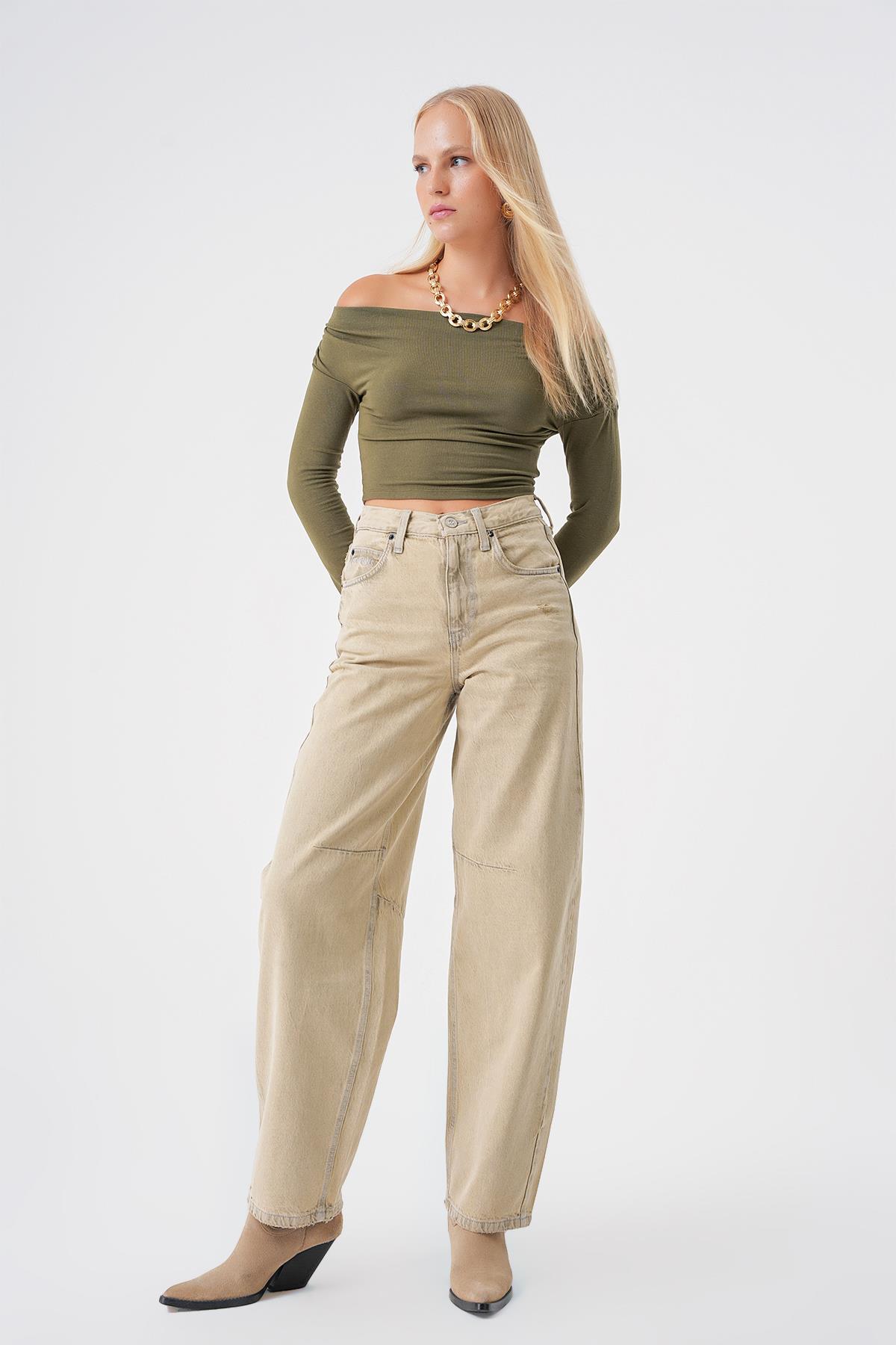 Ayarlanabilir Tokali Yuksek Bel Baggy Skater Jean