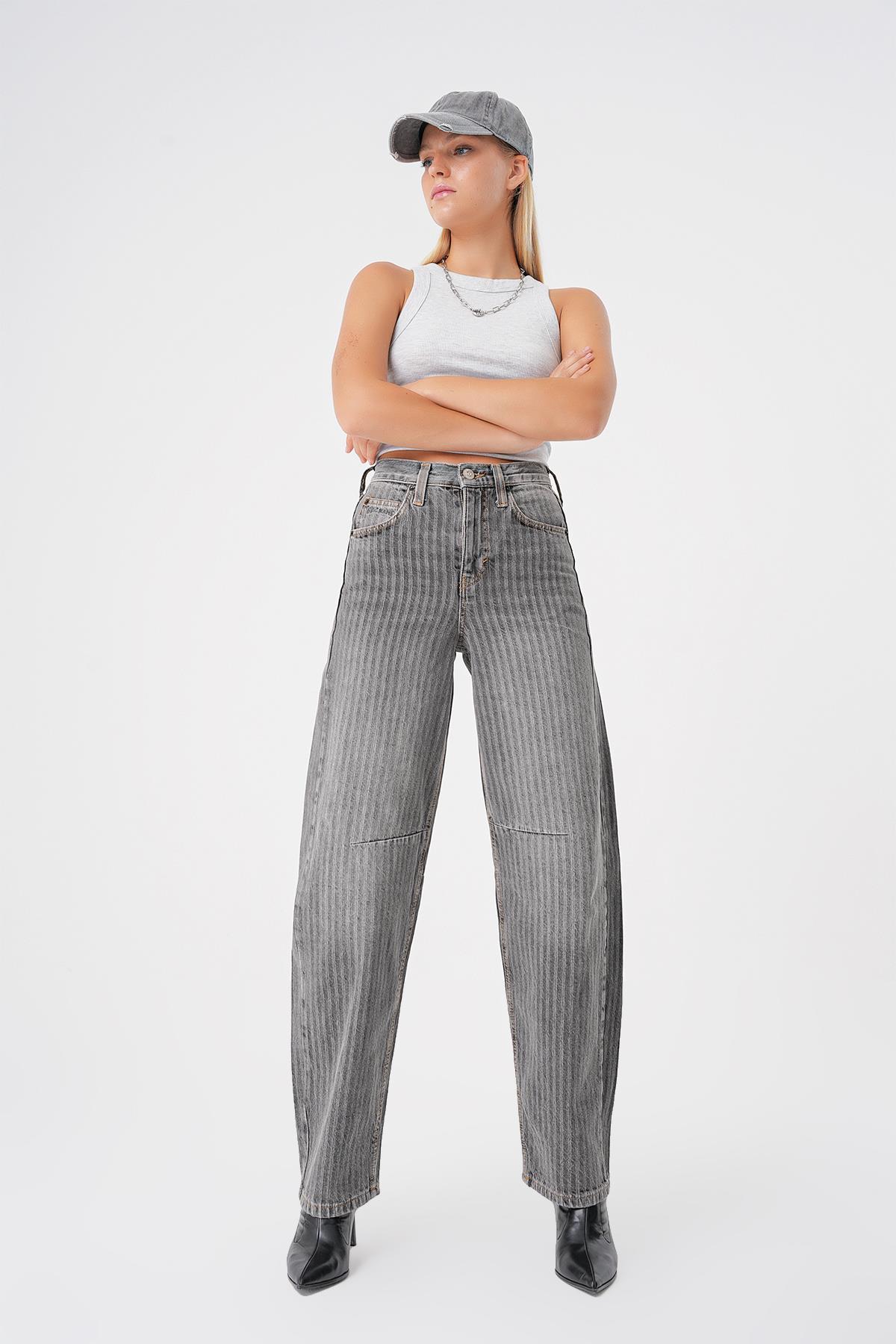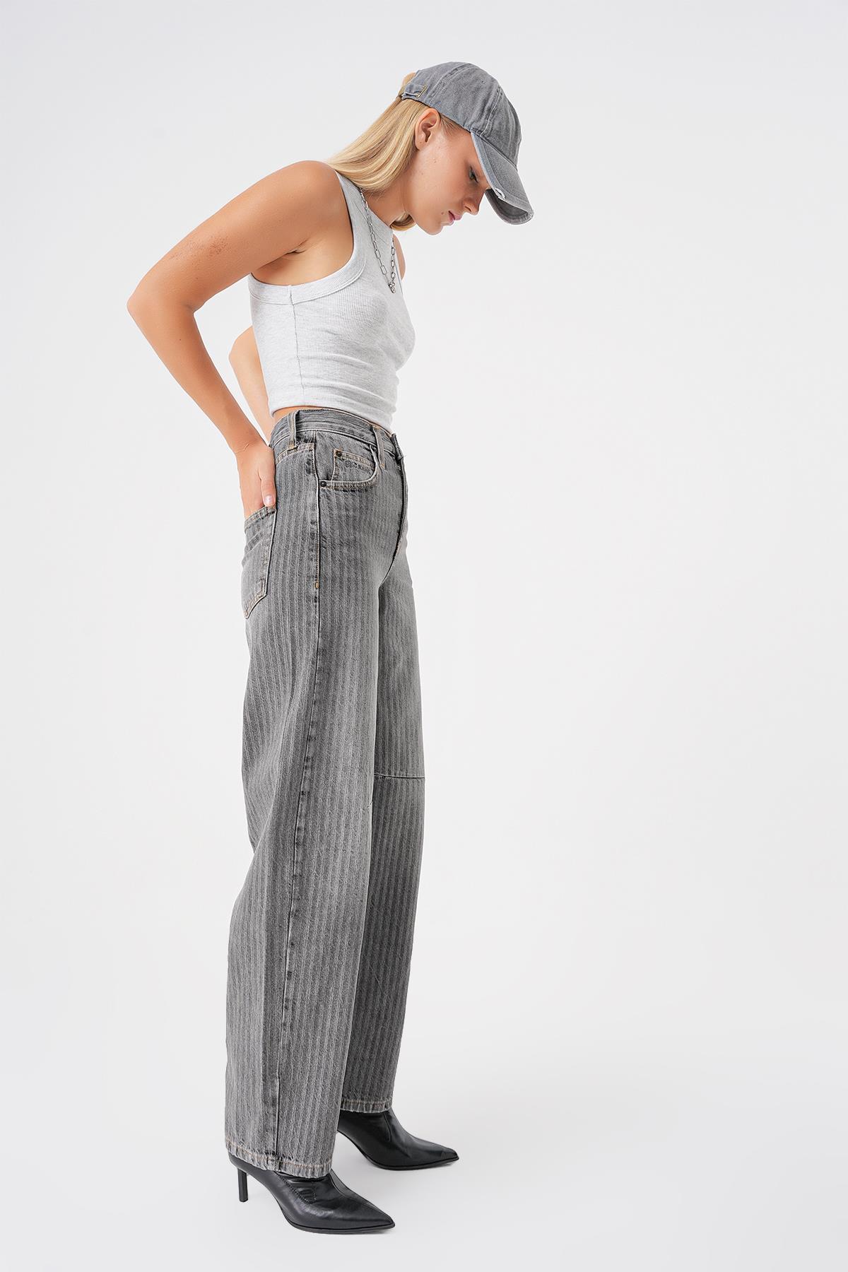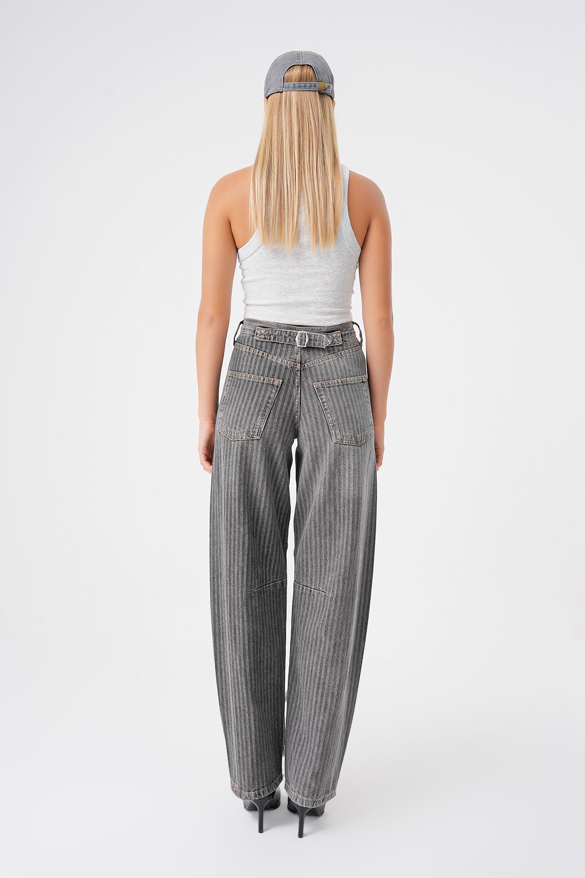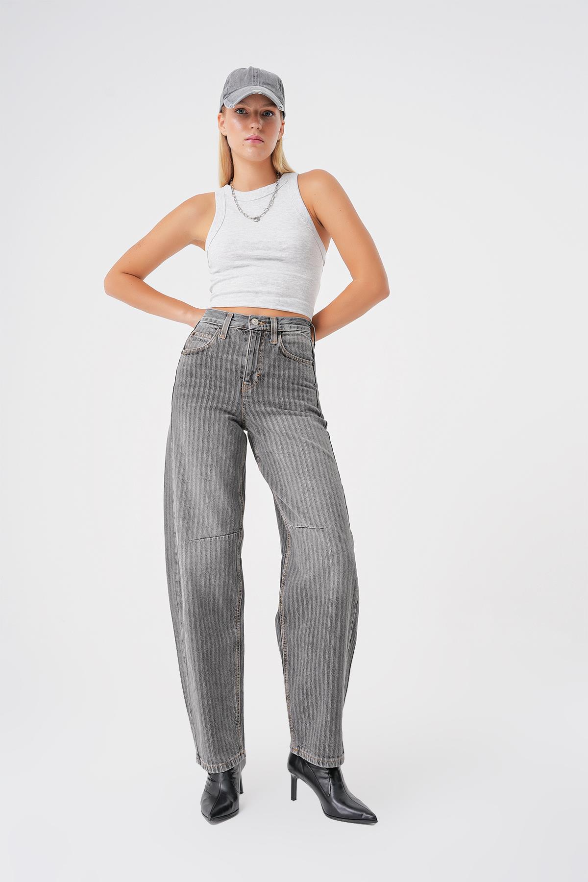 Ayarlanabilir Tokali Yuksek Bel Baggy Skater Jean