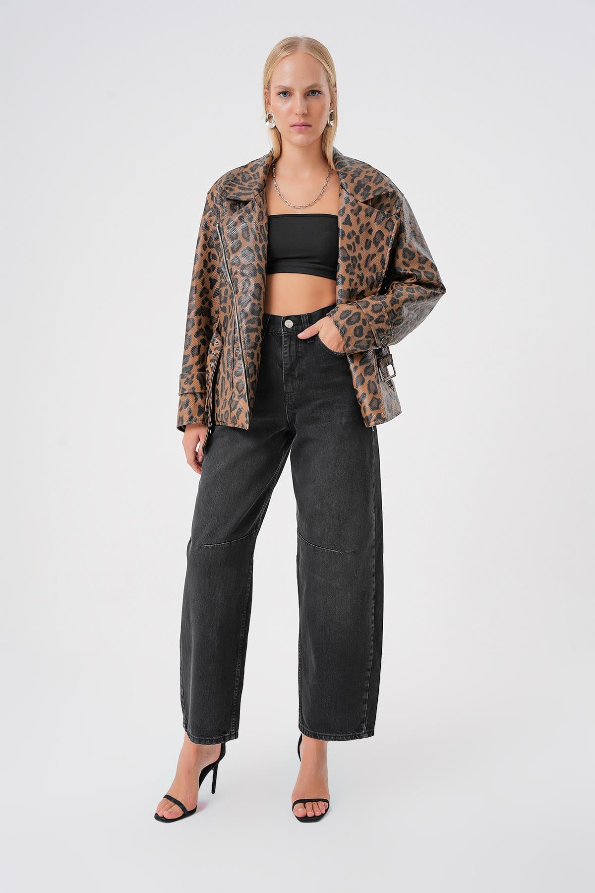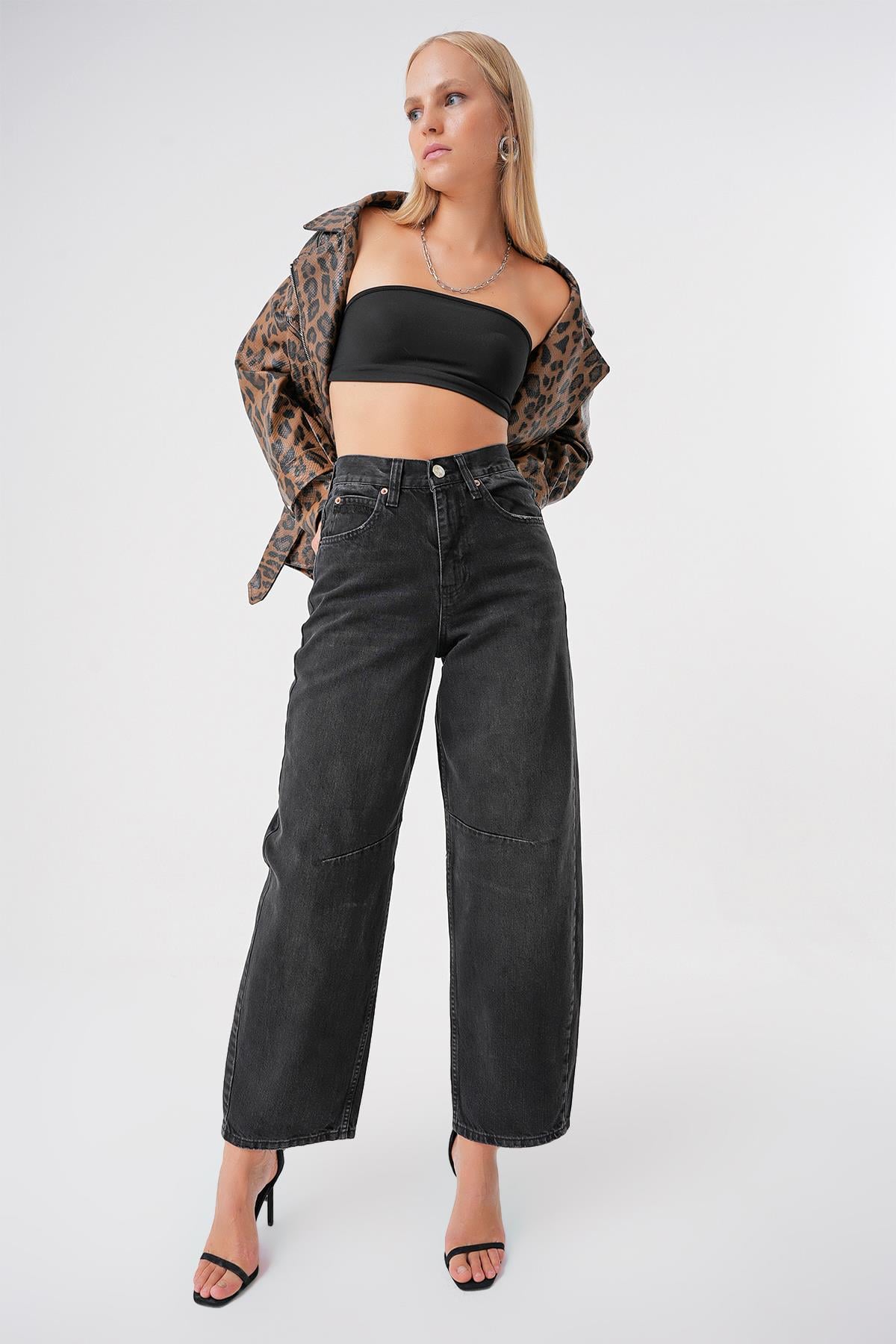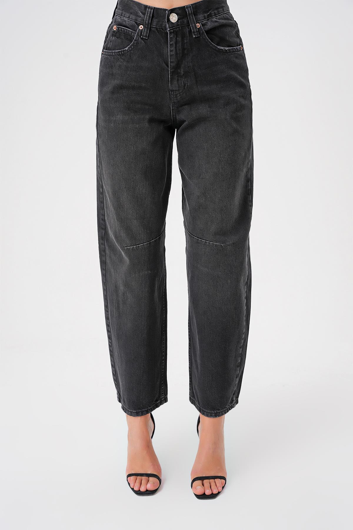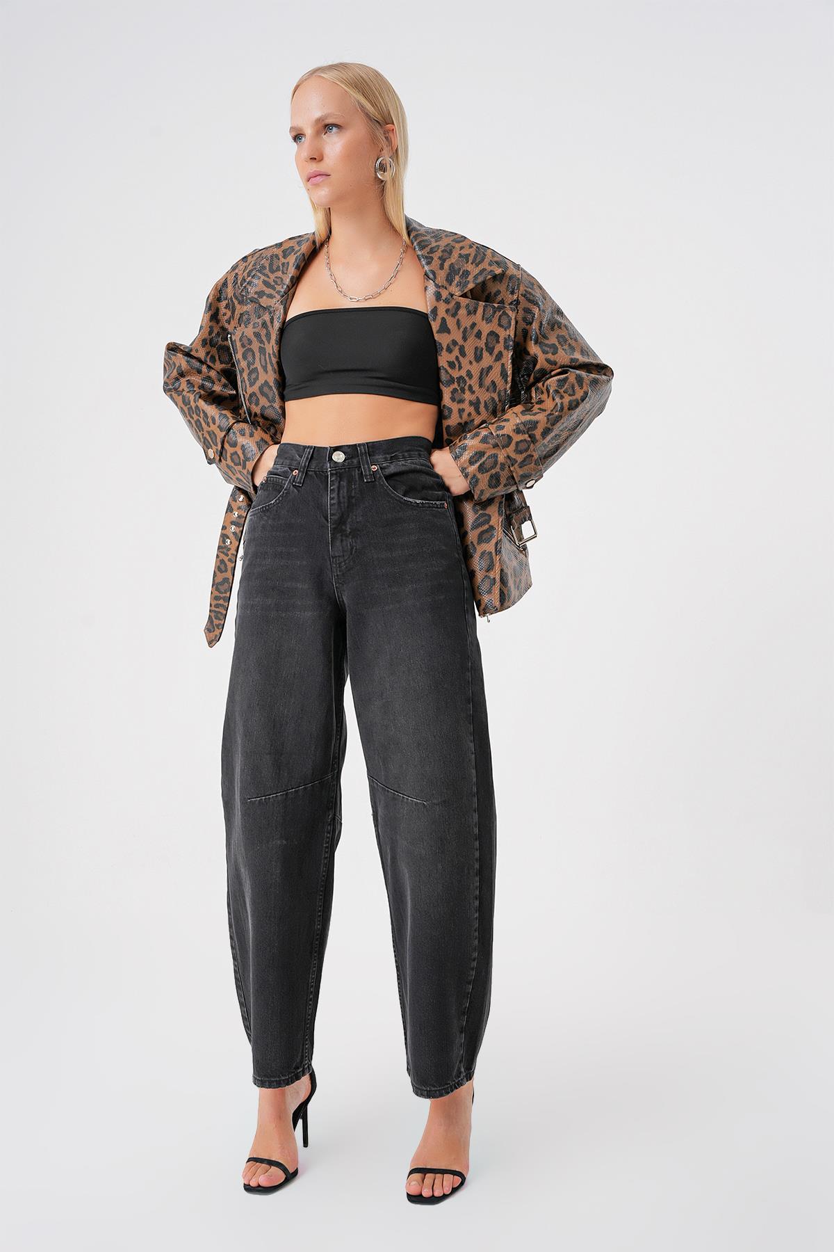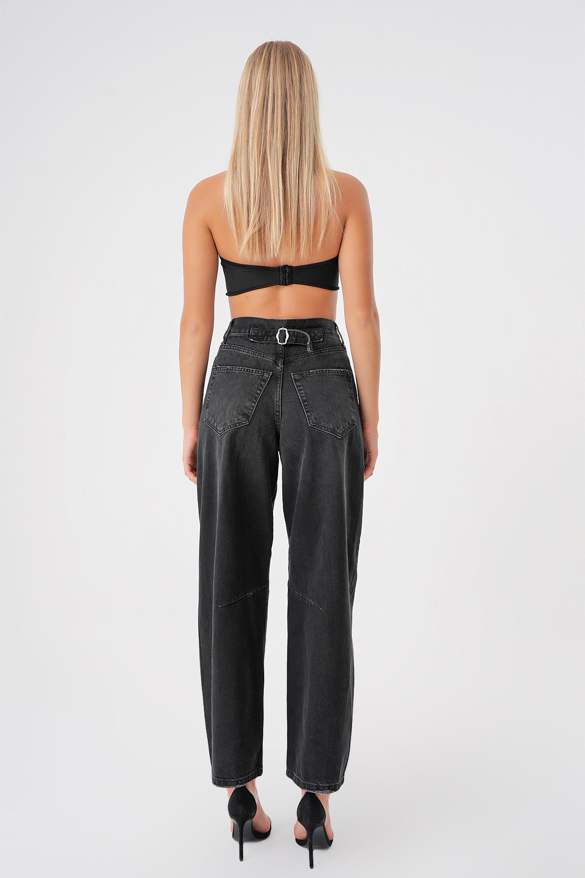 Ayarlanabilir Tokali Yuksek Bel Baggy Skater Jean