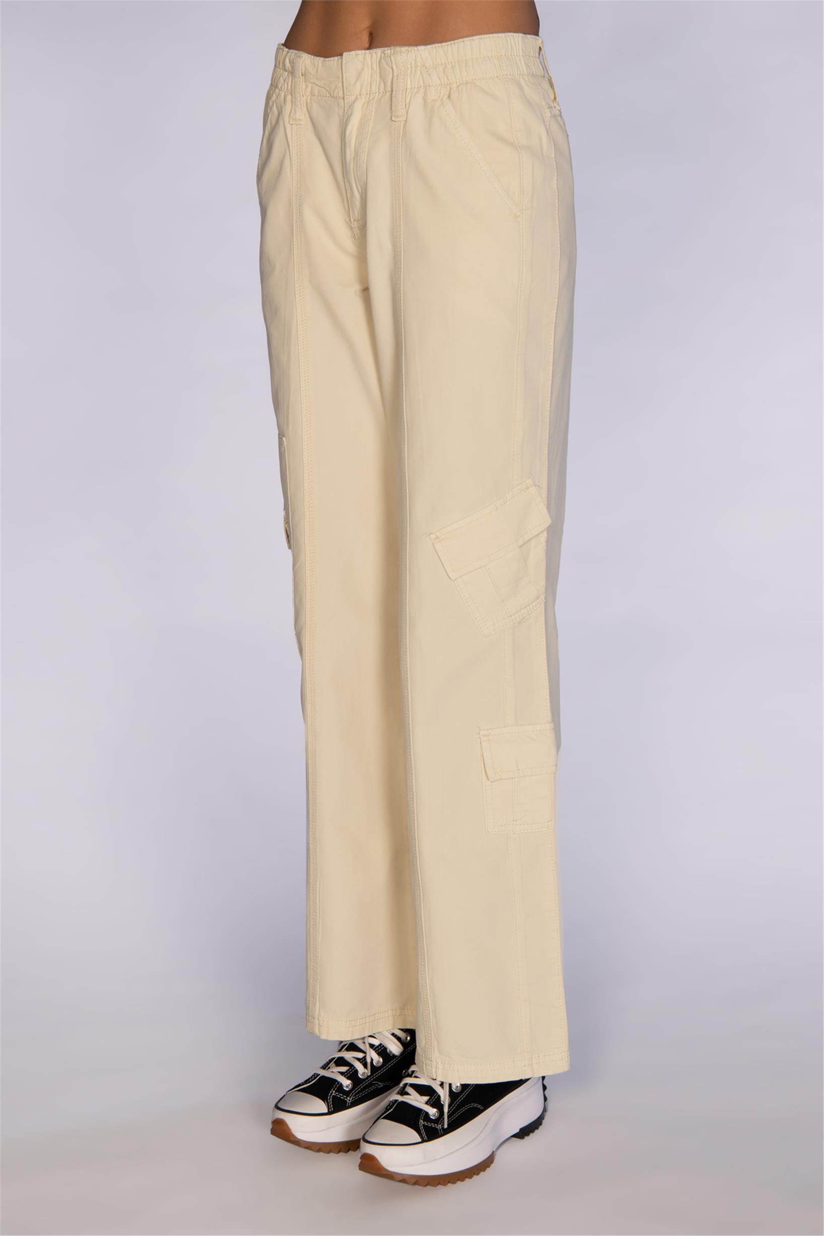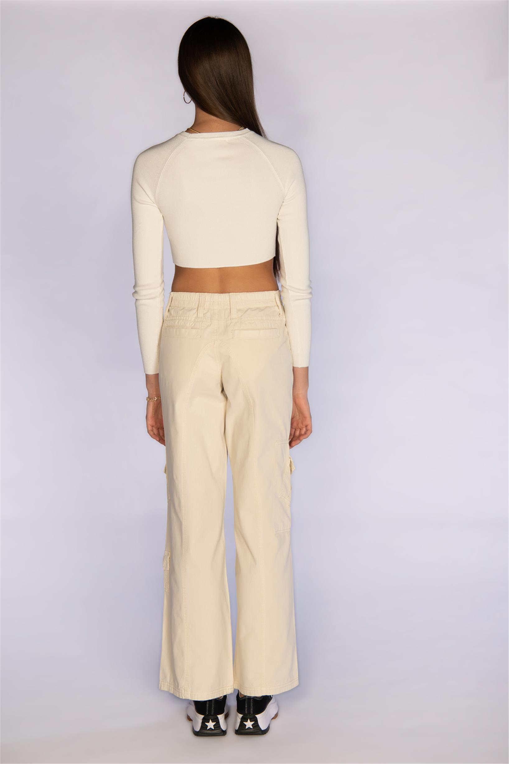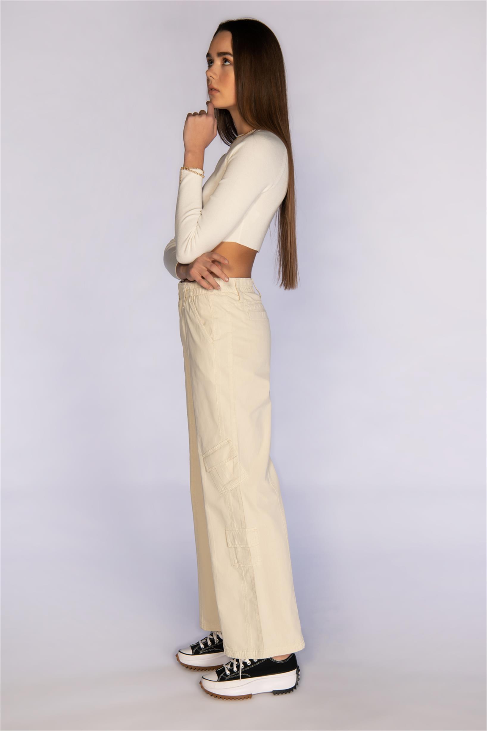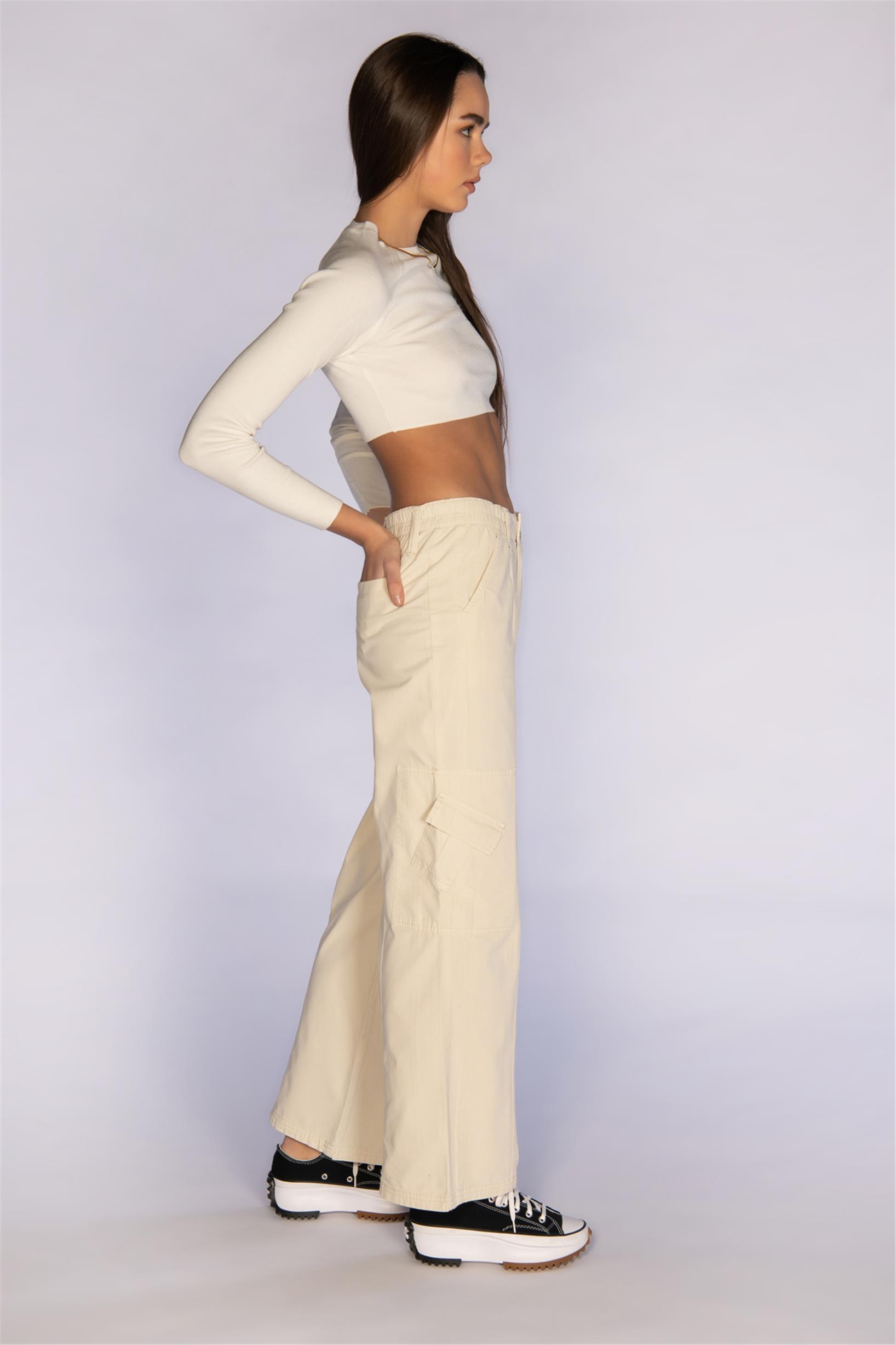 Bej Normal Bel Wide Leg Kargo Pantolon