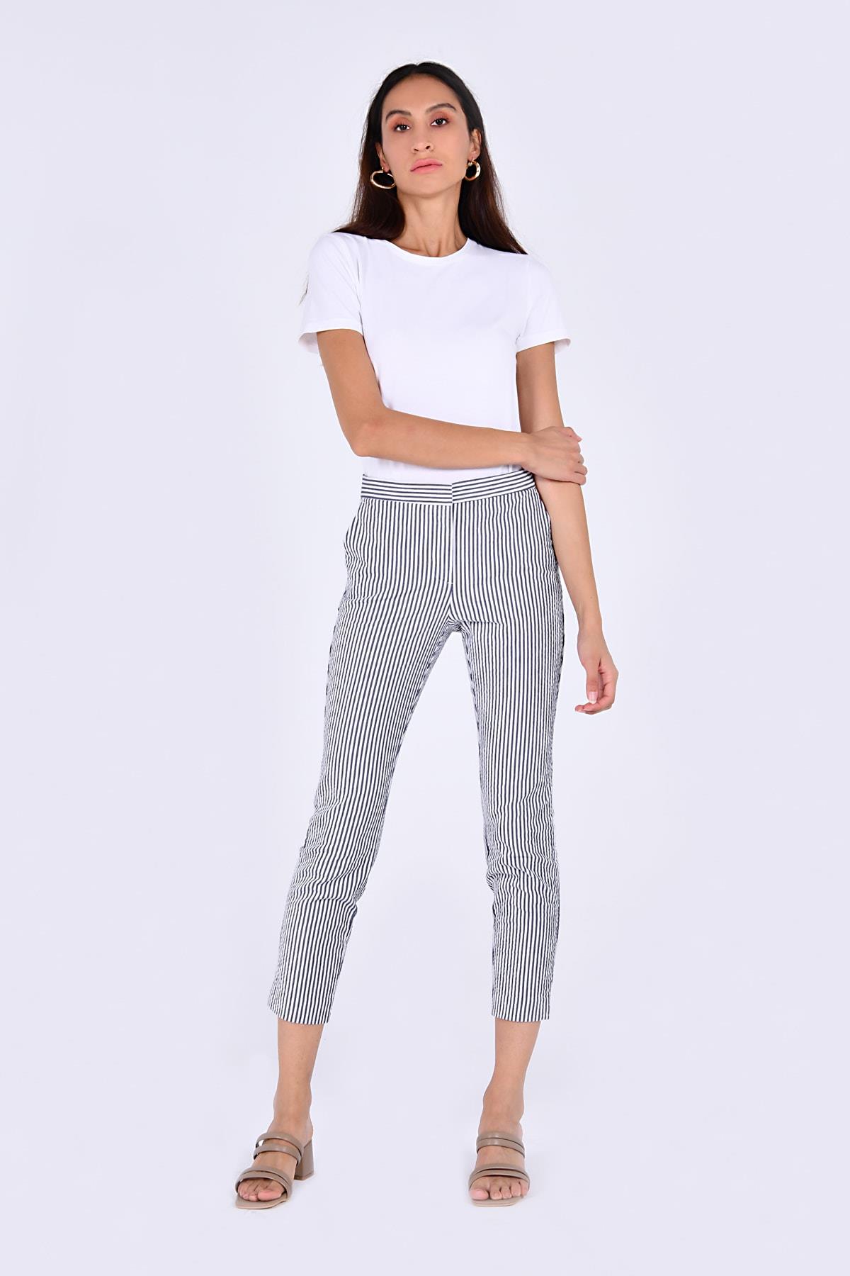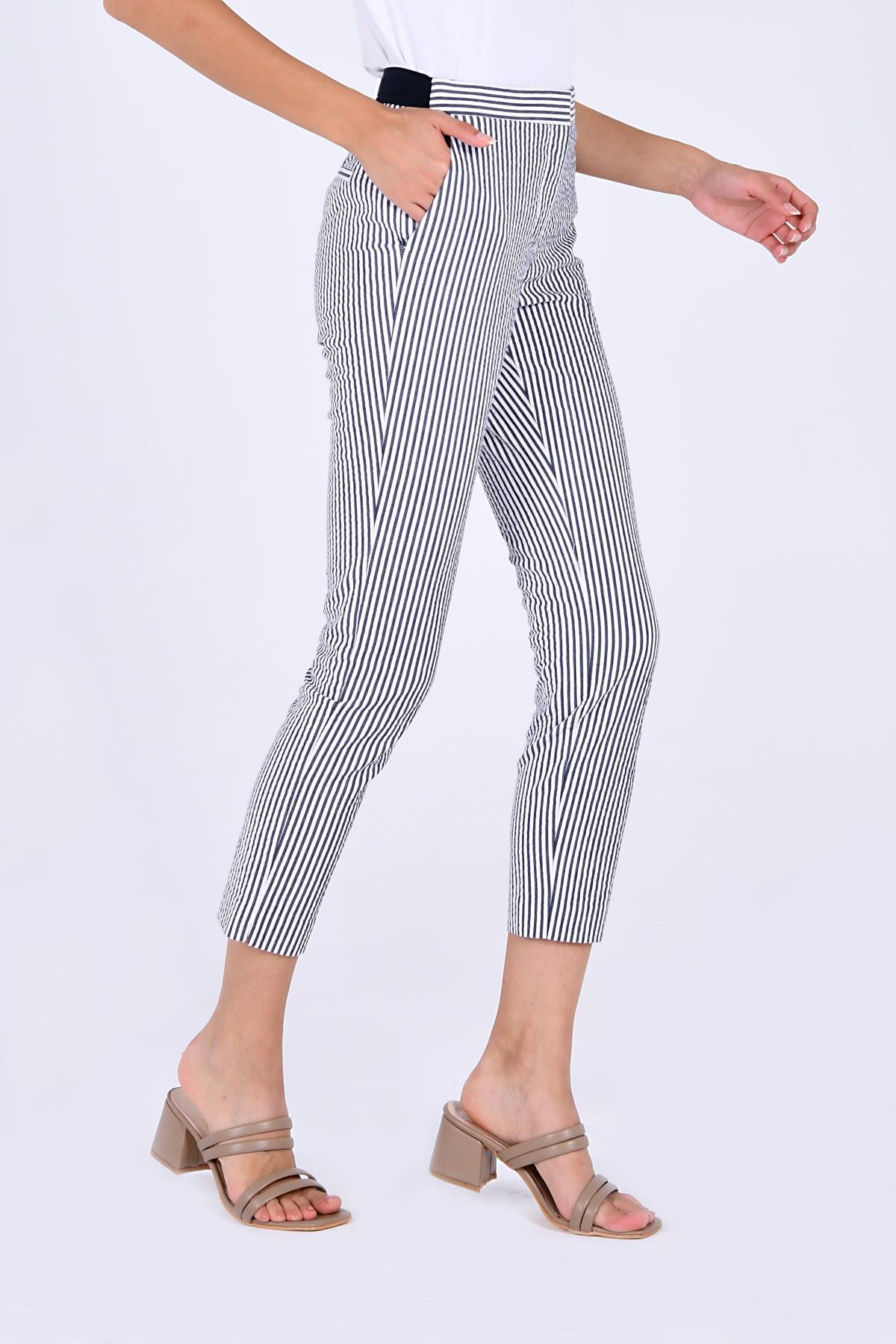 BEL LACİVERT LASTİKLİ LACİVERT BEYAZ ÇİZGİLİ PANTOLON