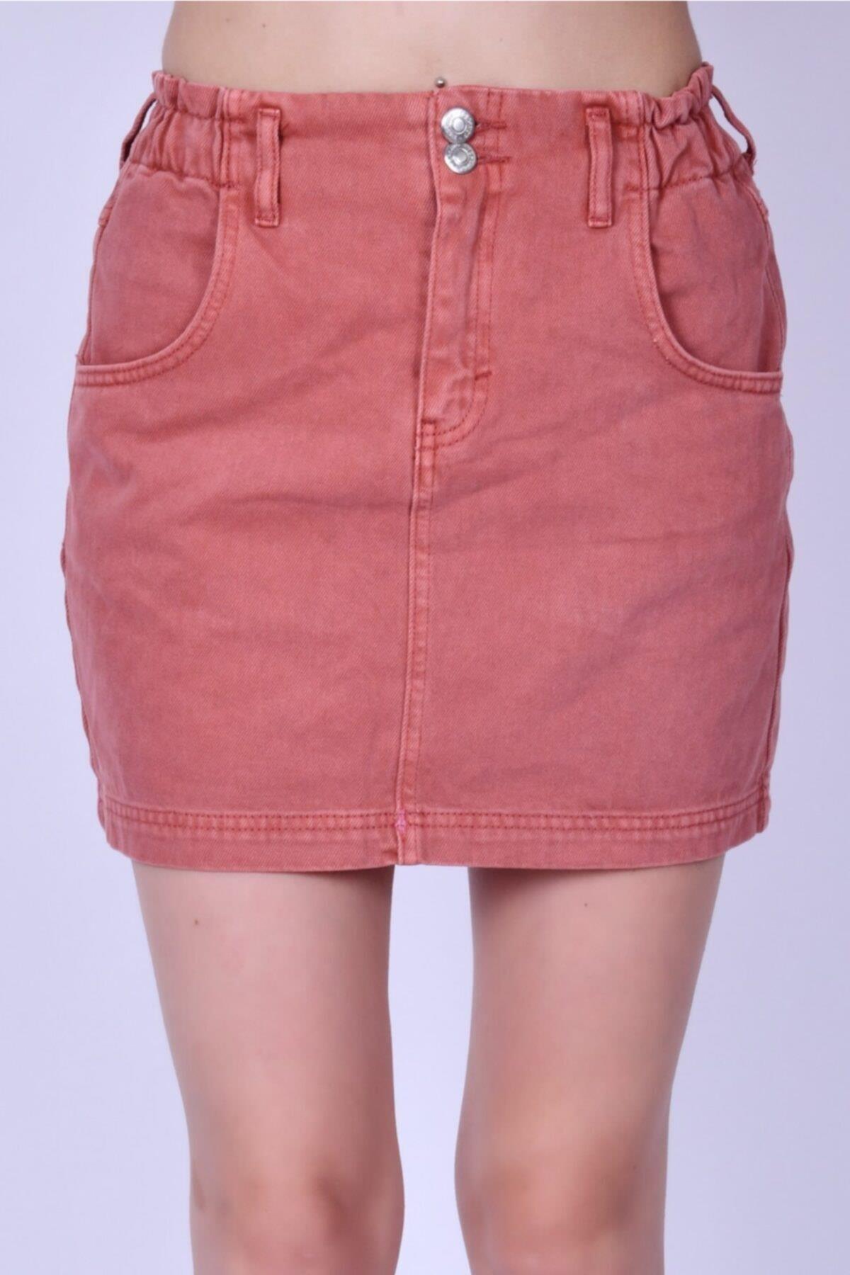 BEL LASTİKLİ ÖN 2 DÜĞMELİ GÜL KURUSU ETEK
