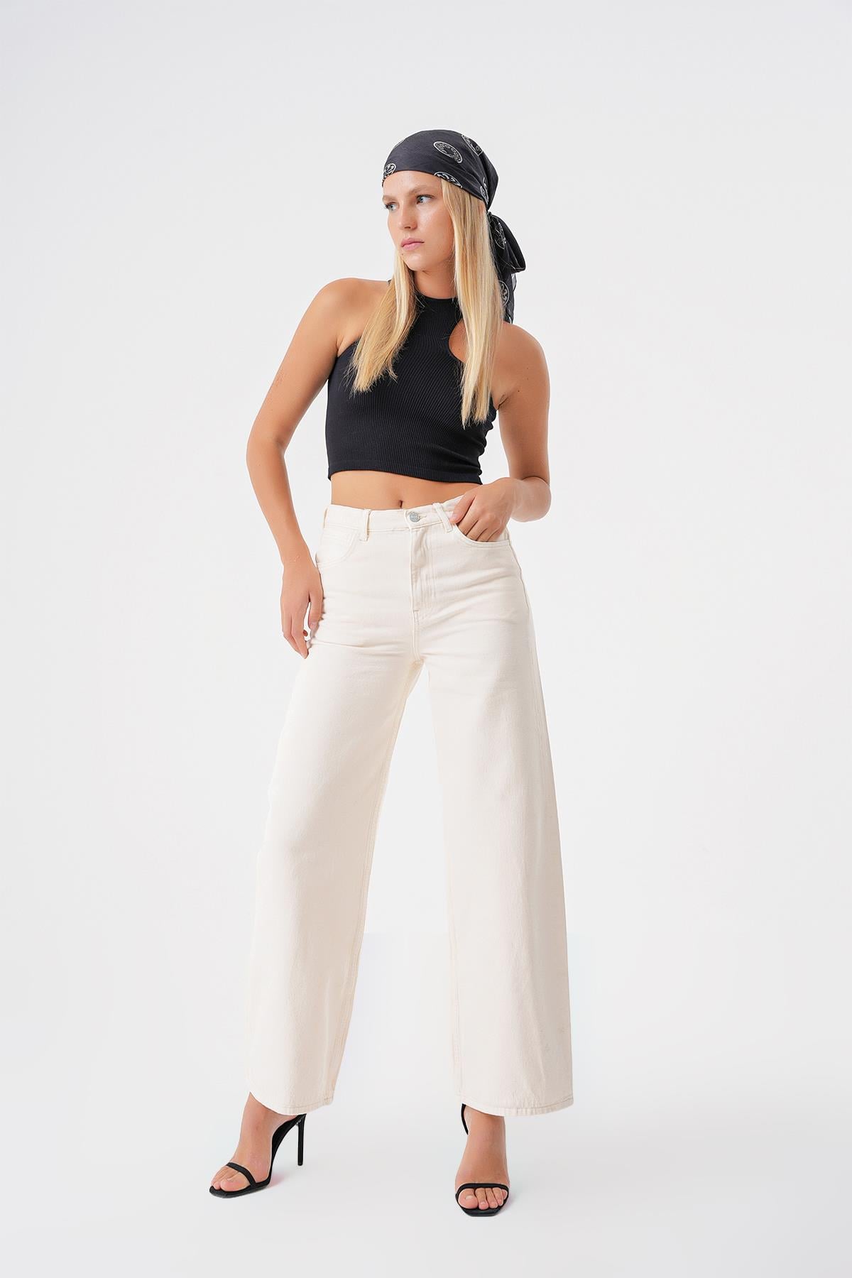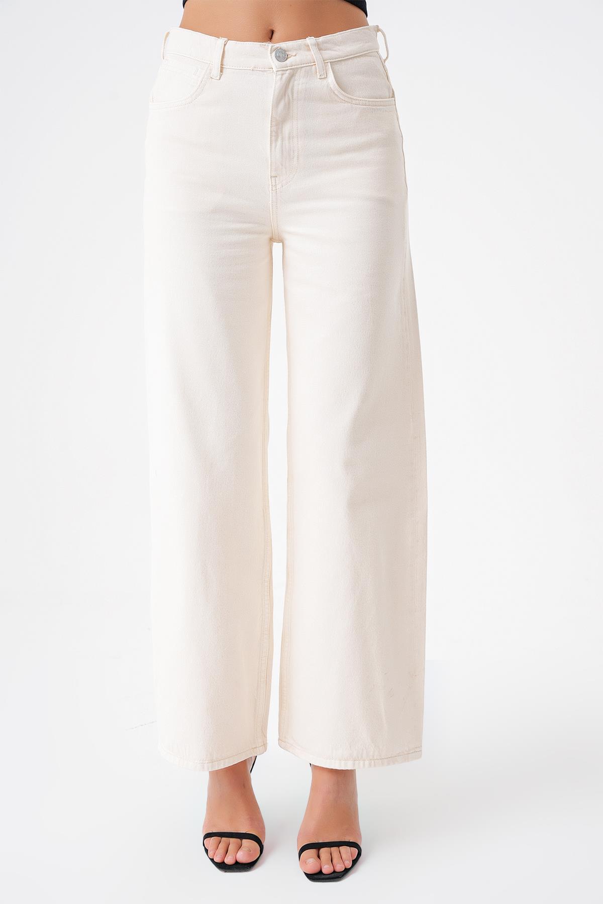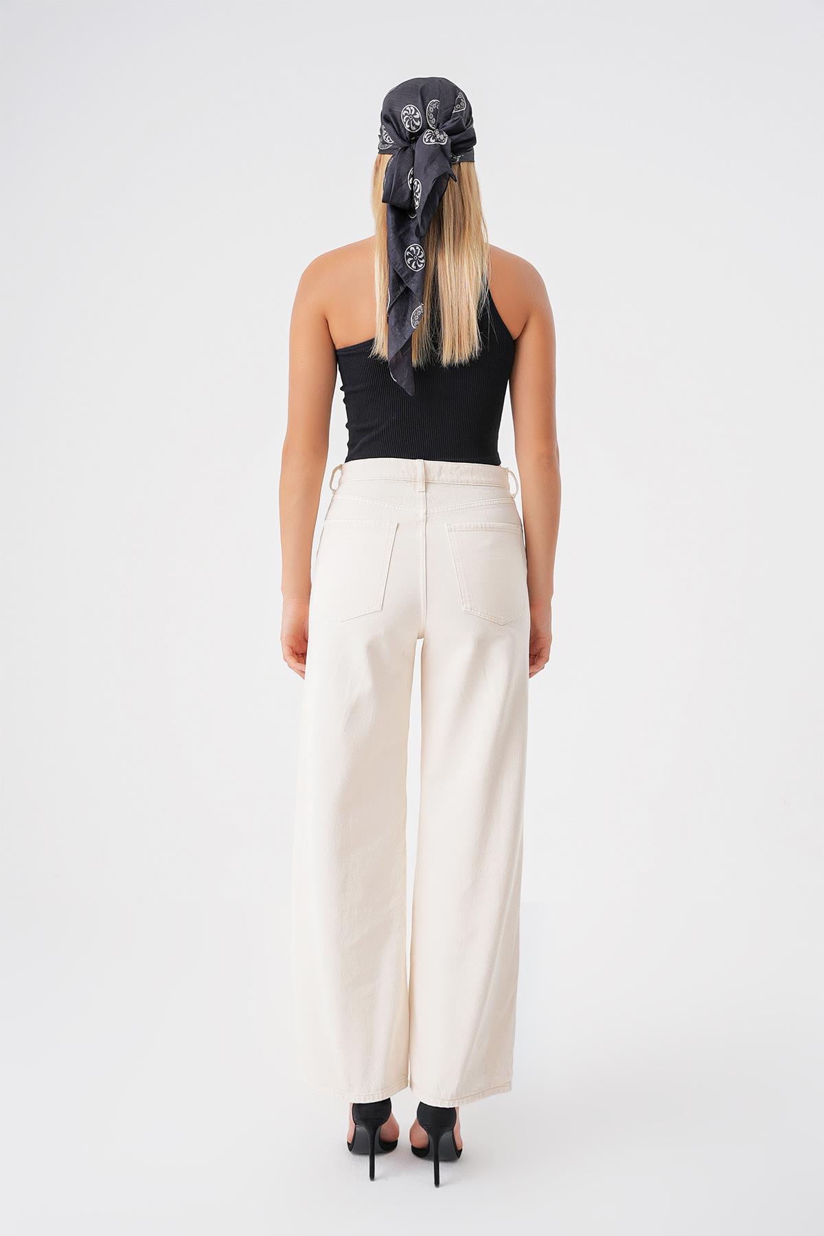 Beyaz Yuksek Bel Ekstra Wide Leg Jean