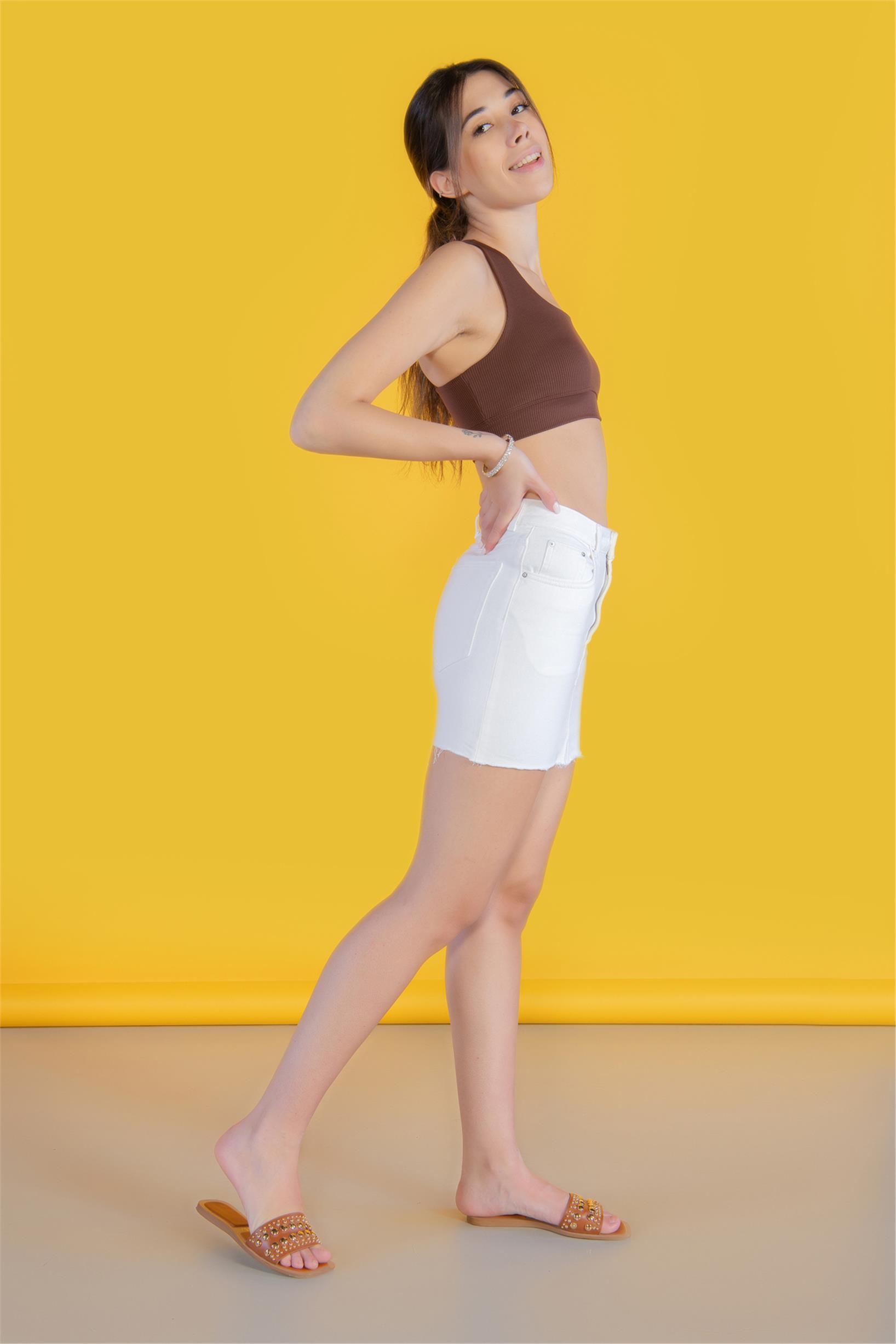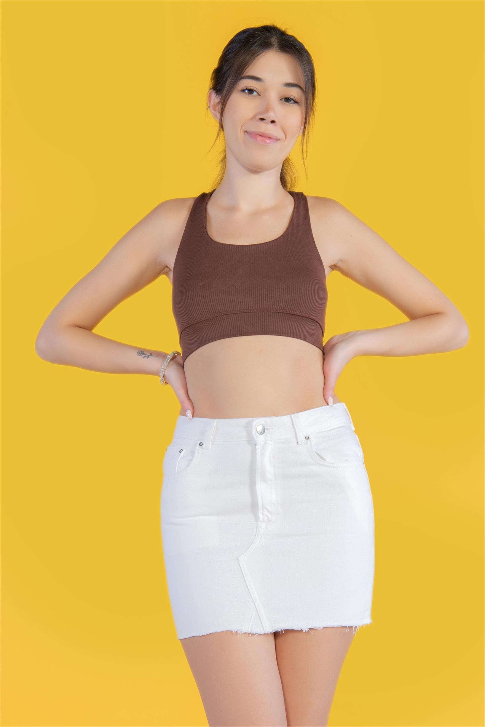 Beyaz Yüksek Bel Mini Kot Etek