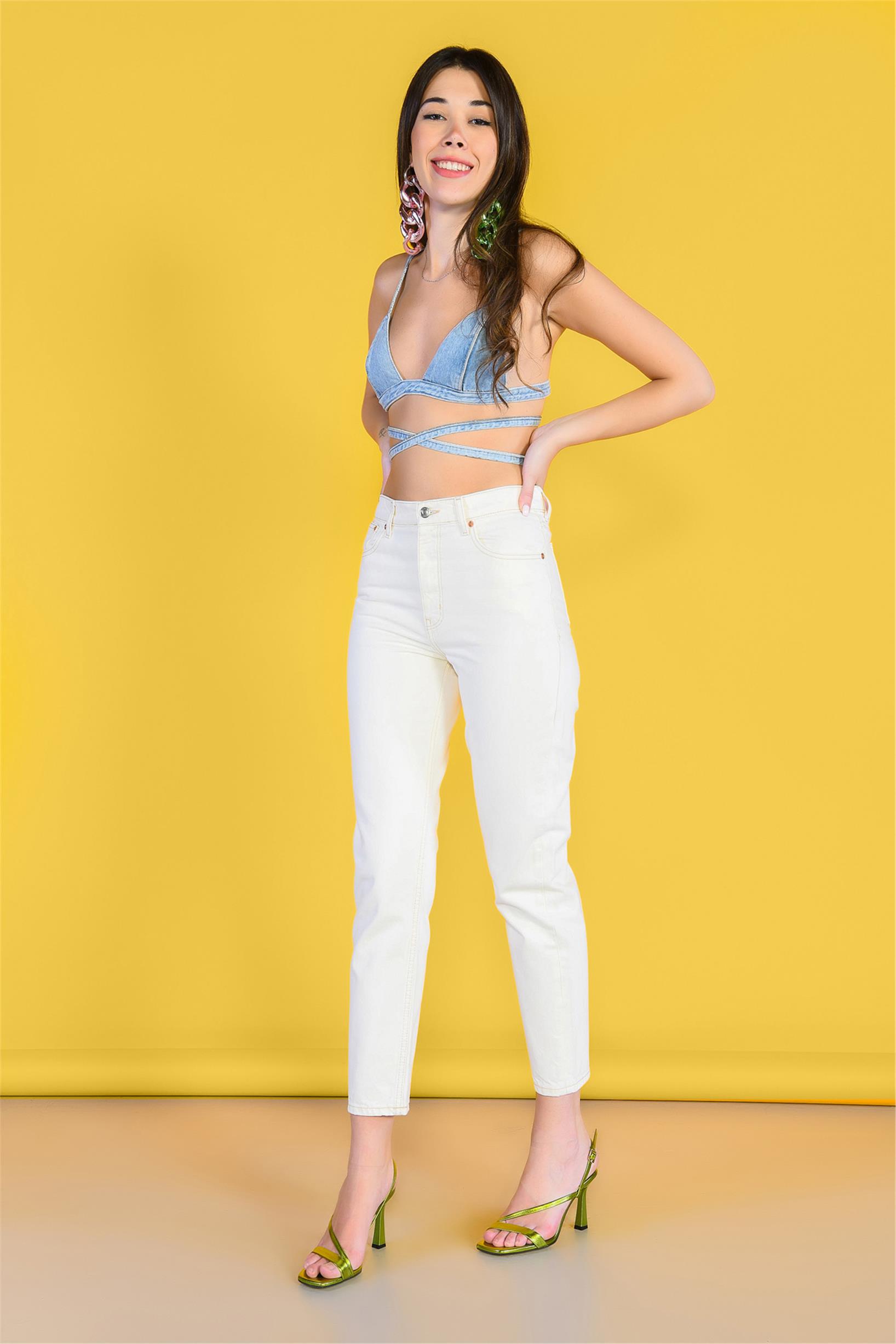 Beyaz Yüksek Bel Mom Jeans