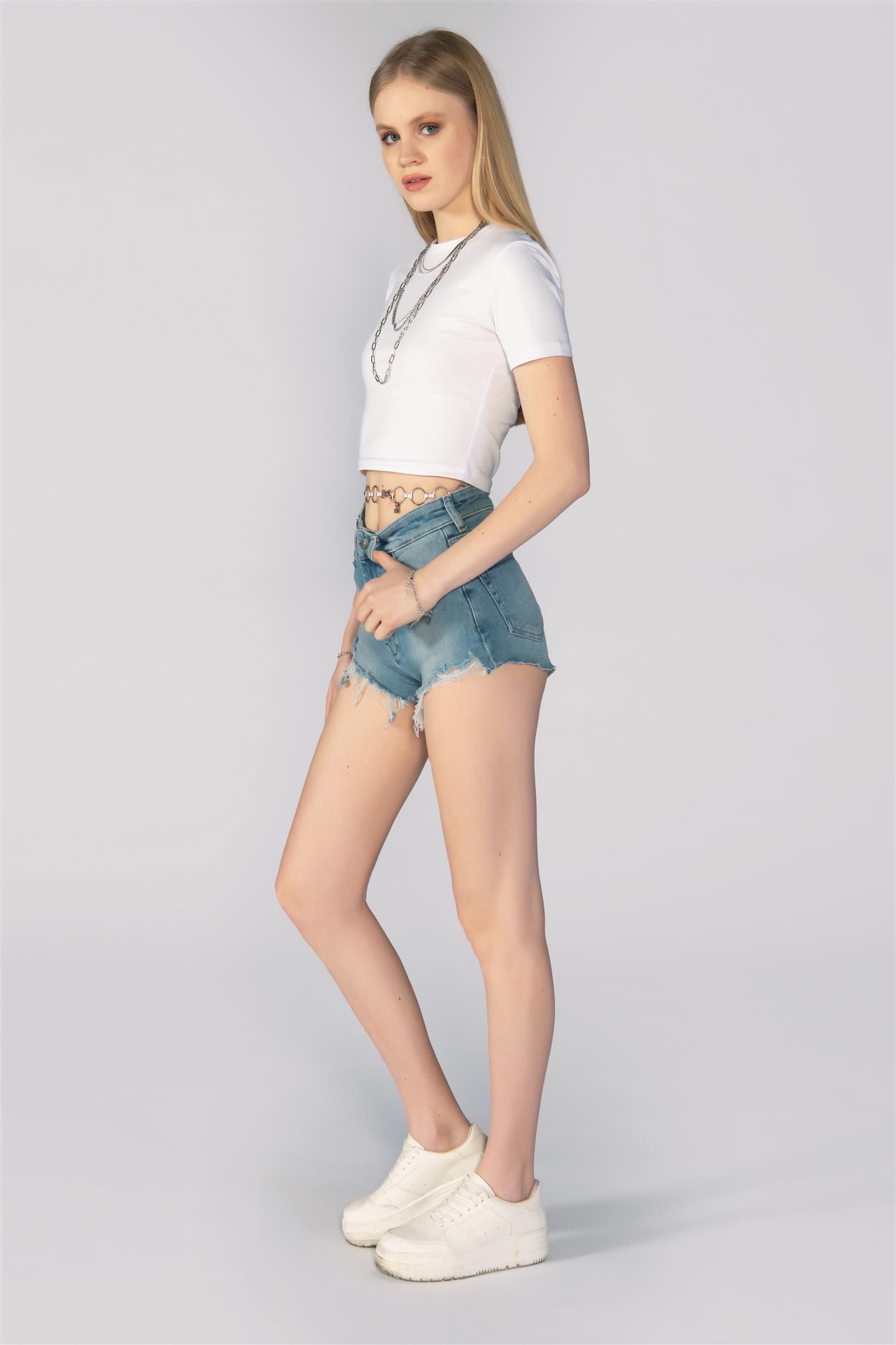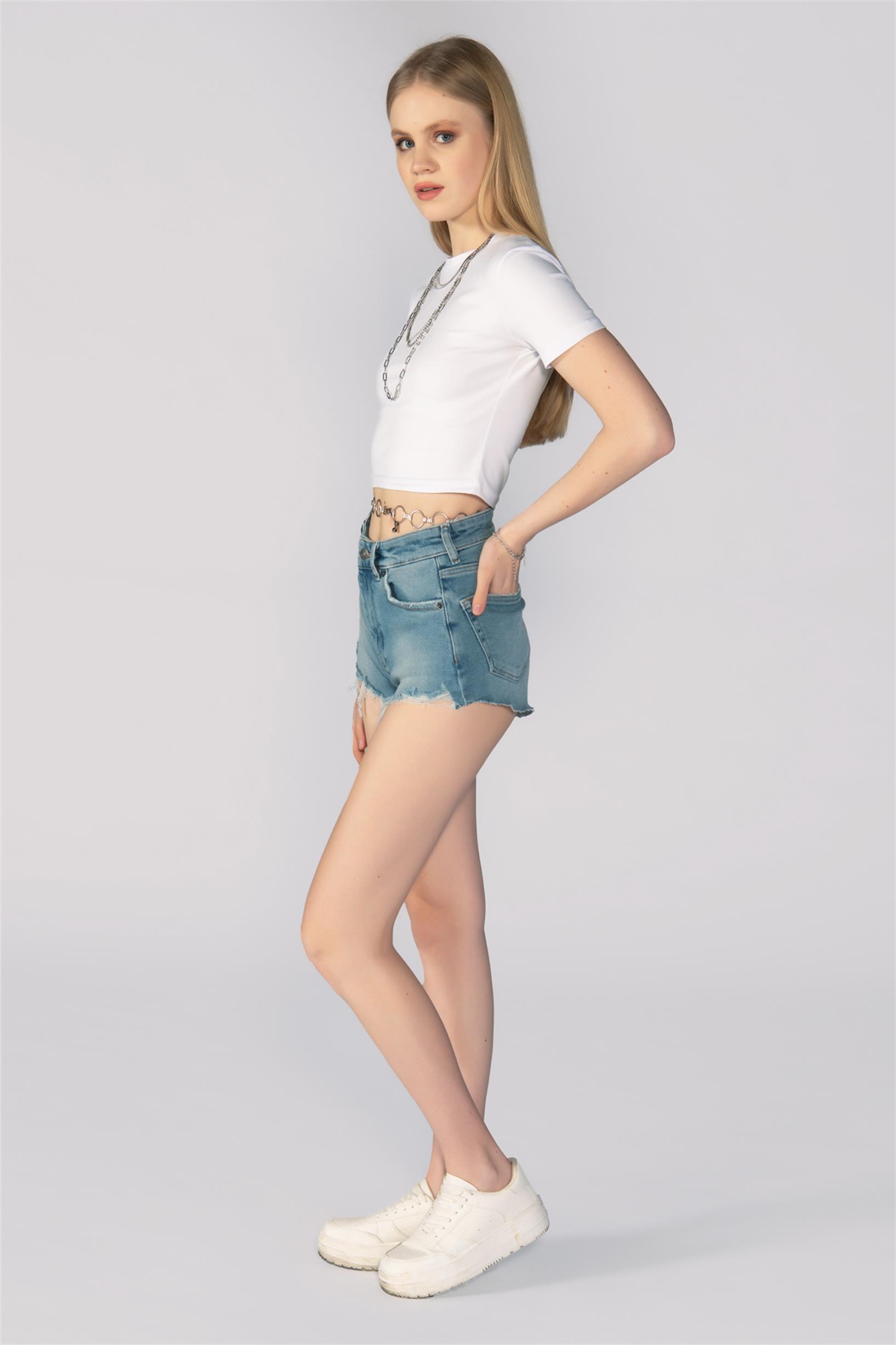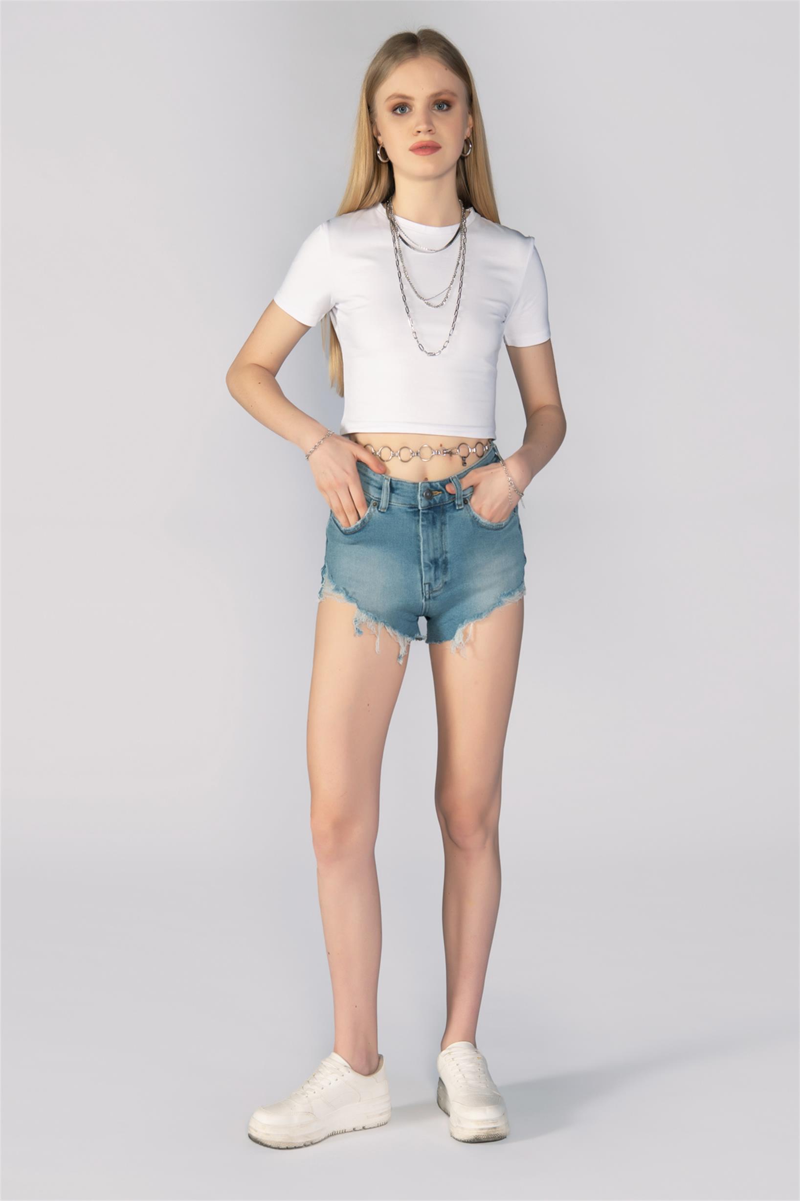 Bisiklet Yaka Kısa Kollu Crop T-Shirt