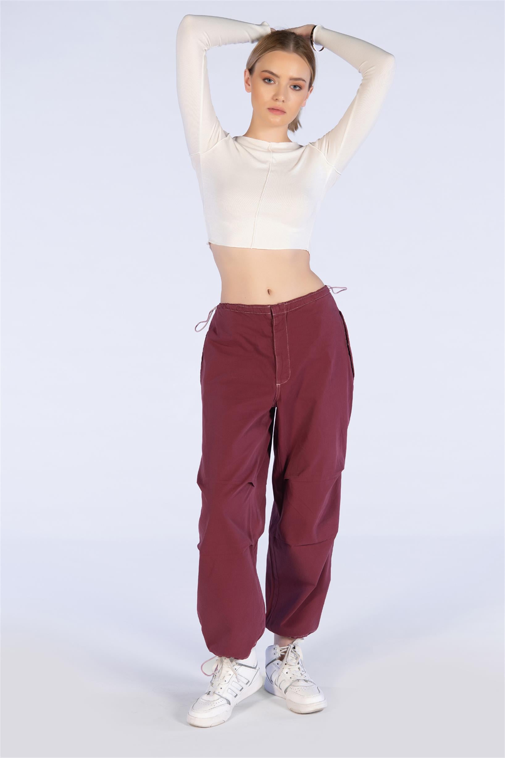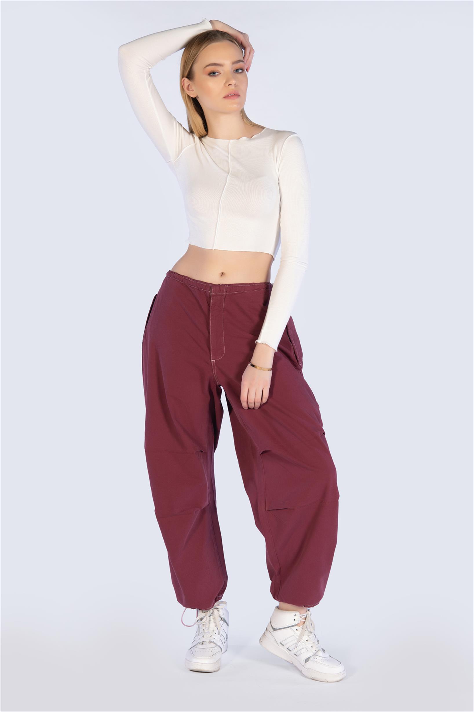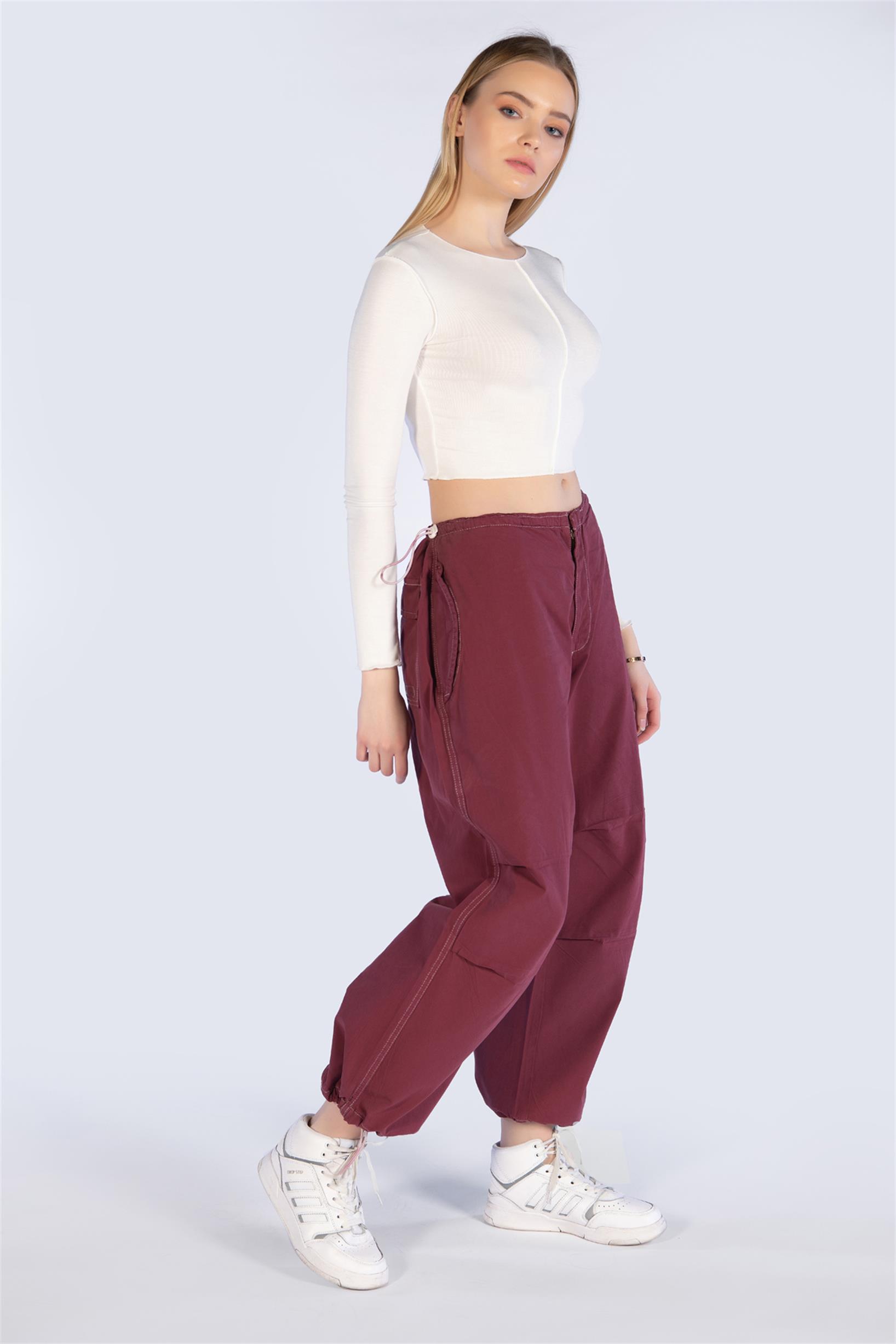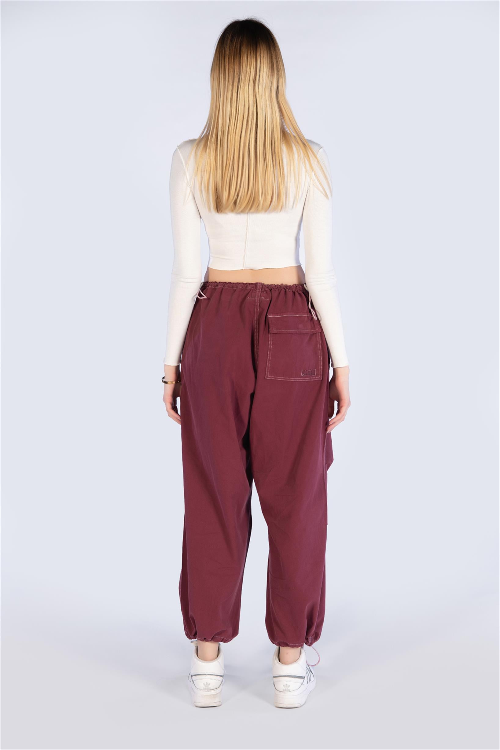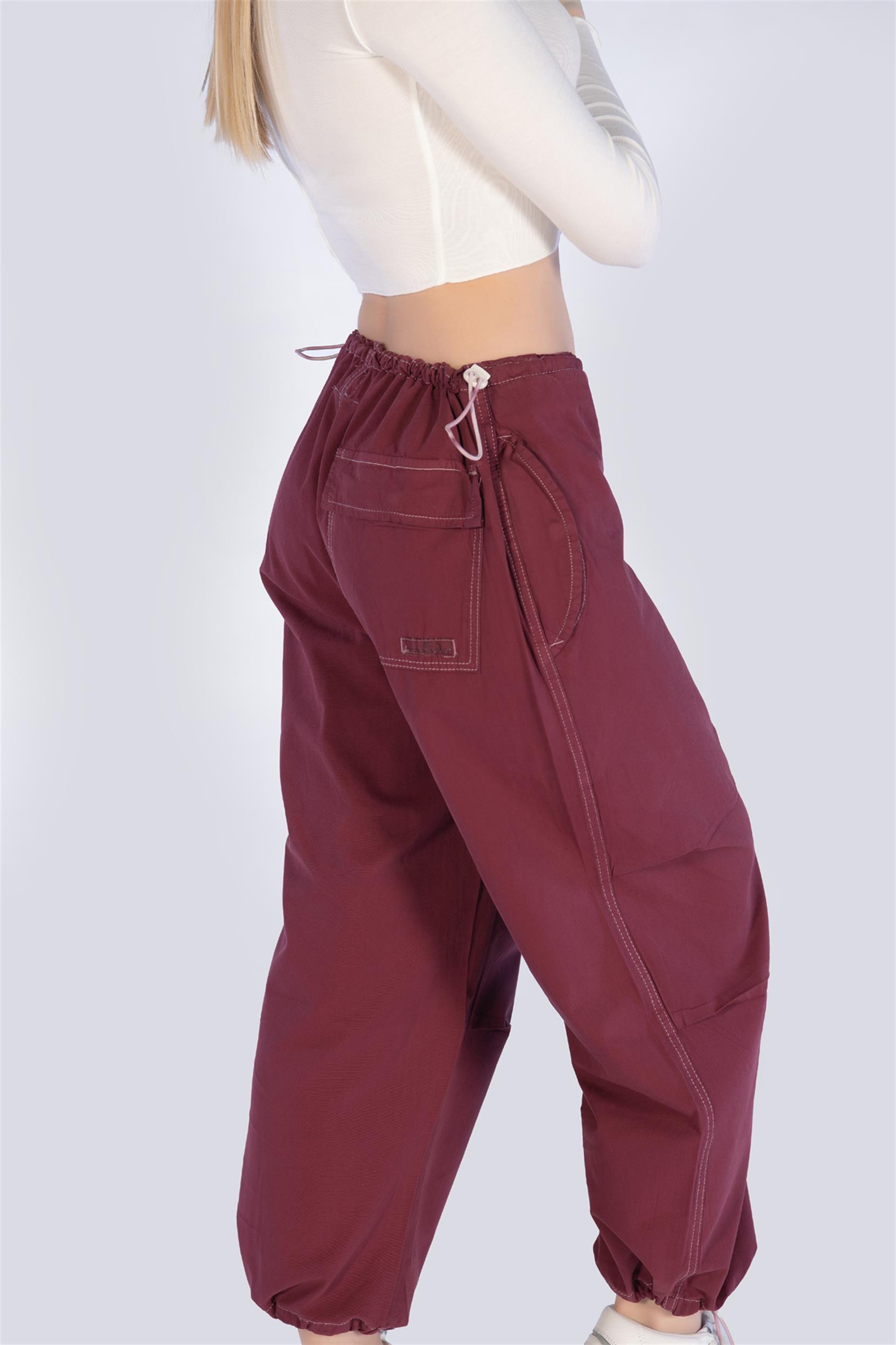 Bordo Stoperli Paraşüt KArgo Pantolon