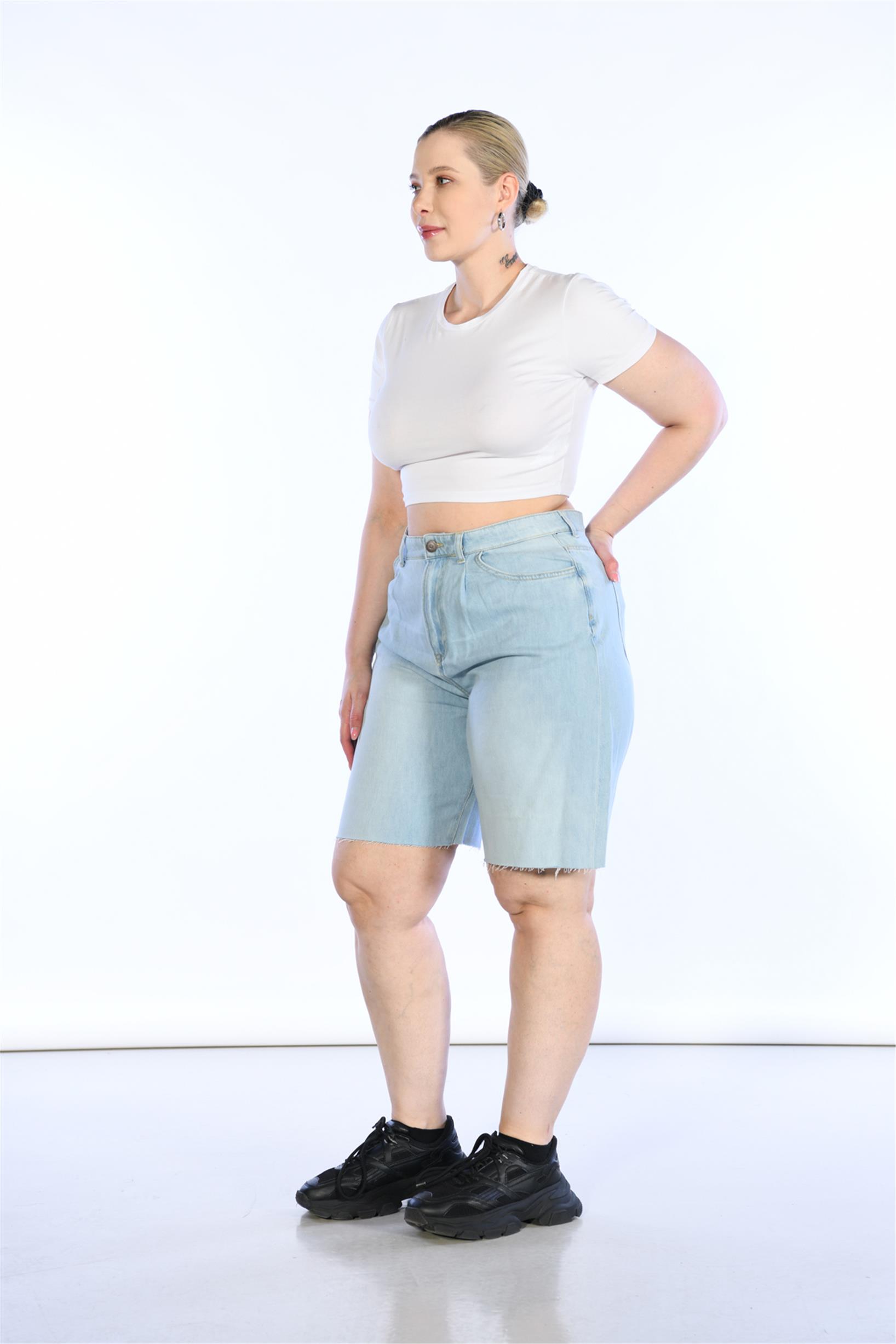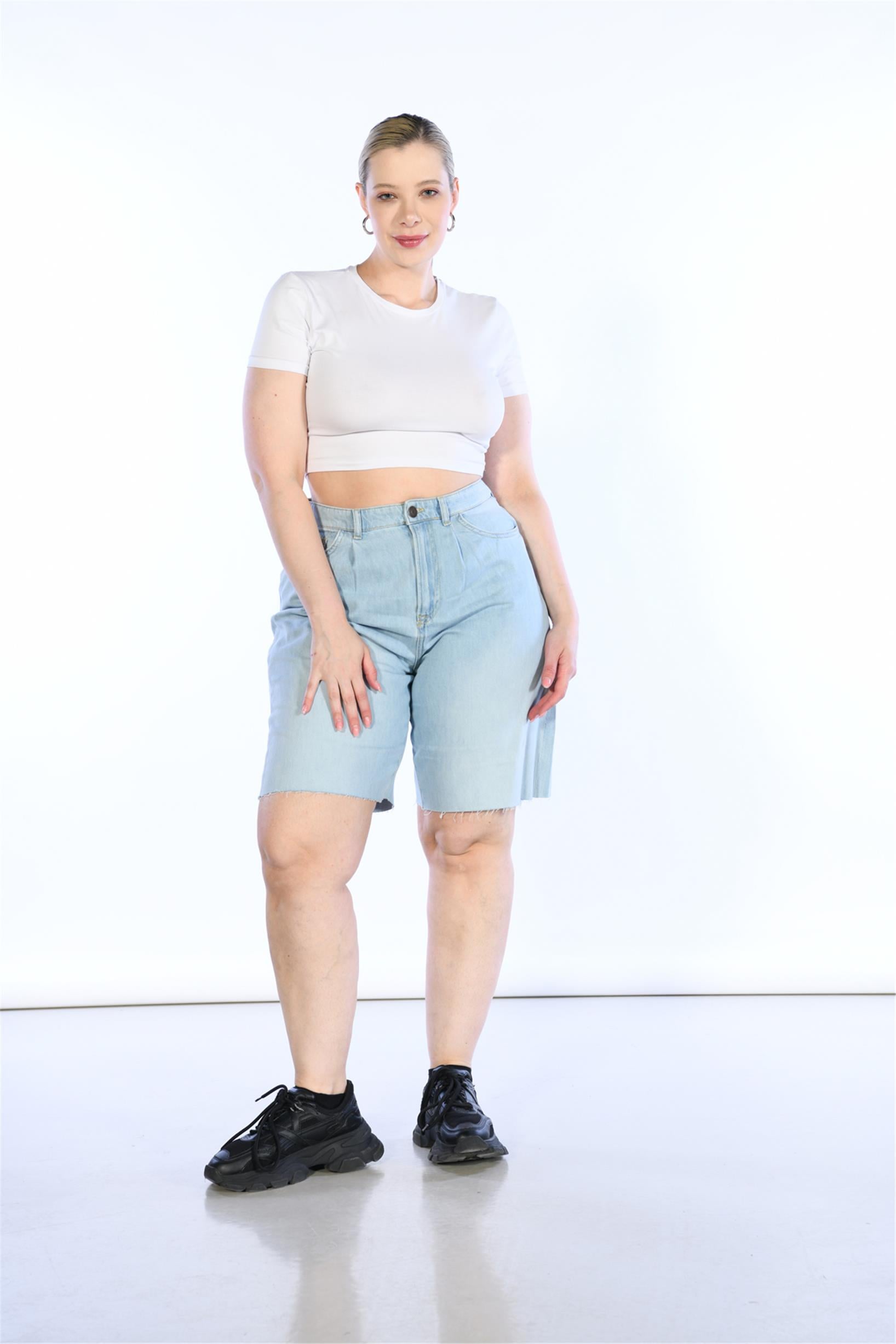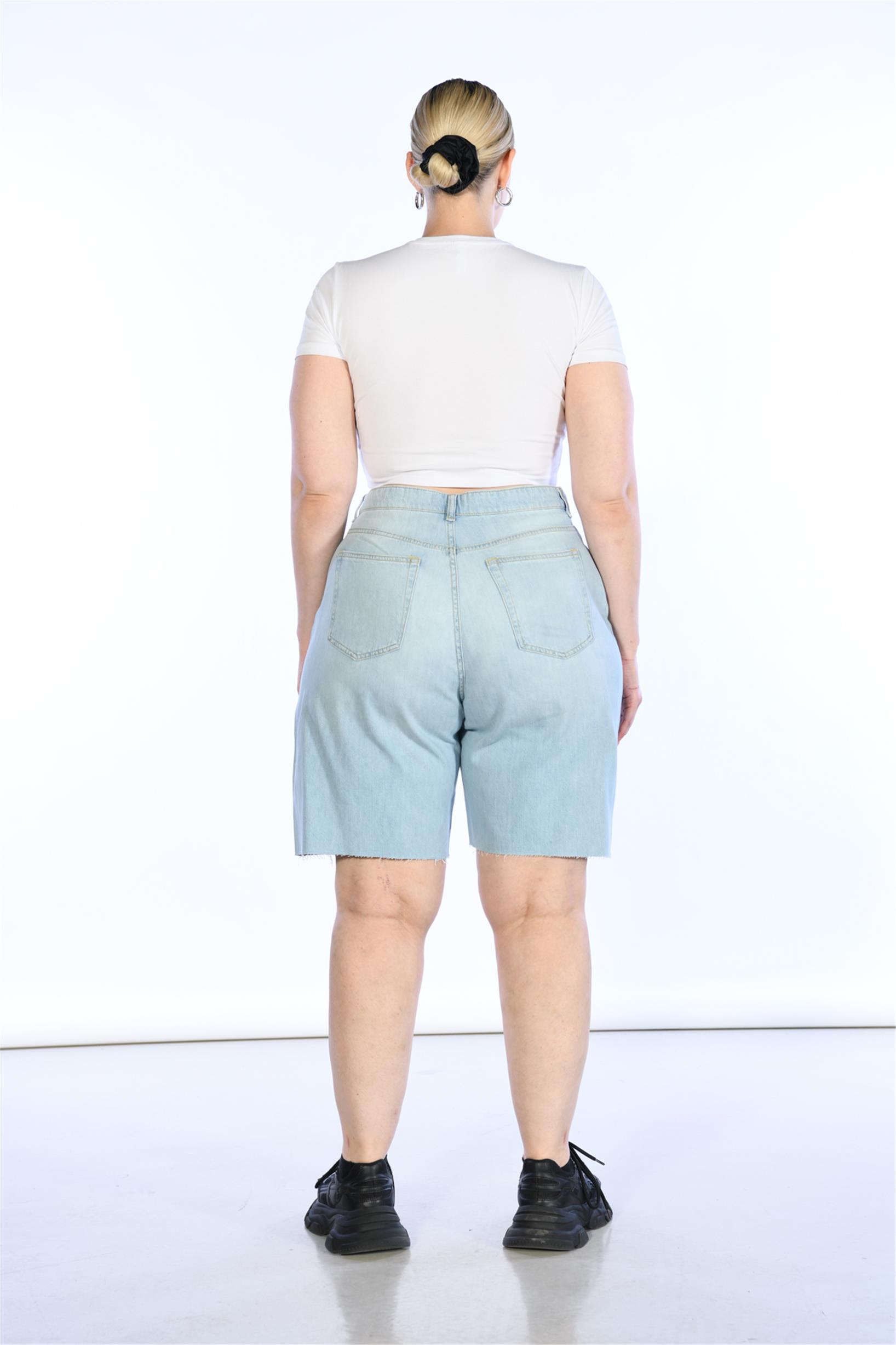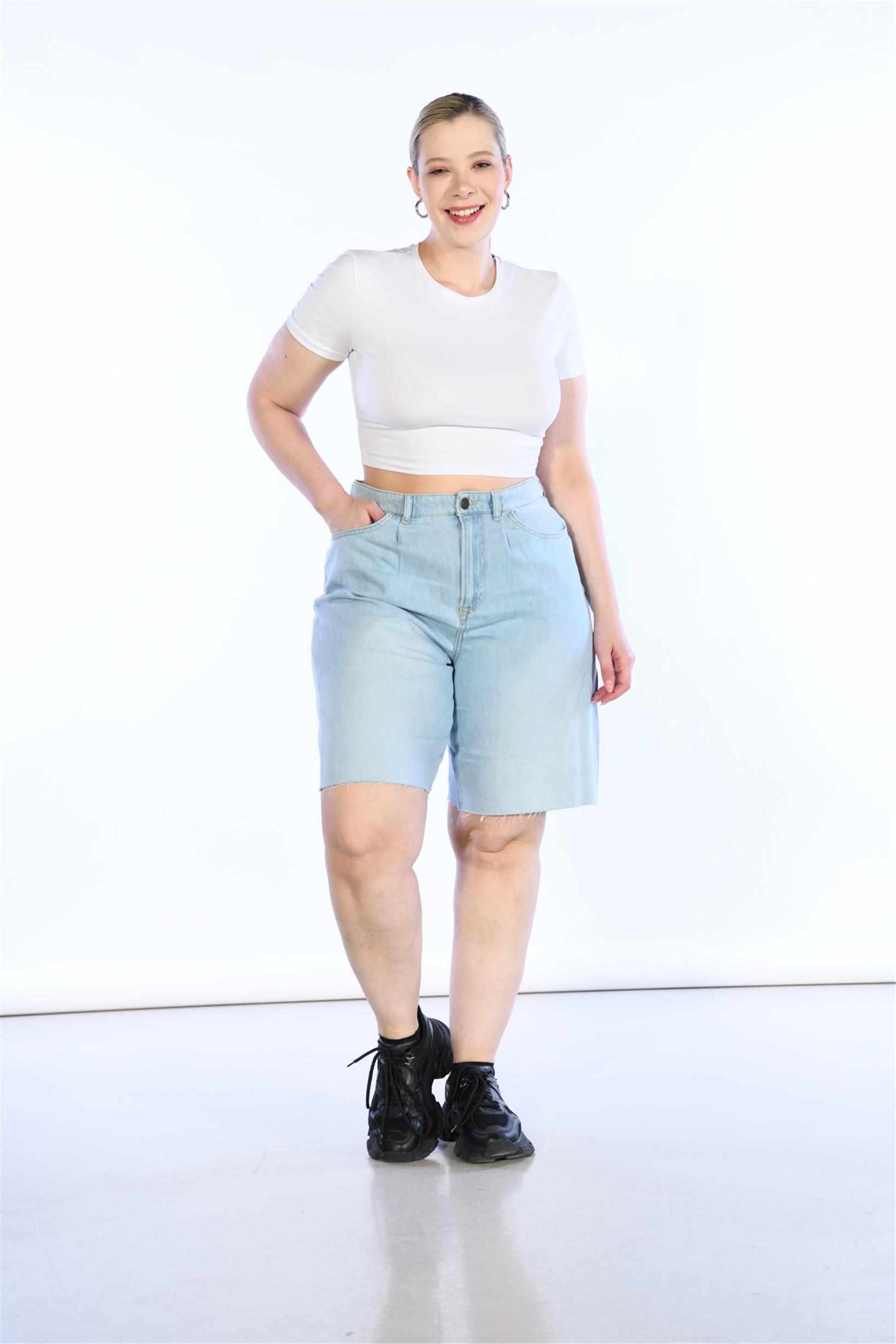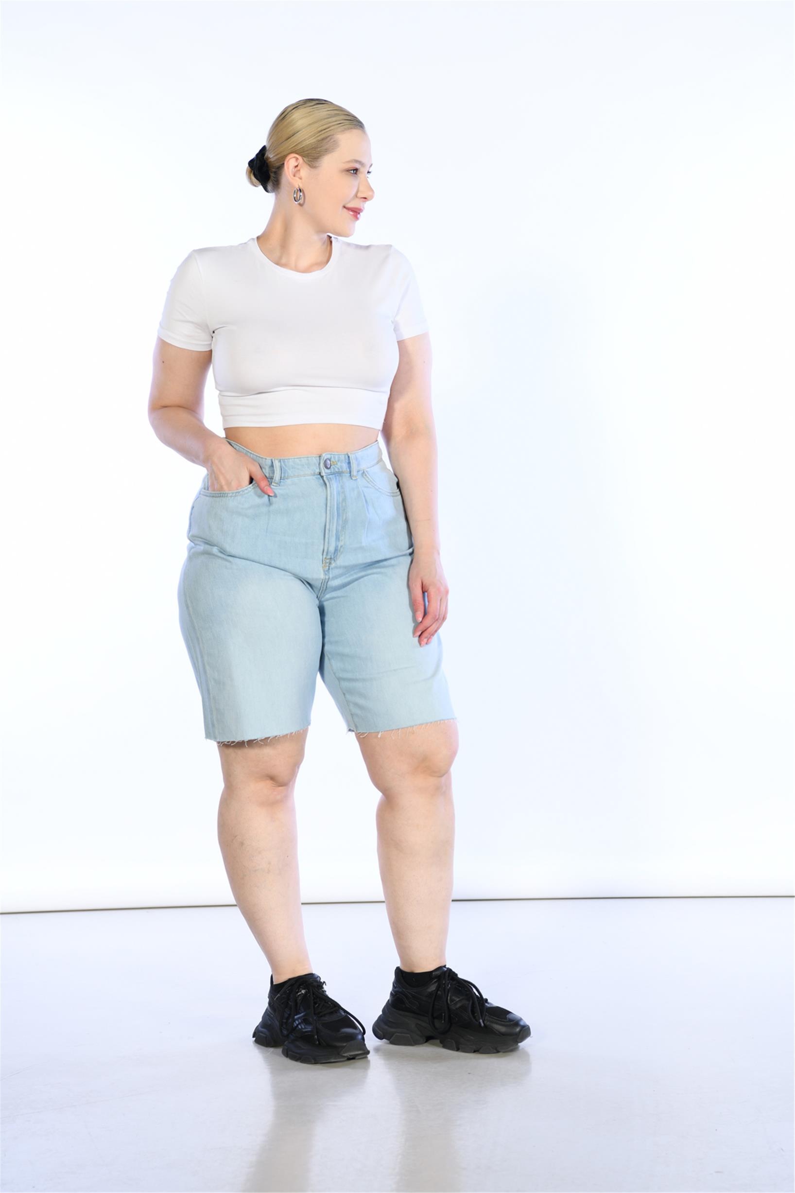 Büyük Beden Açık Mavi Yüksek Bel bermuda Kot Şort