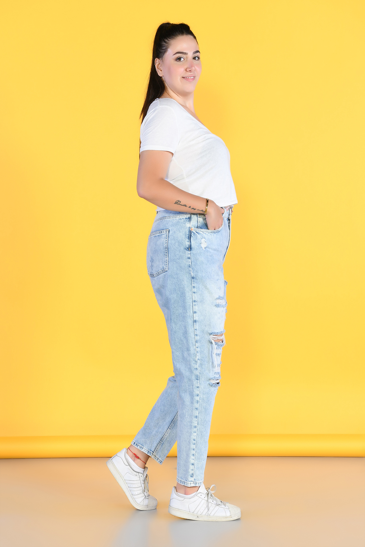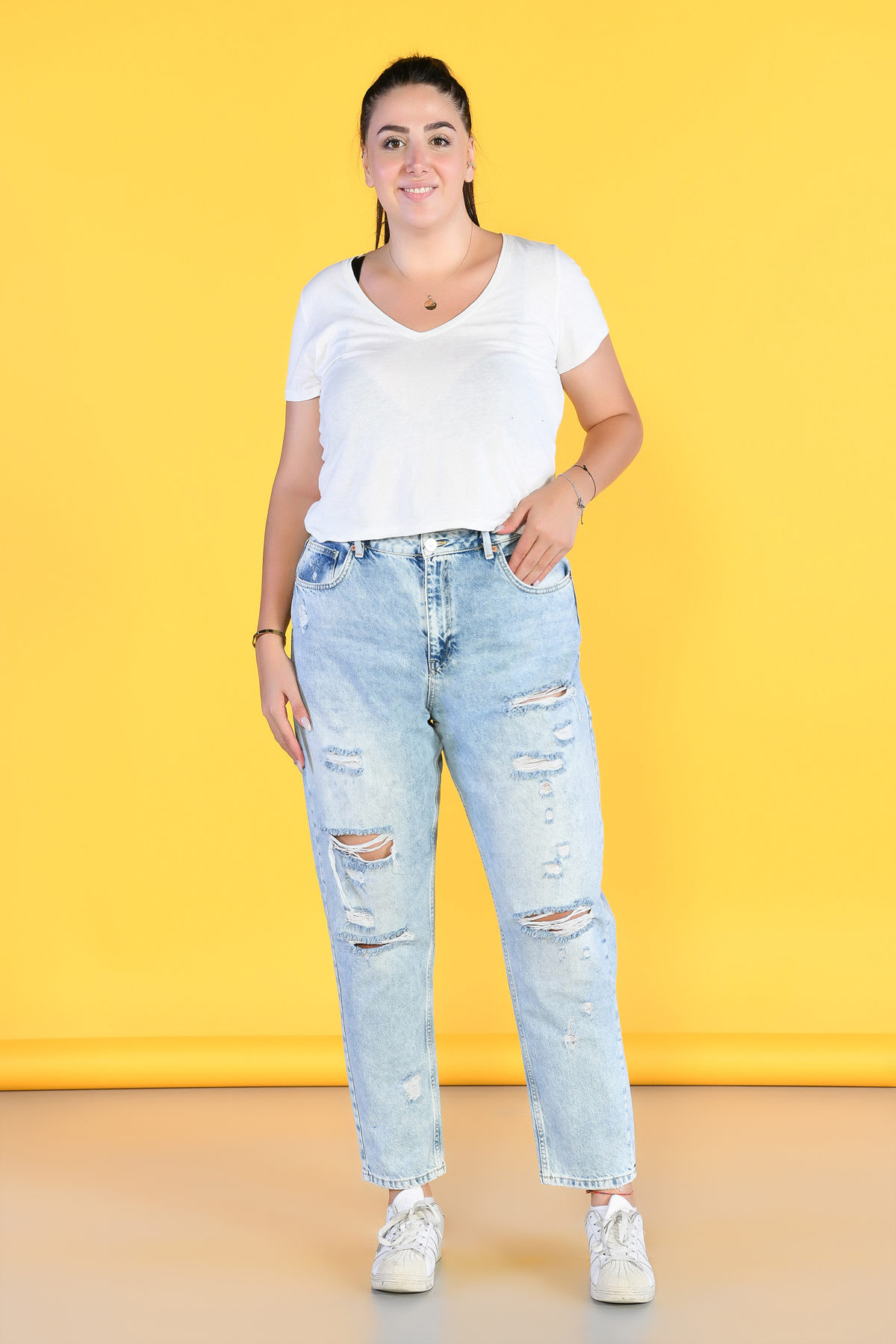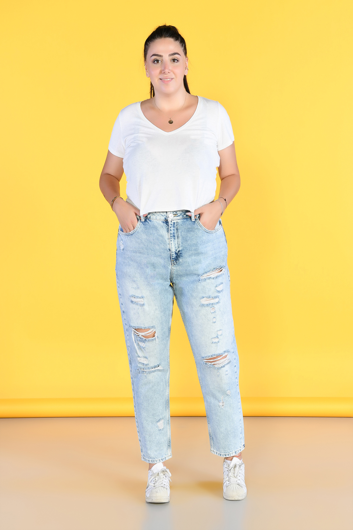 Büyük Beden Açık Mavi Yüksek Bel Mom Jeans