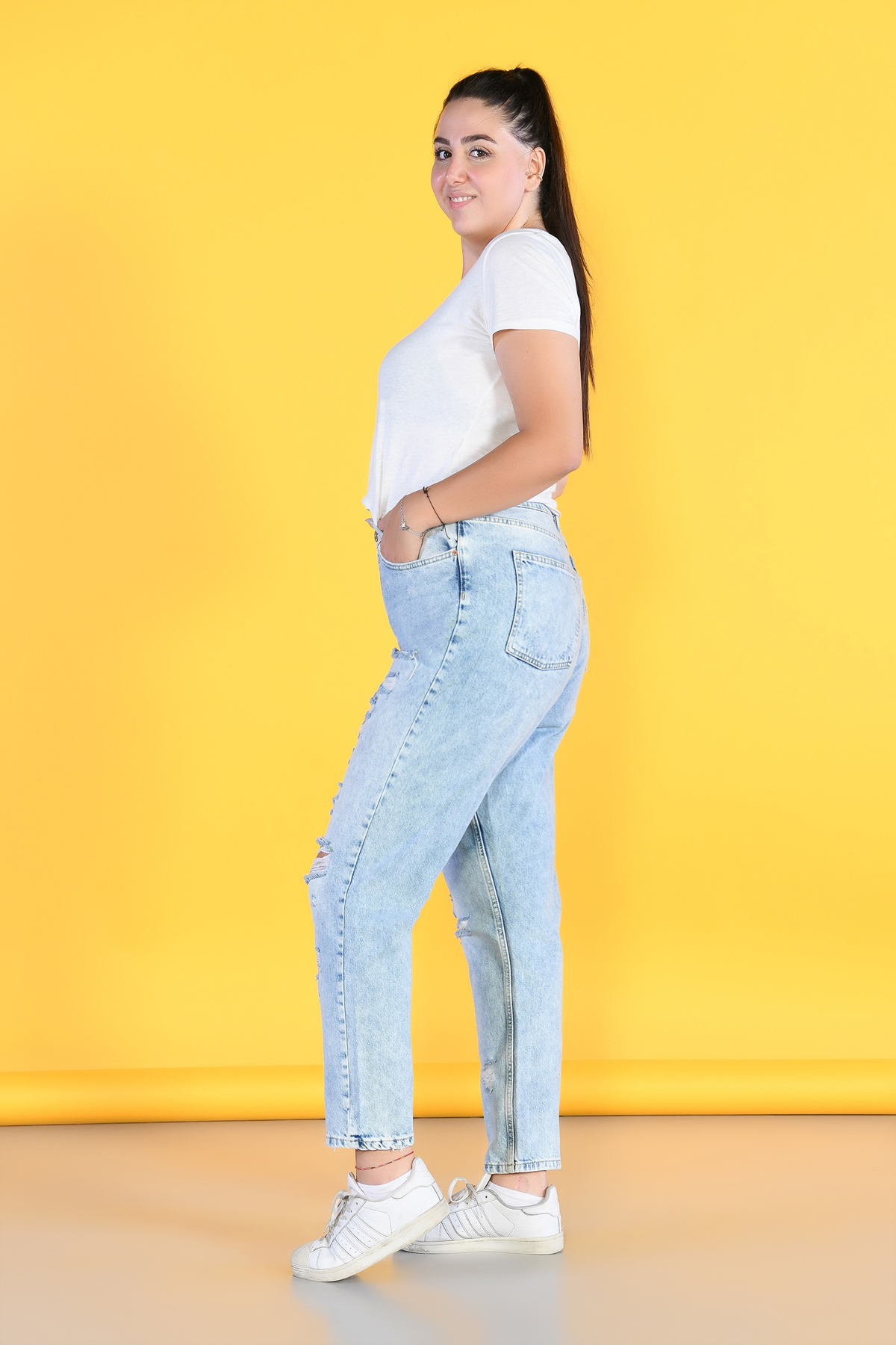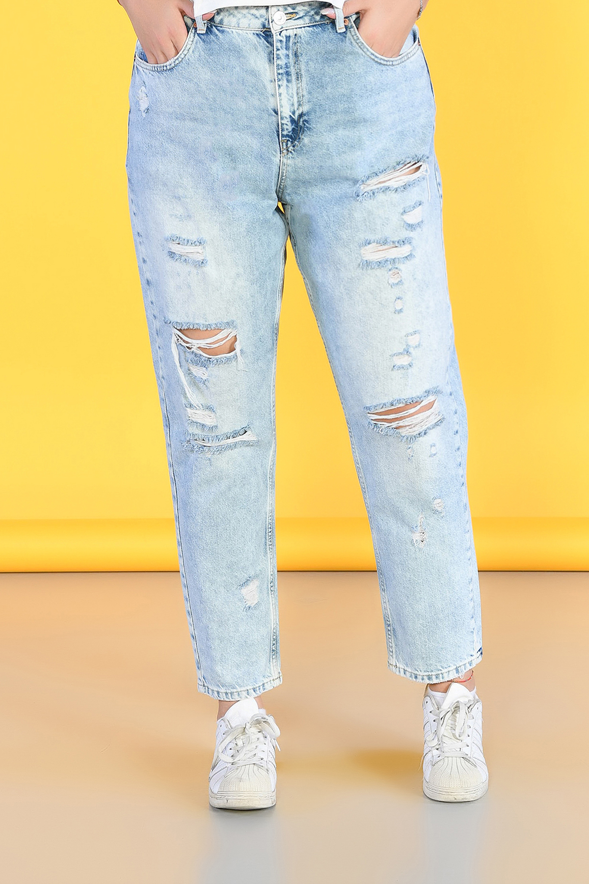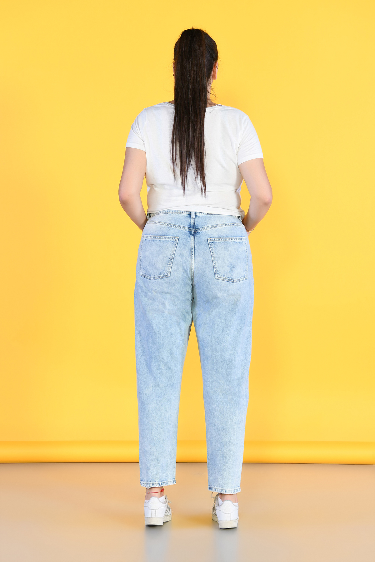 Büyük Beden Açık Mavi Yüksek Bel Mom Jeans
