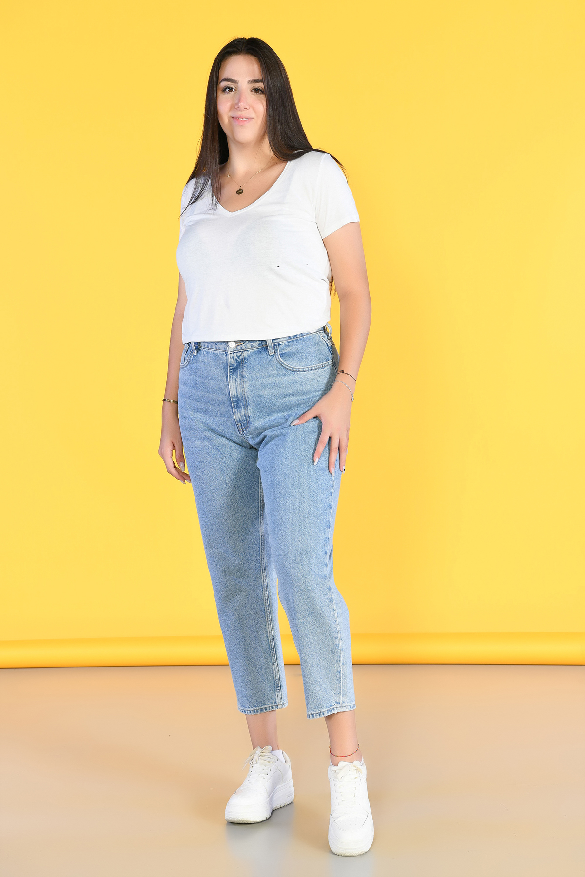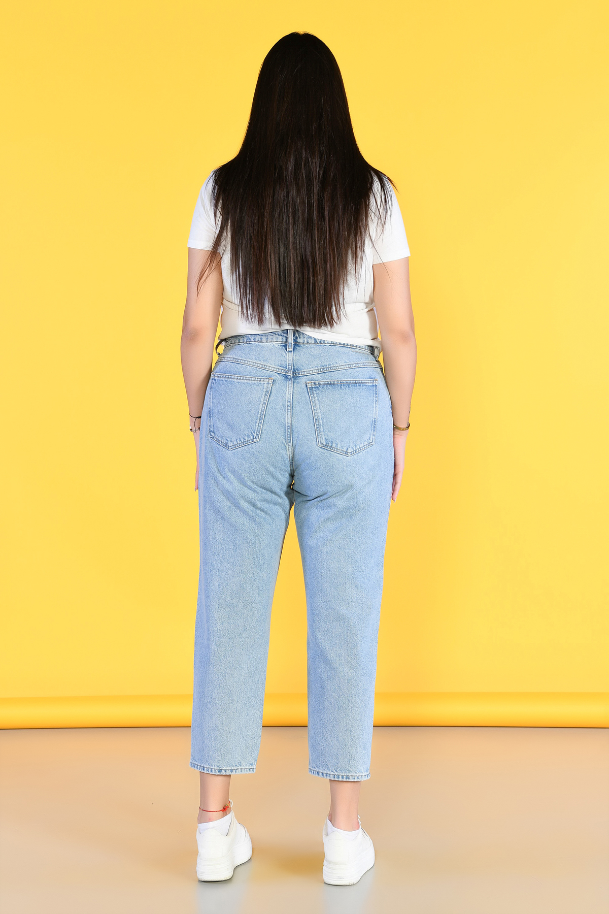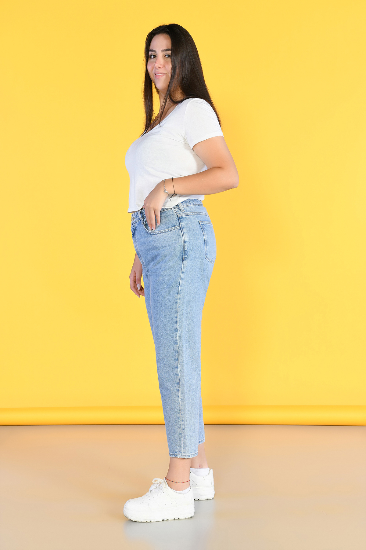 Büyük Beden Açık Mavi Yüksek Bel Mom Jeans