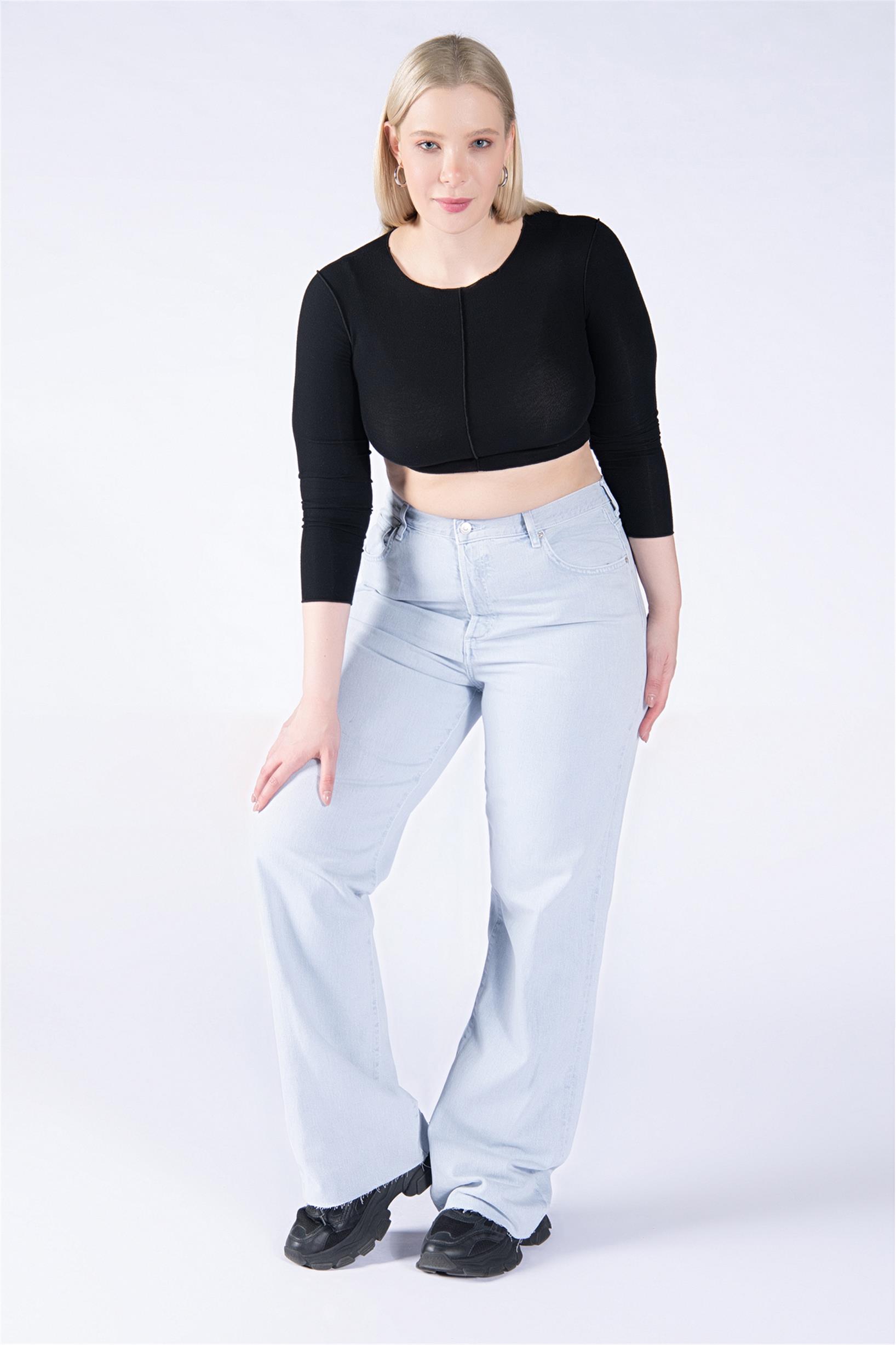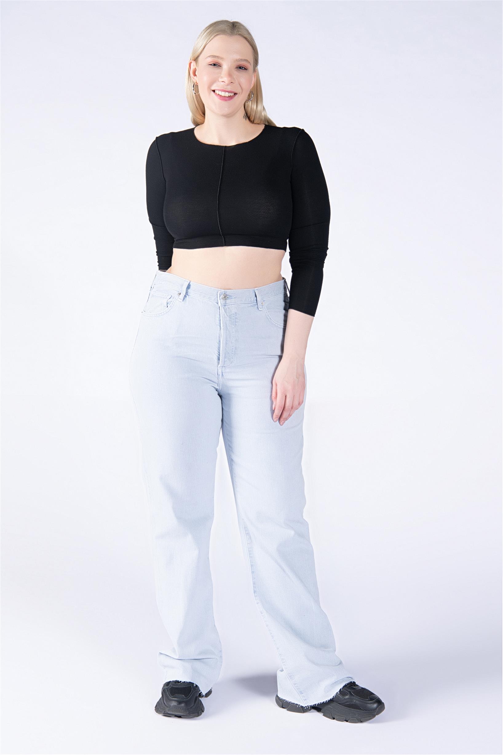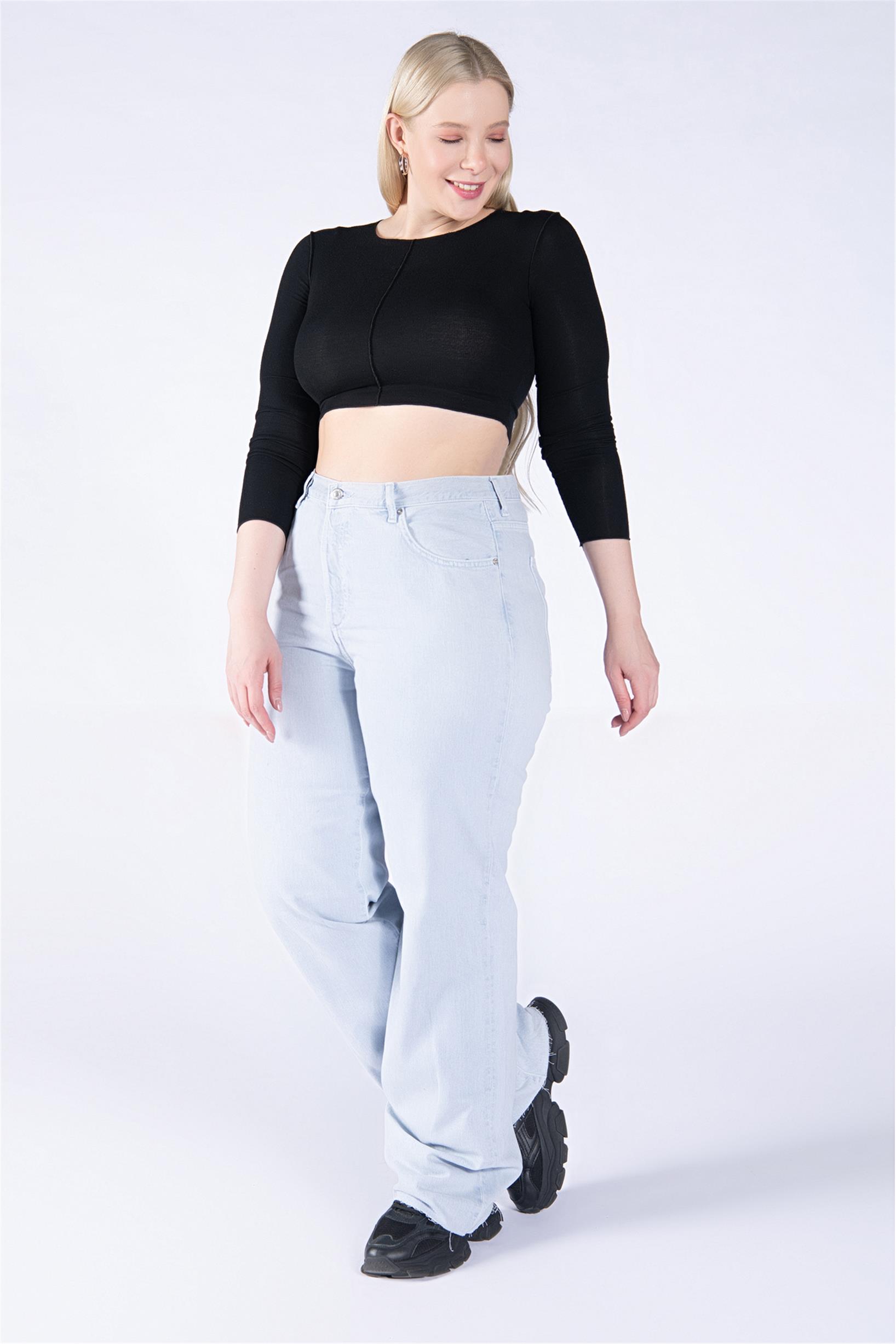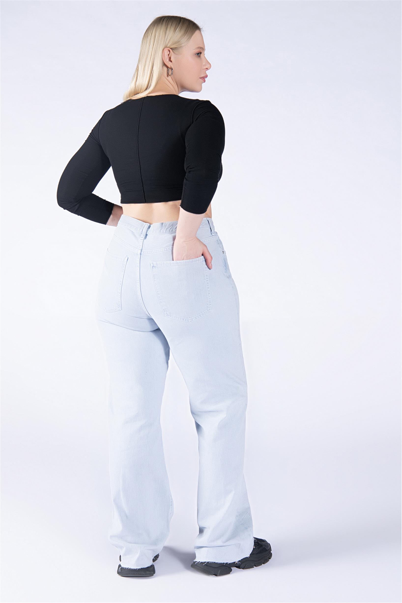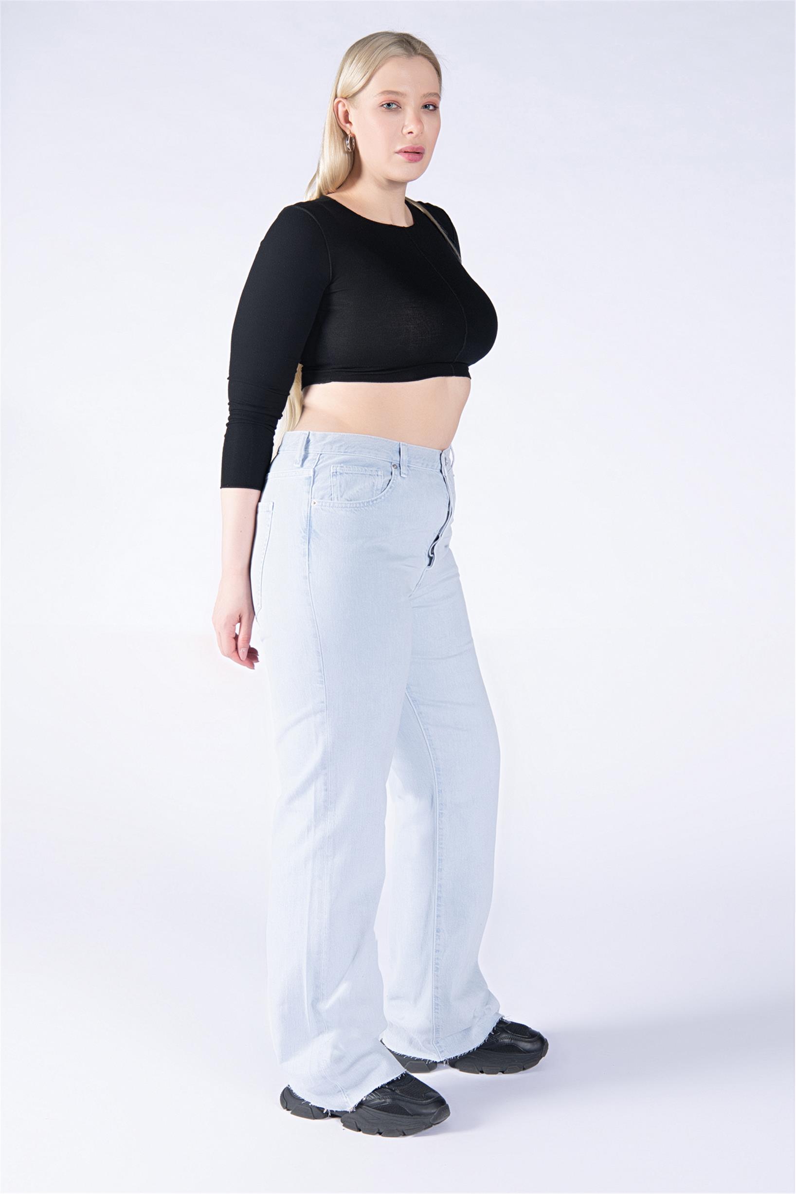 Büyük Beden Açık Mavi Yüksek Bel Palazzo Jeans