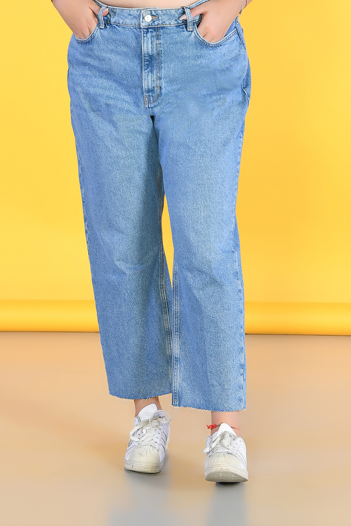 Büyük Beden Açık Mavi Yüksek Bel Wide Leg Jeans