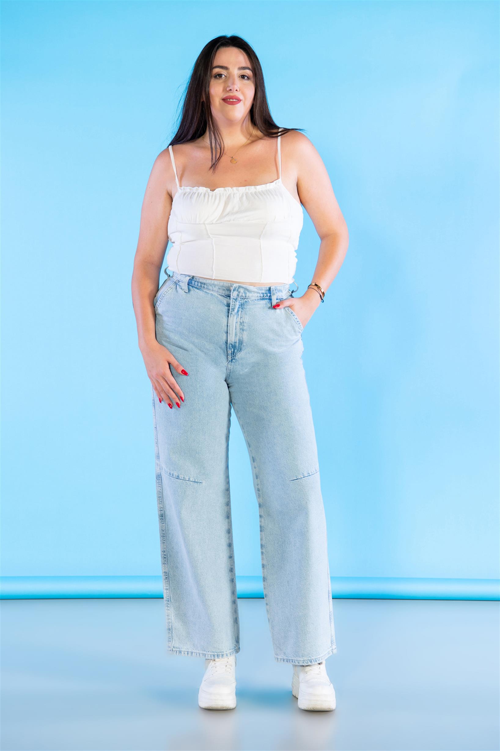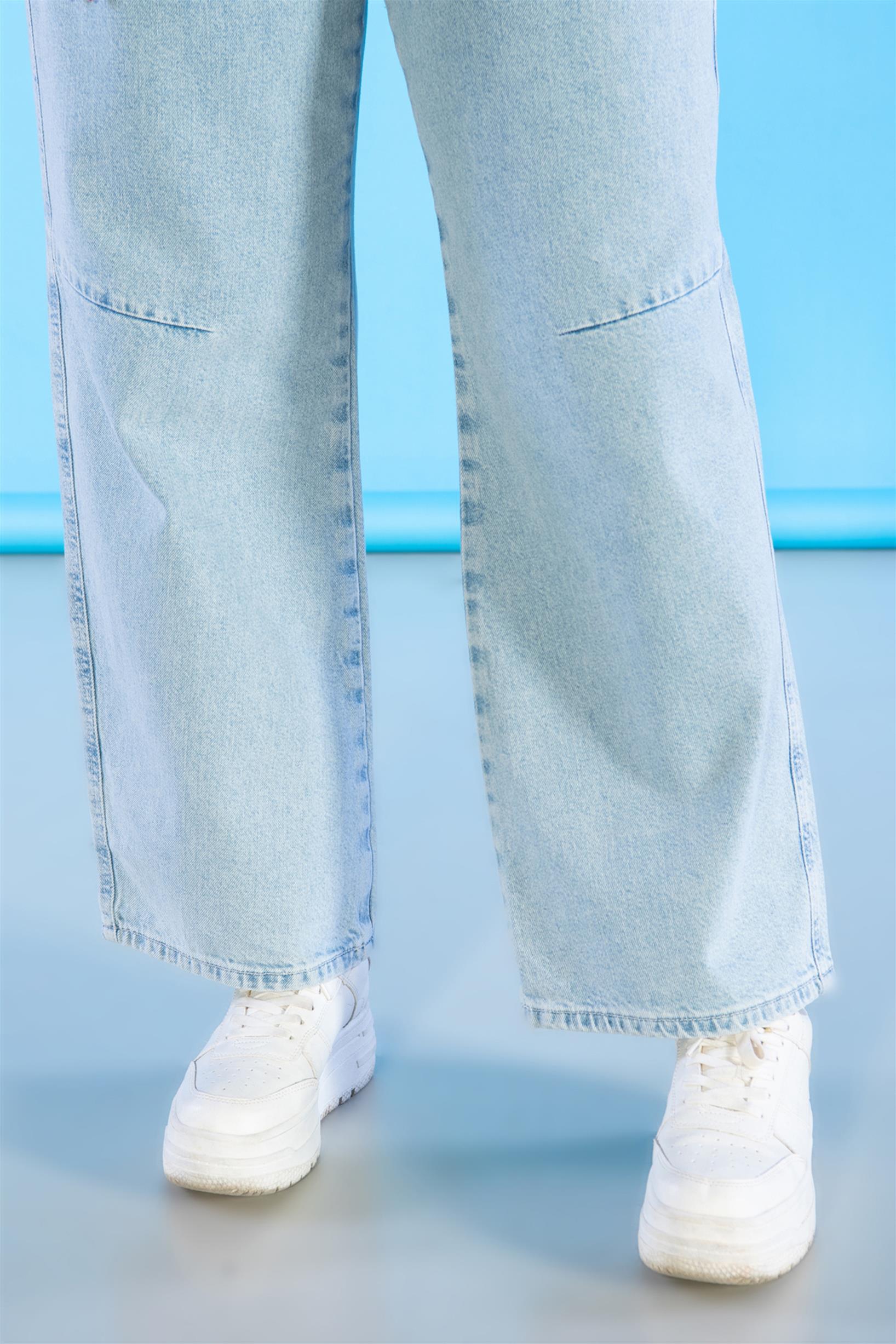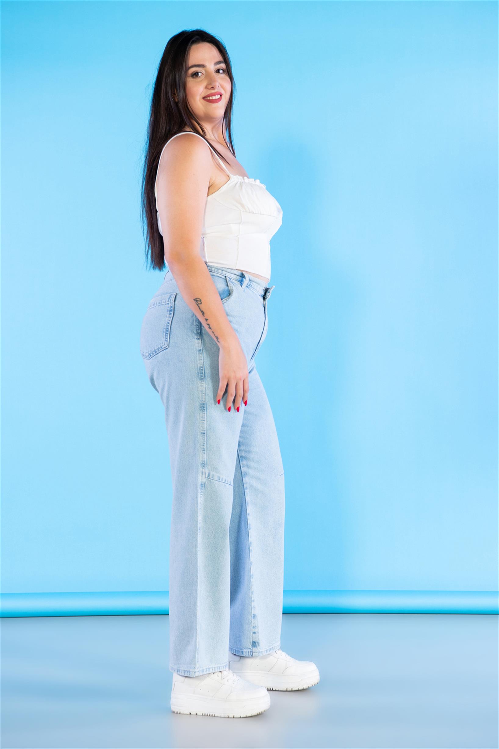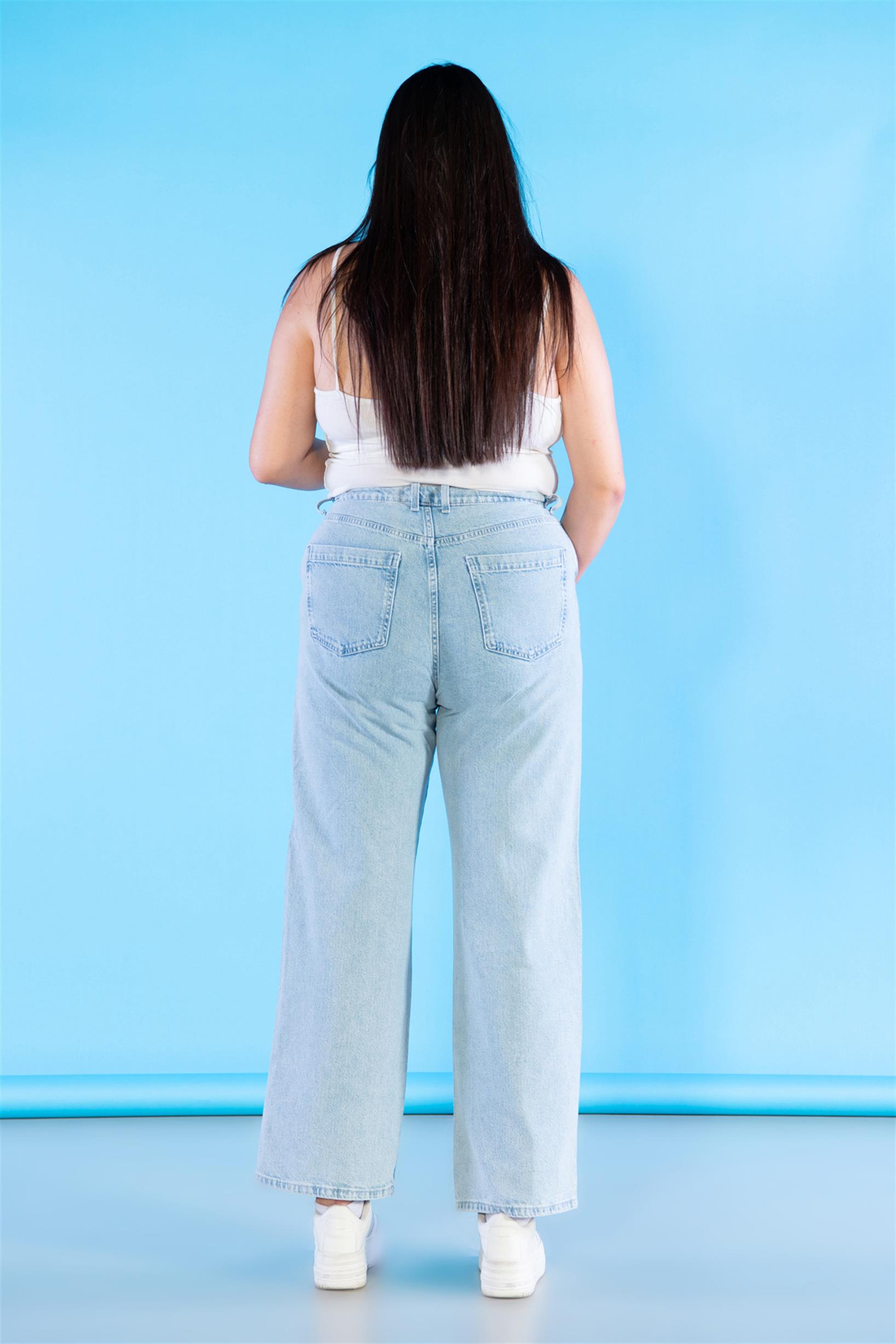 Büyük Beden Açık Mavi Yüksek Bel Wideleg Jeans
