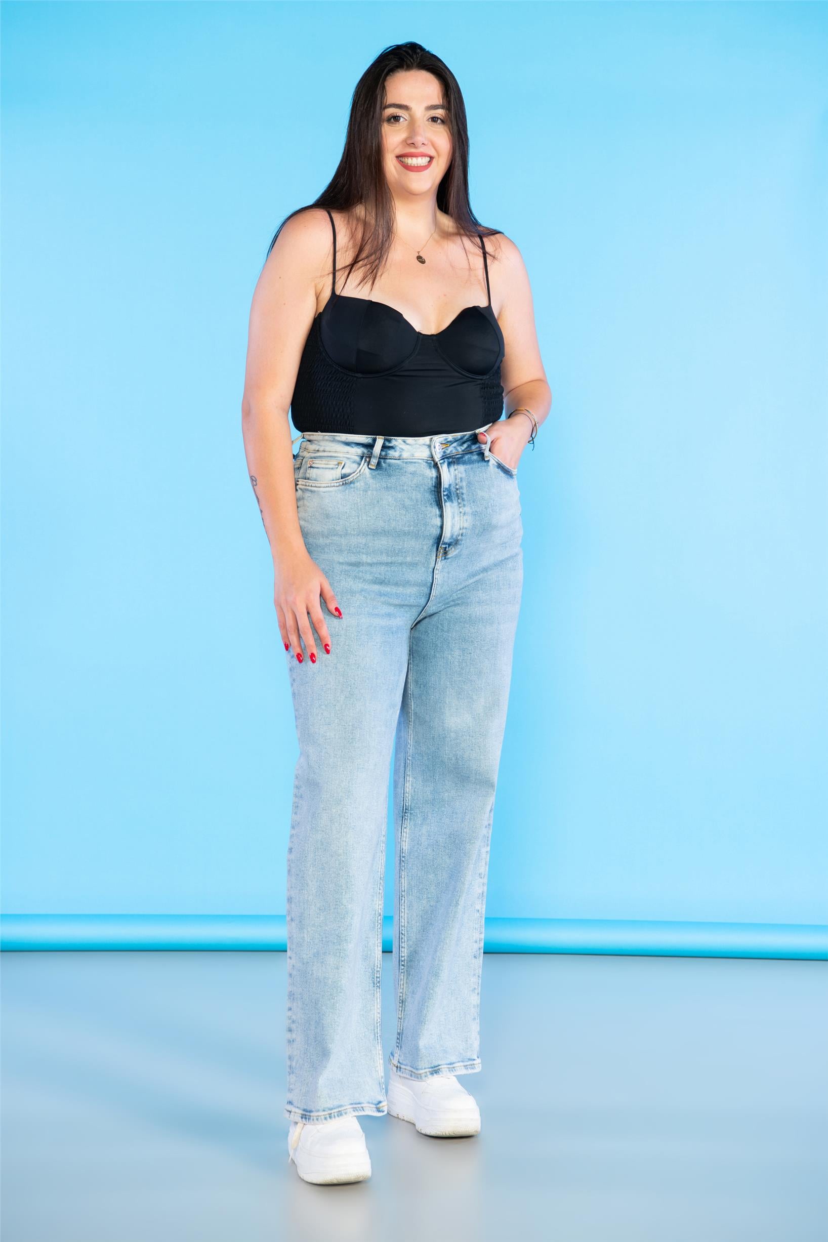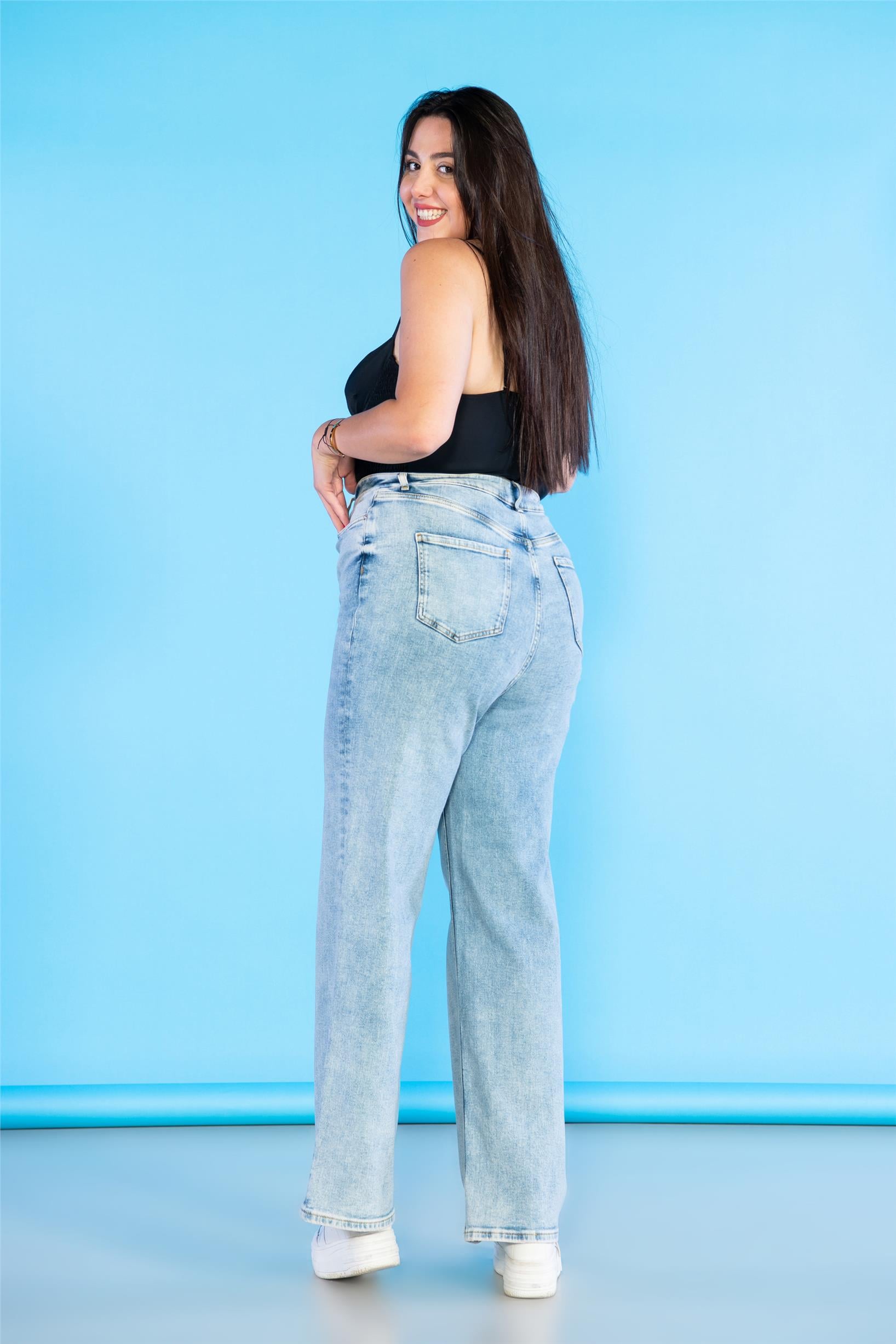 Büyük Beden Açık Mavi Yüksek Bel Wideleg Jeans
