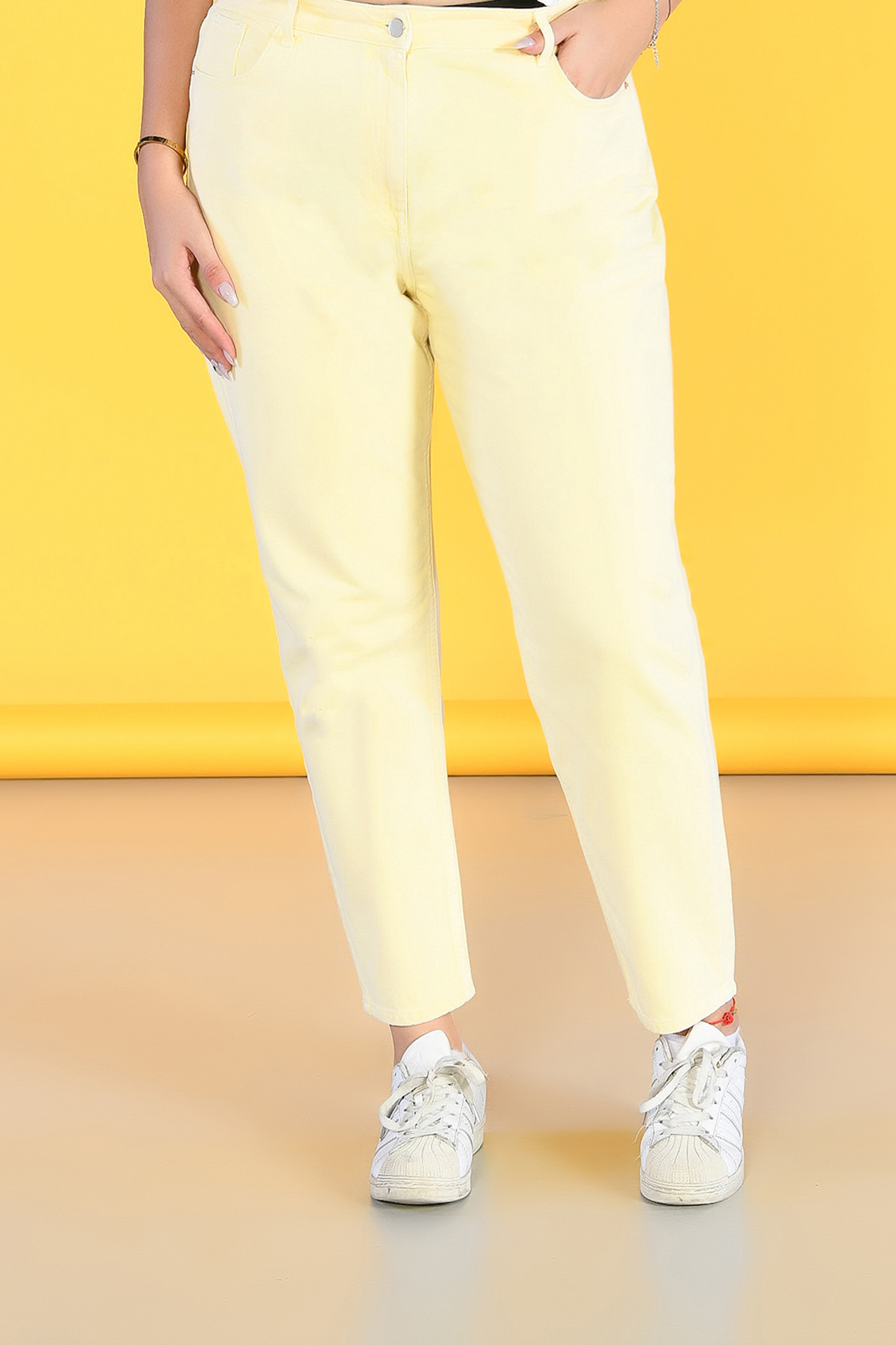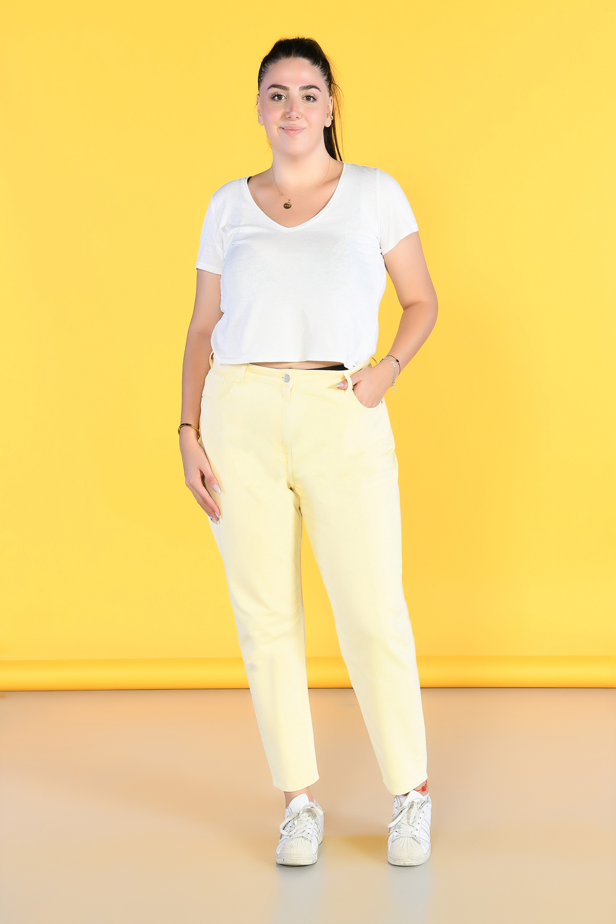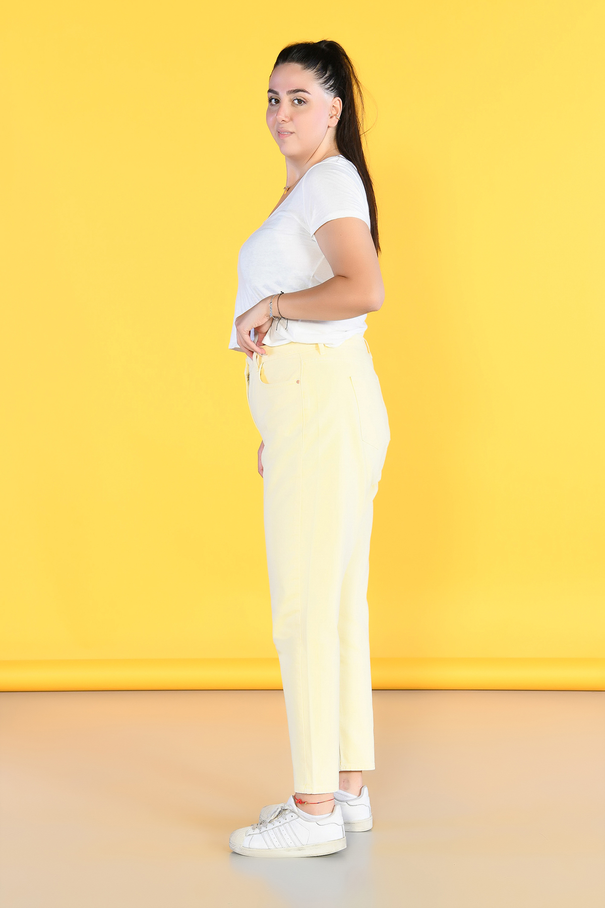 Büyük Beden Açık Sarı Yüksek Bel Mom Jeans