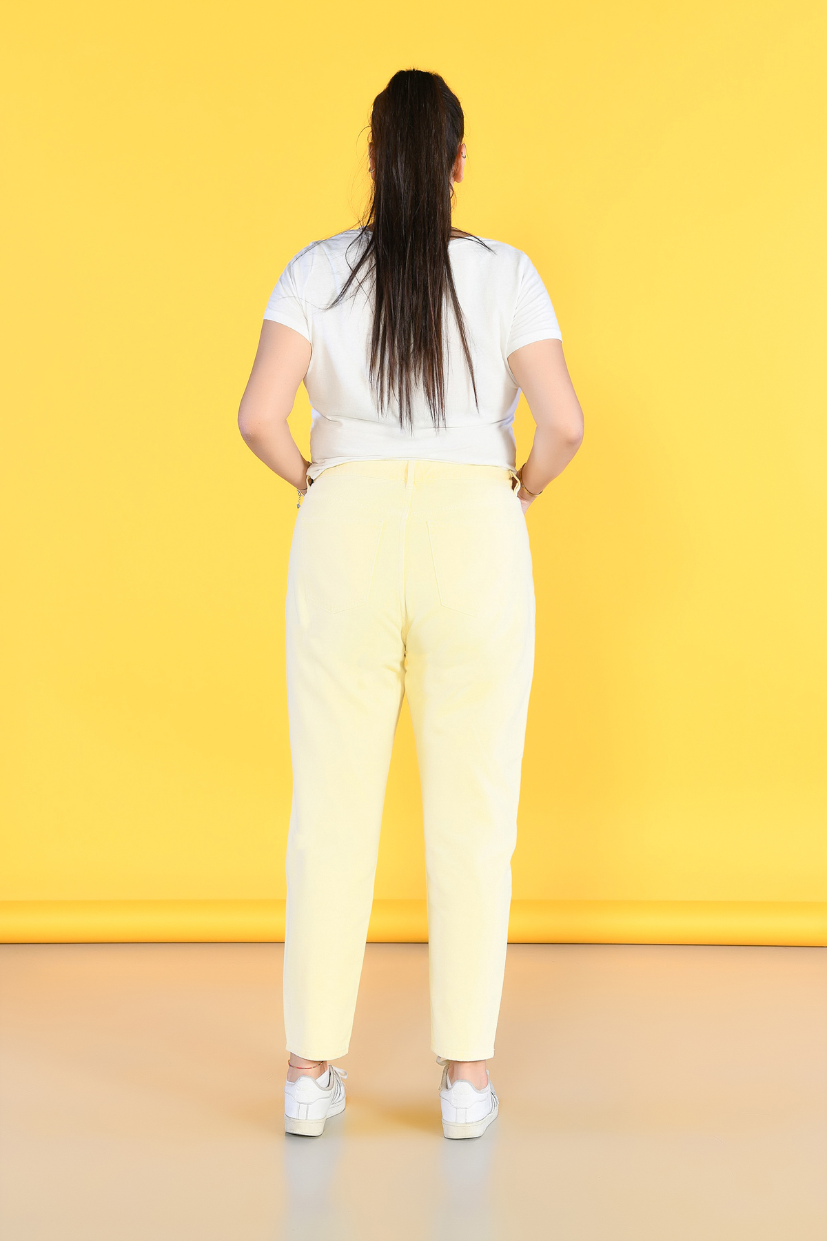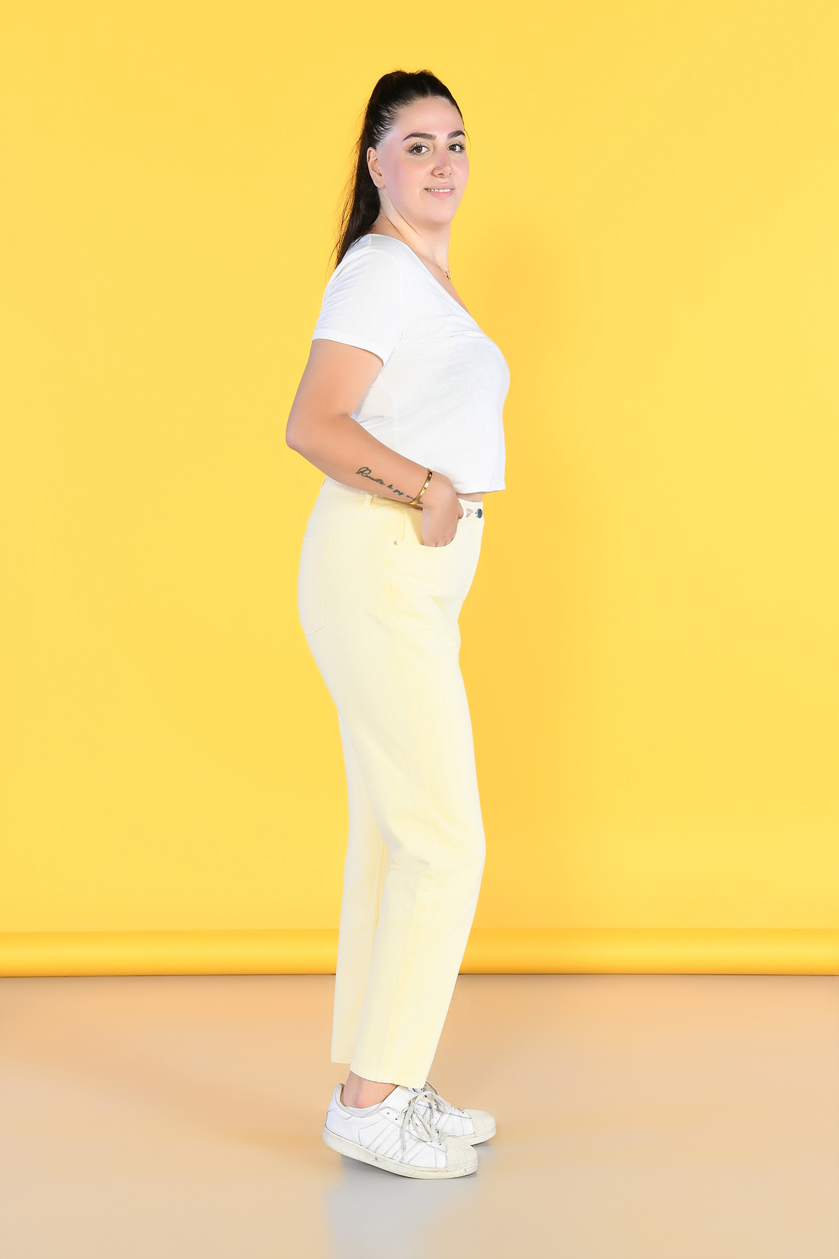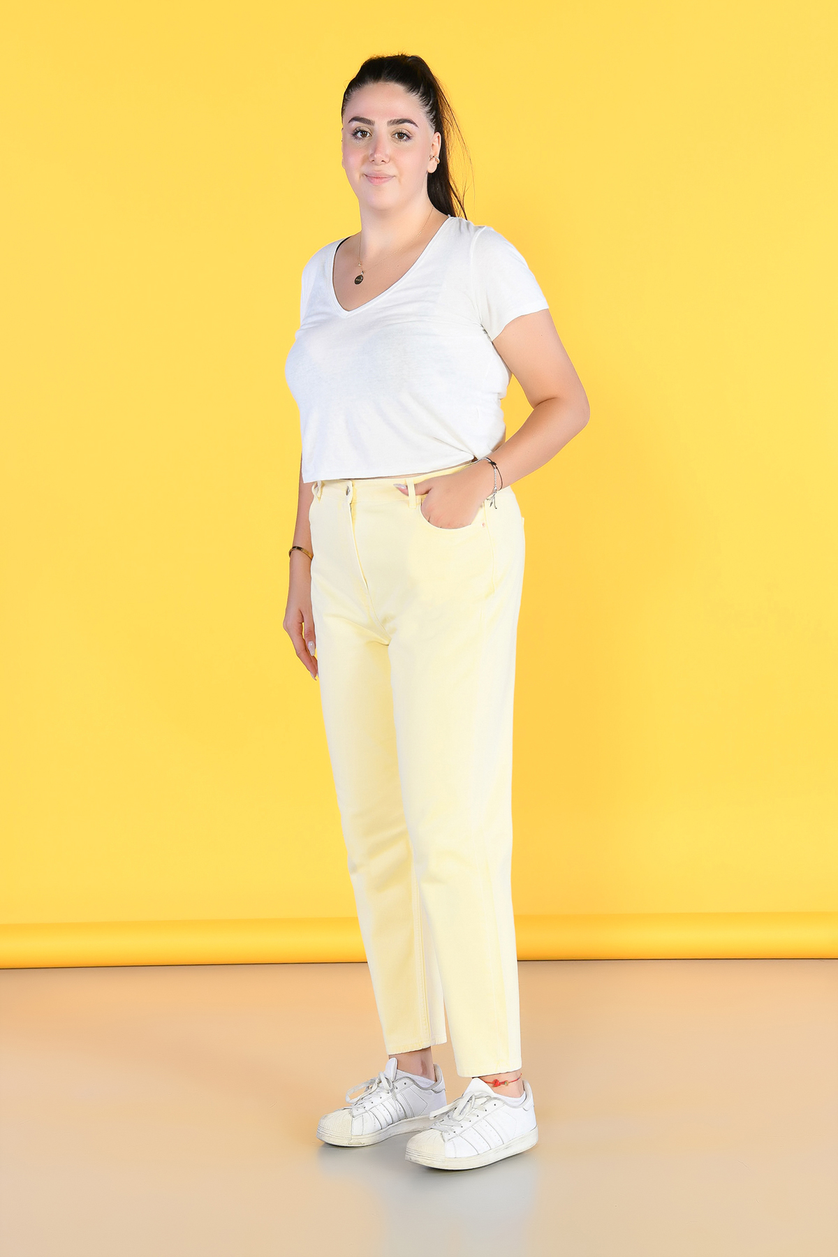 Büyük Beden Açık Sarı Yüksek Bel Mom Jeans