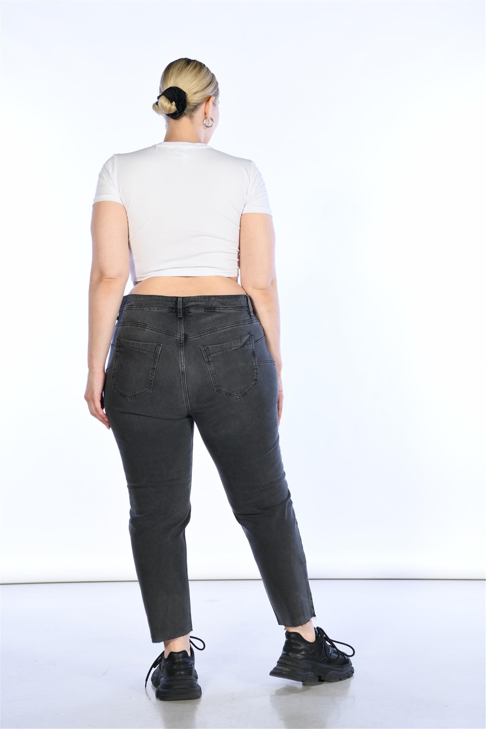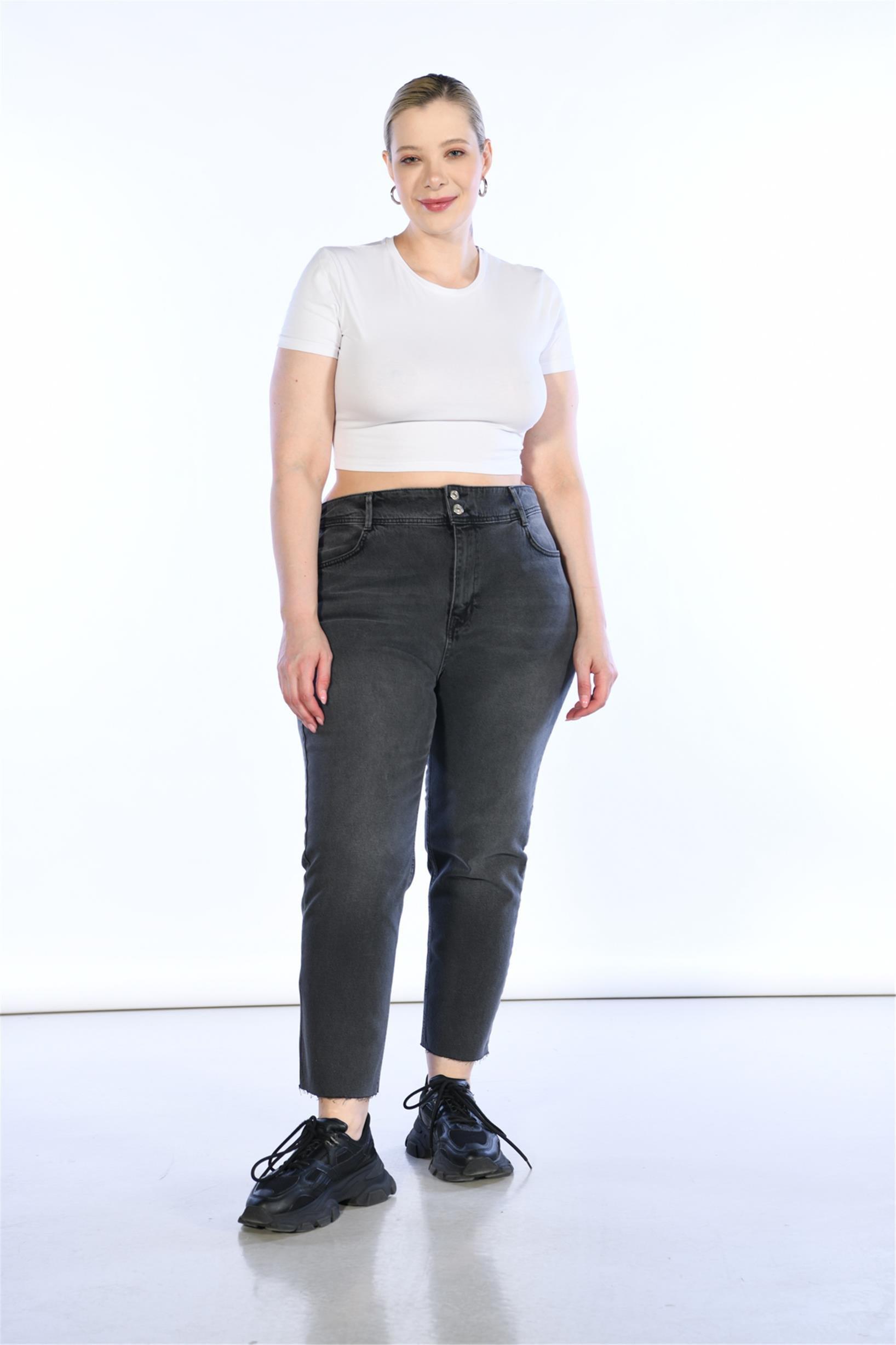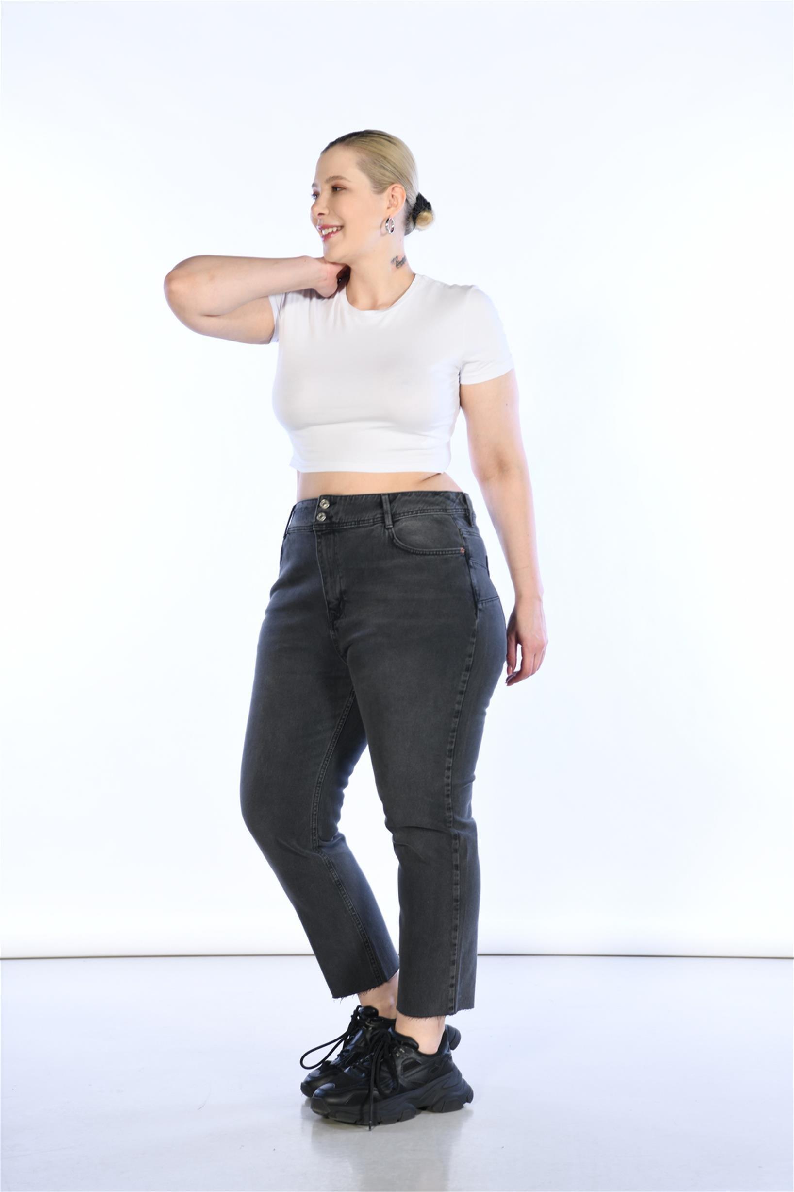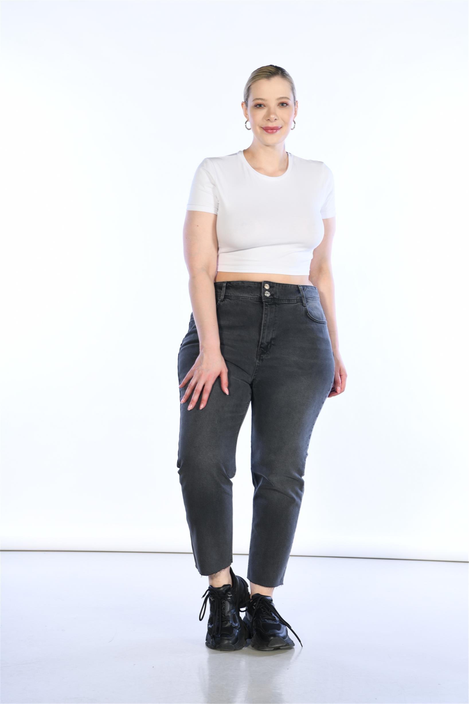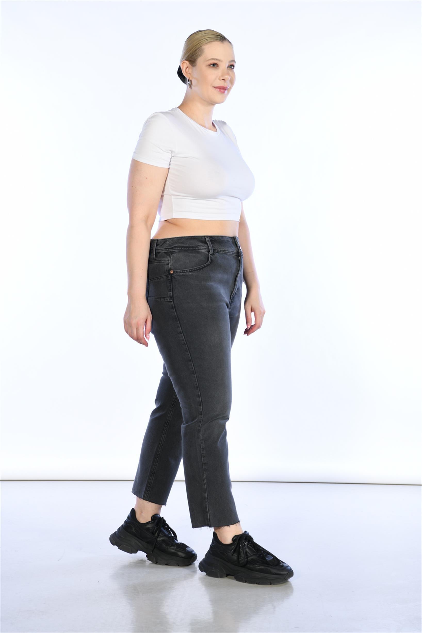 Büyük Beden Antrasit Yüksek Bel Straight Jeans