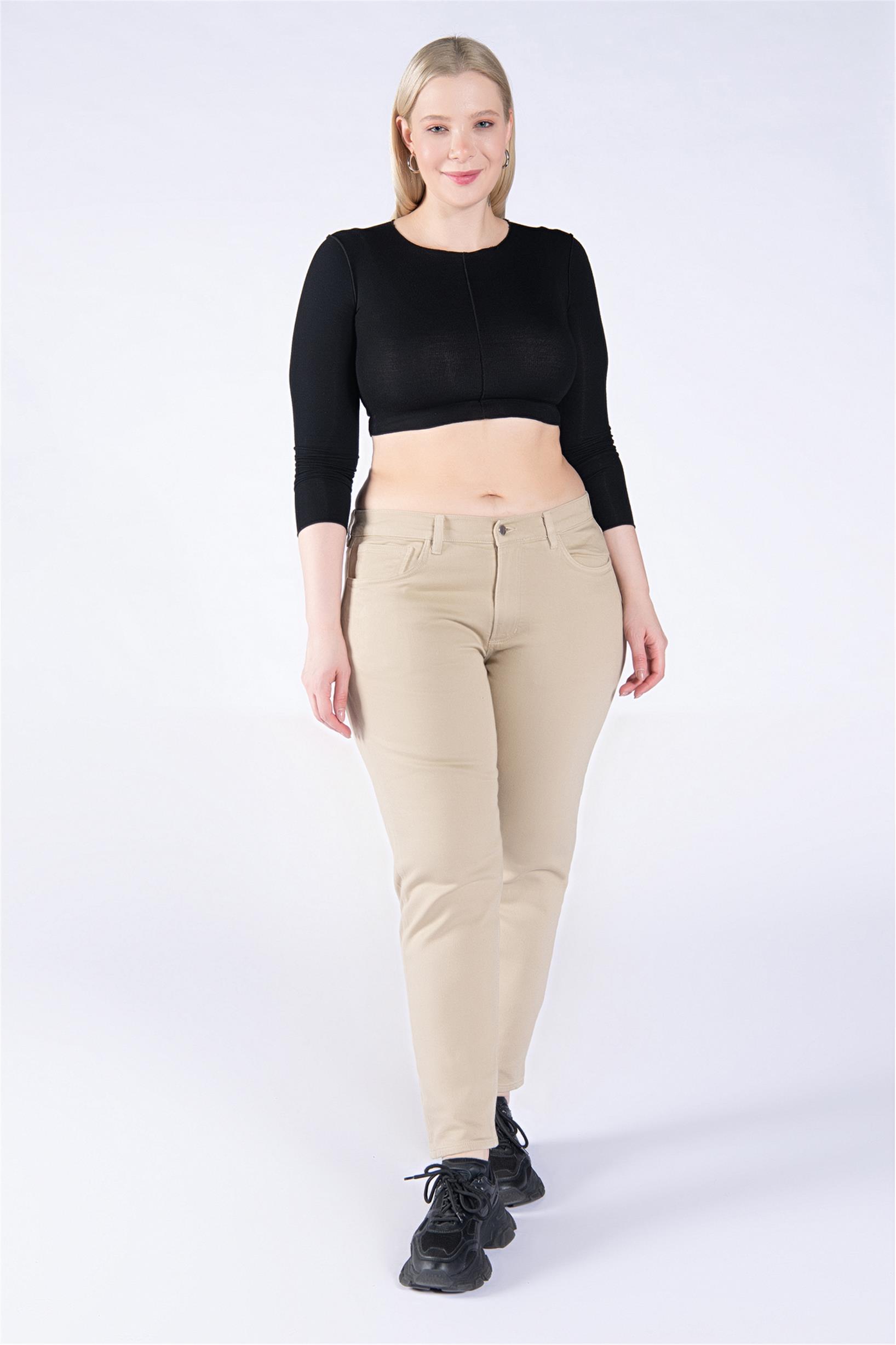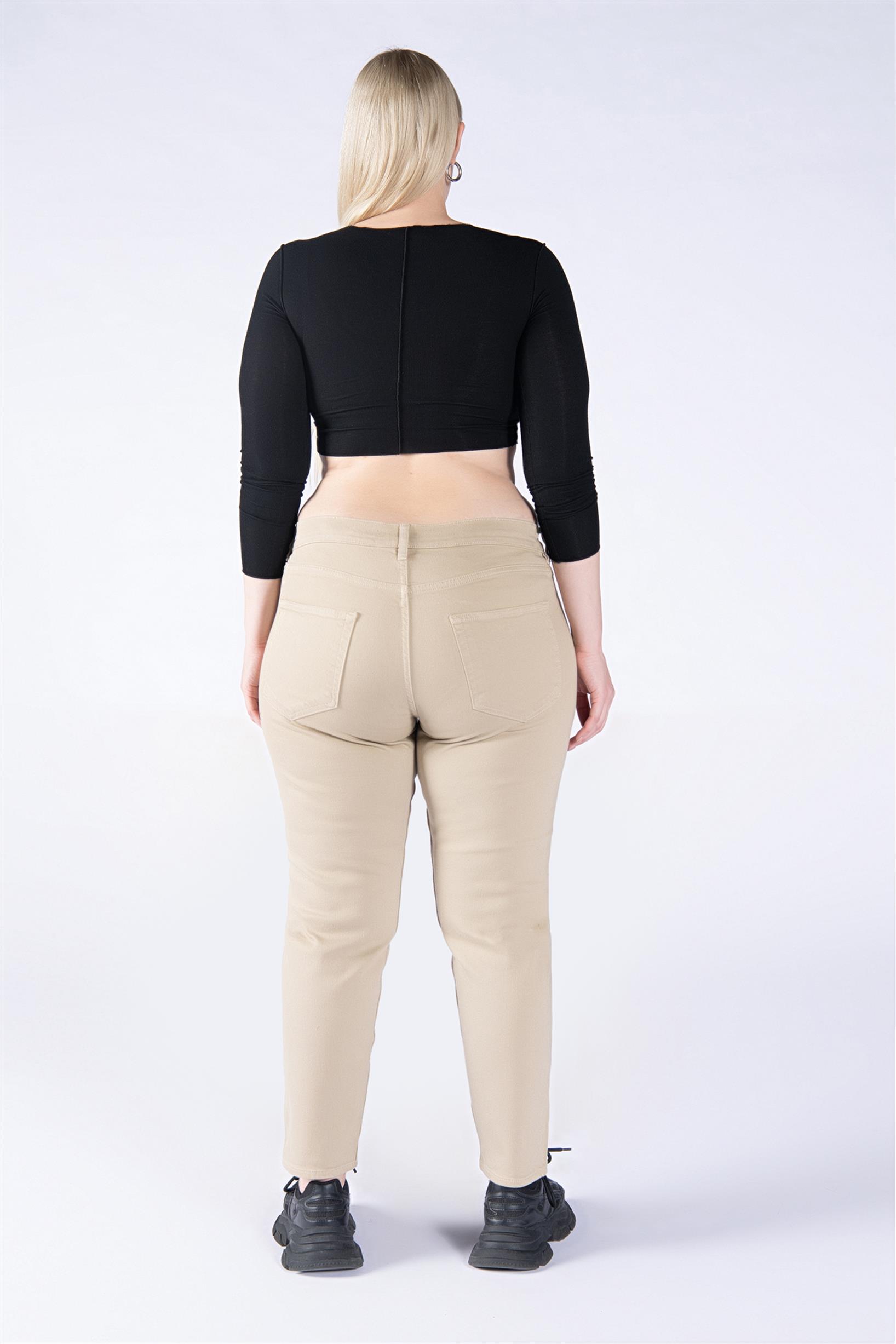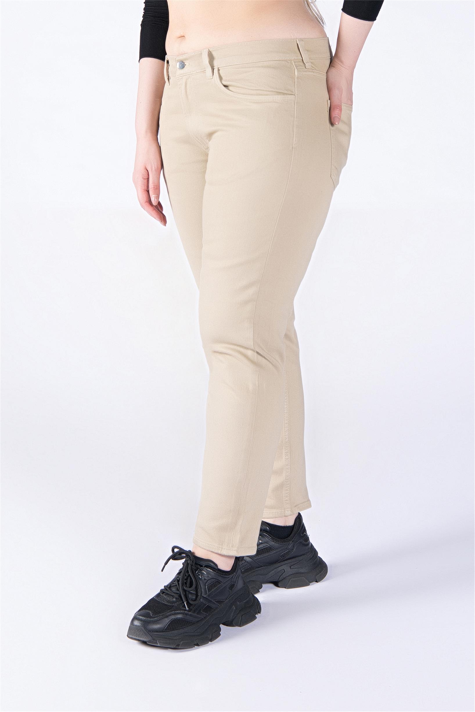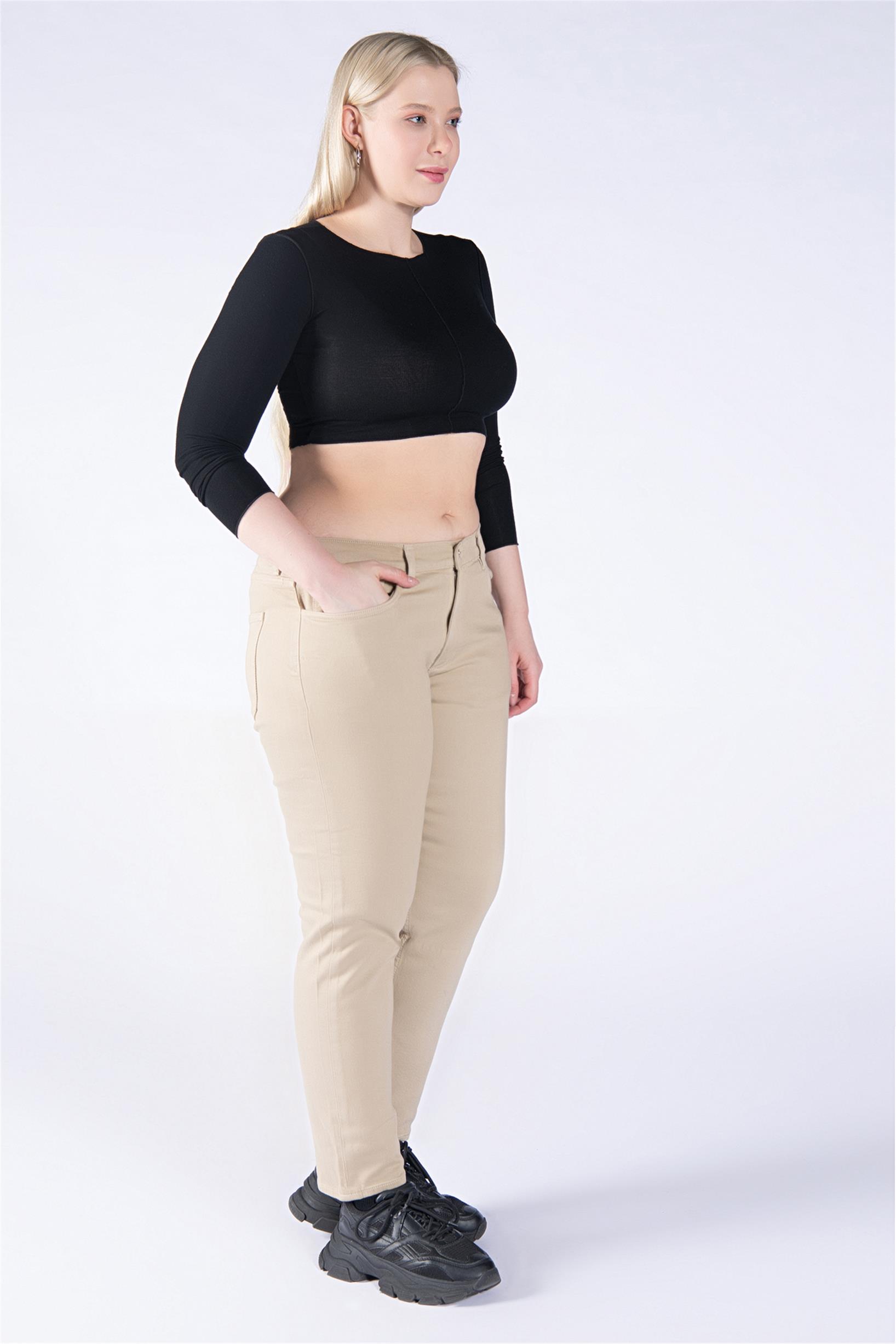 Büyük Beden Bej Normal Bel Mom Jeans