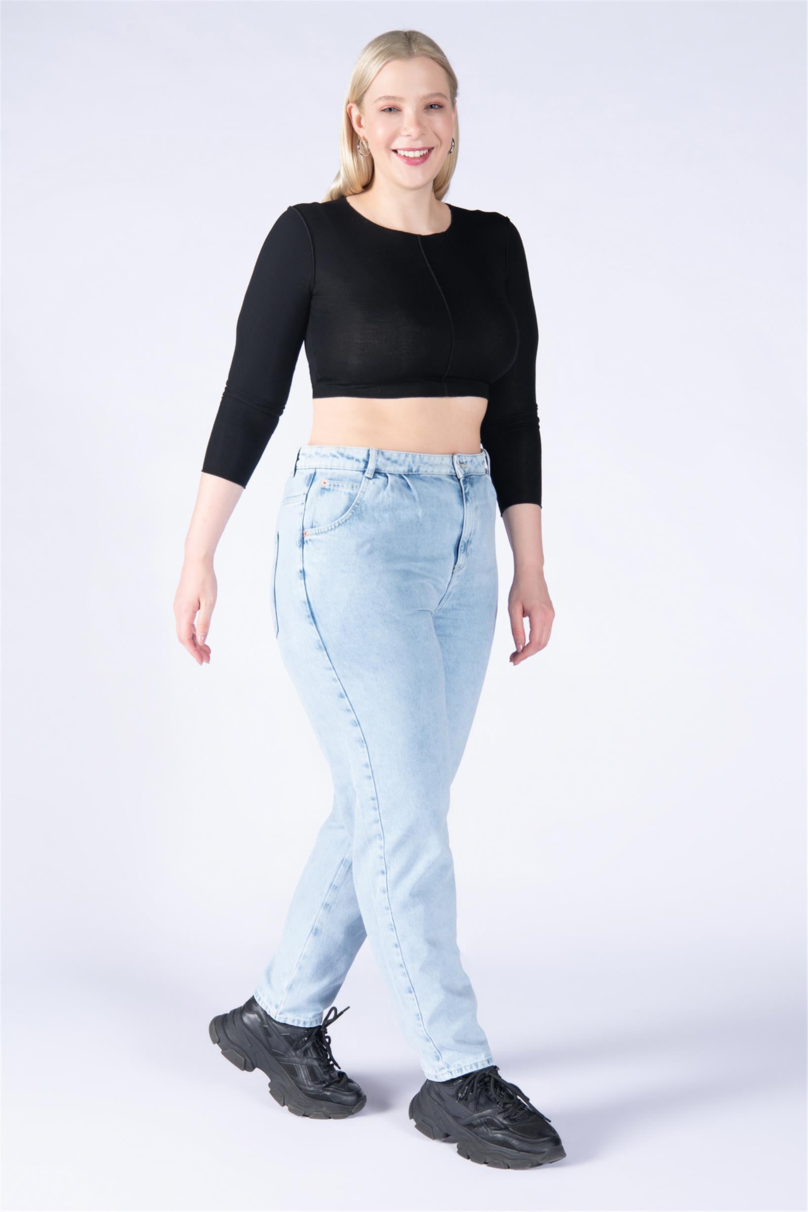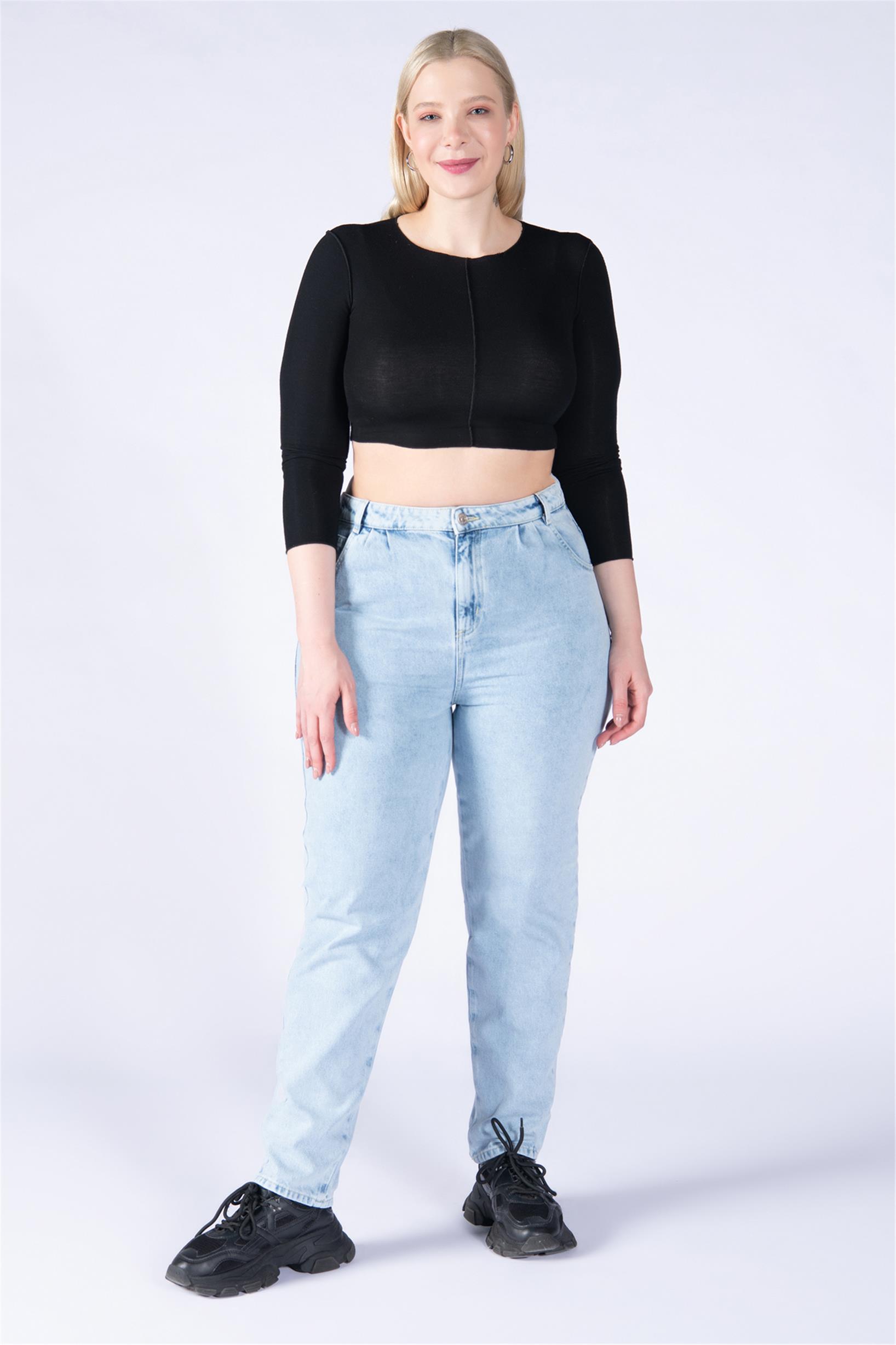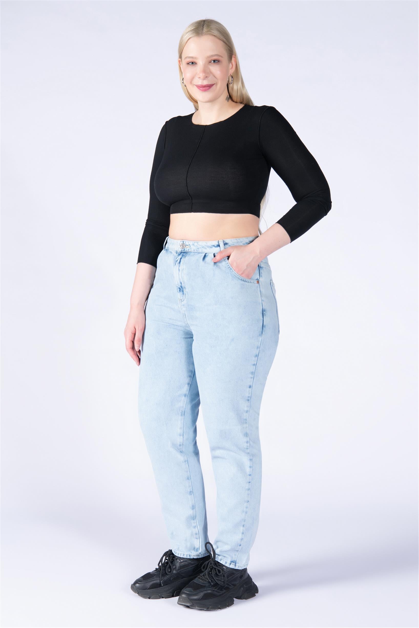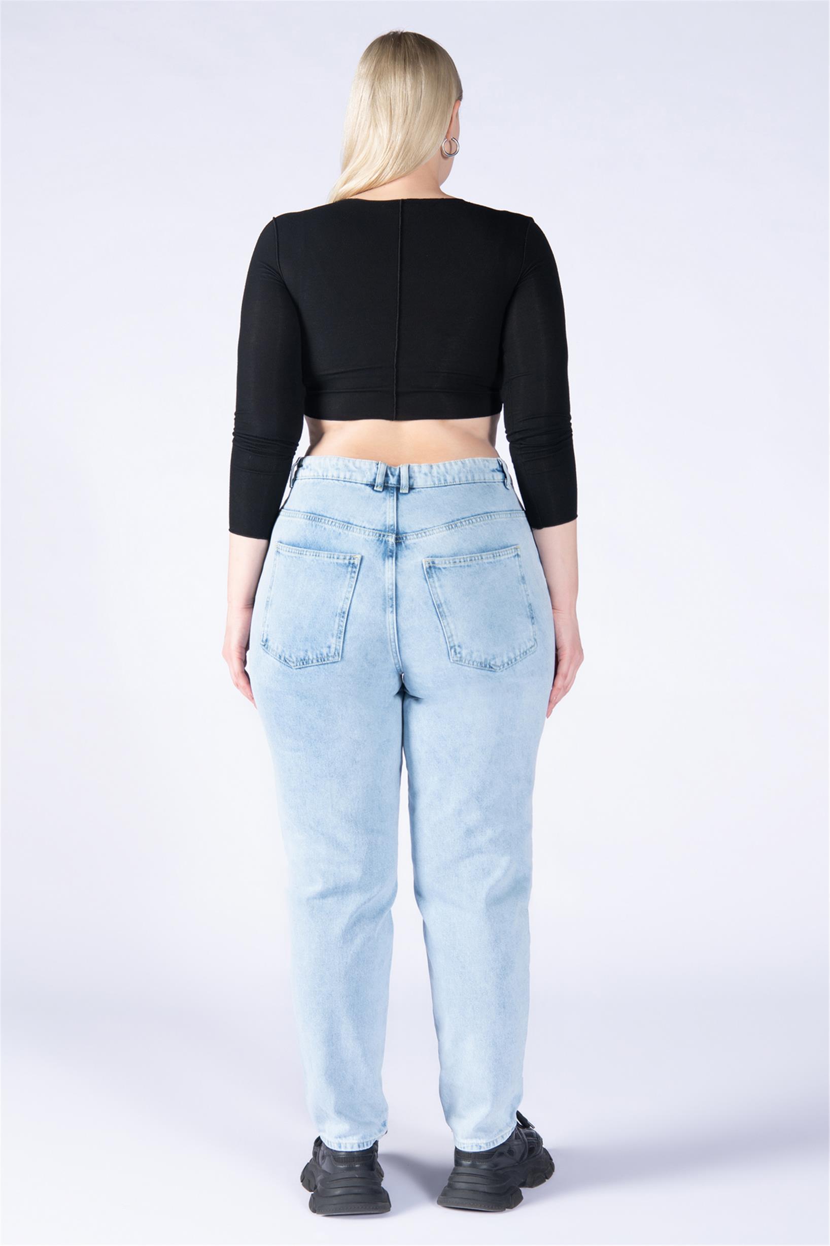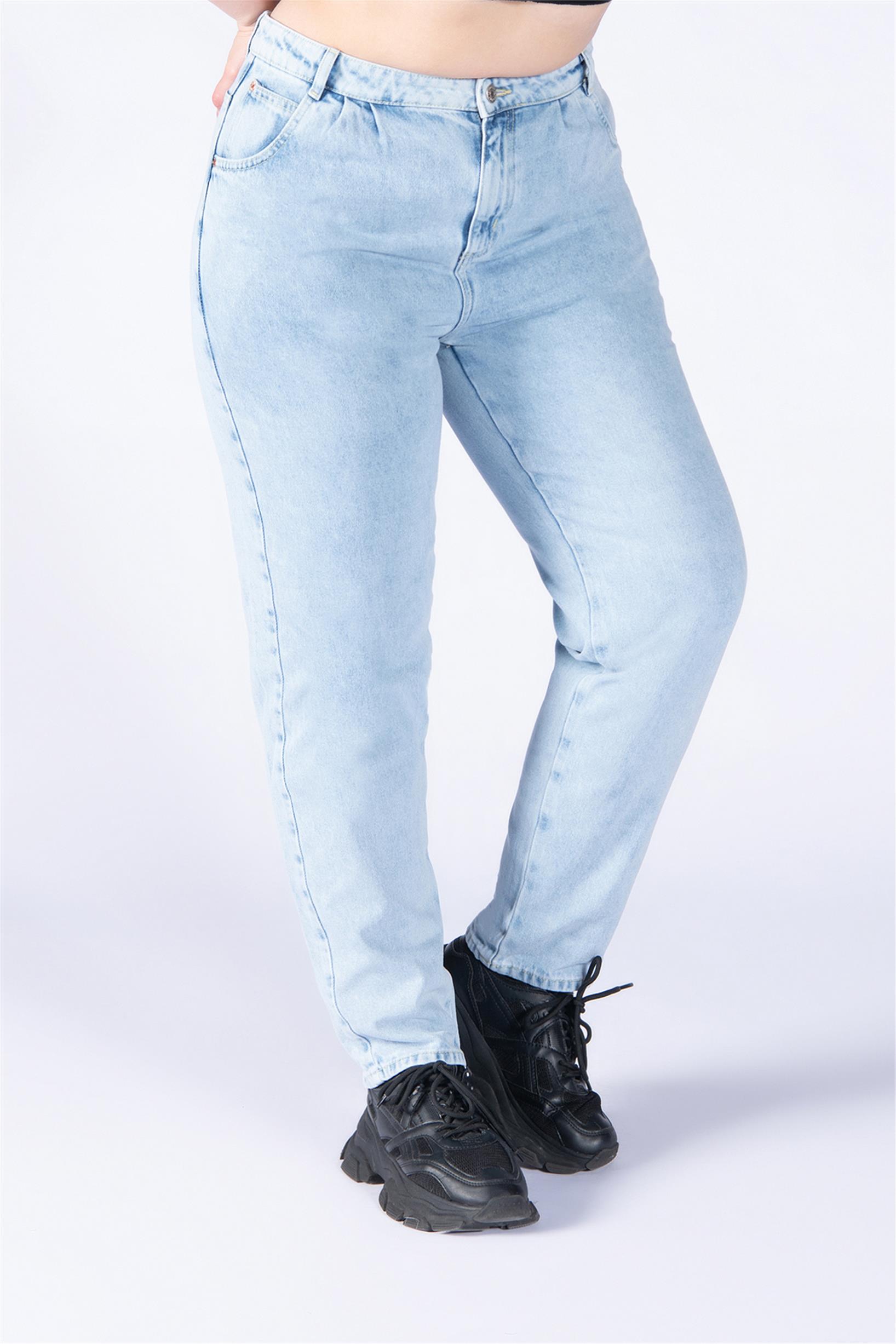 Büyük Beden Buz Mavisi Yüksek Bel Mom Jeans
