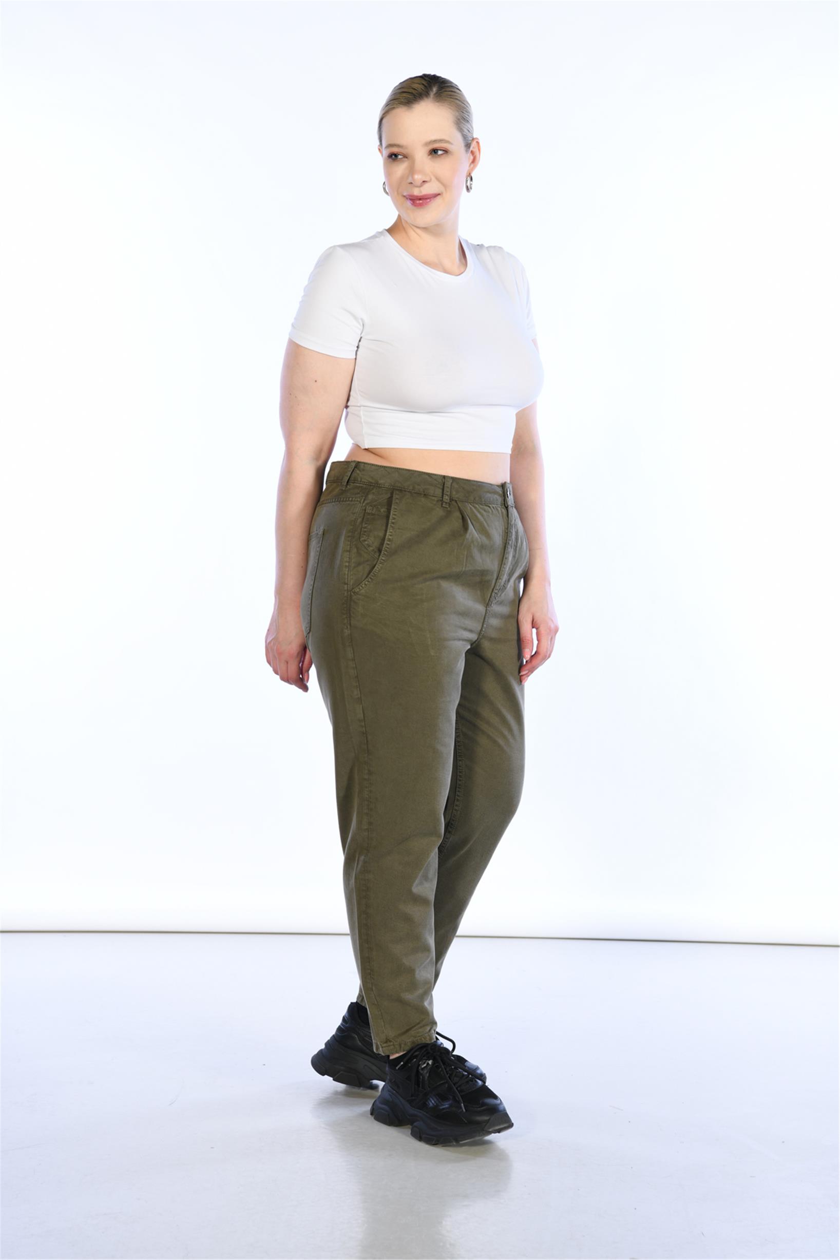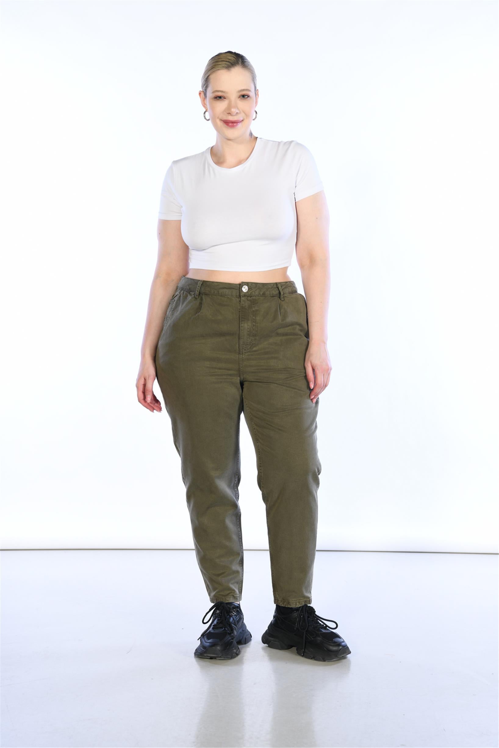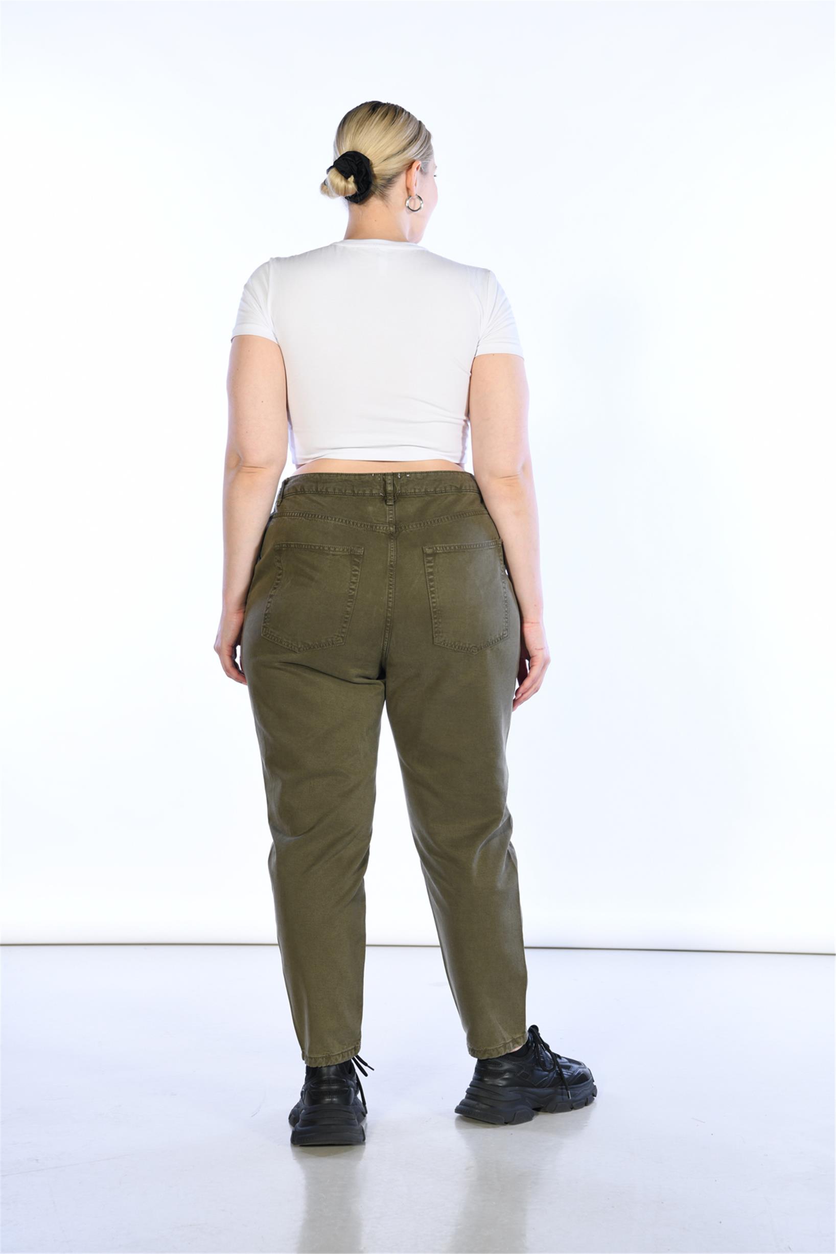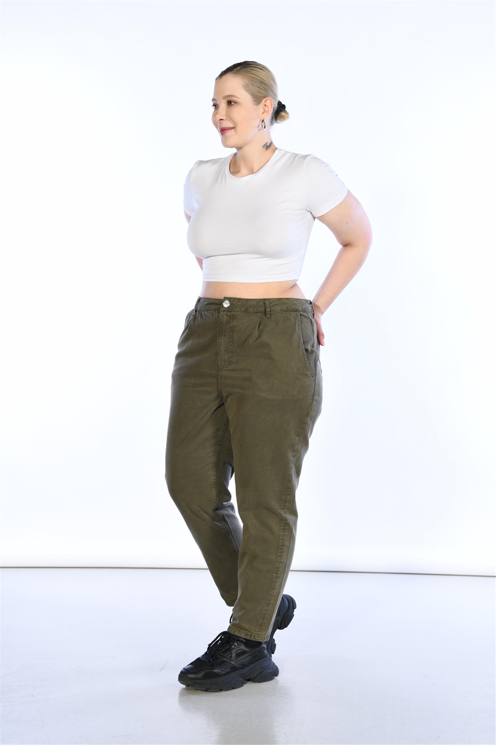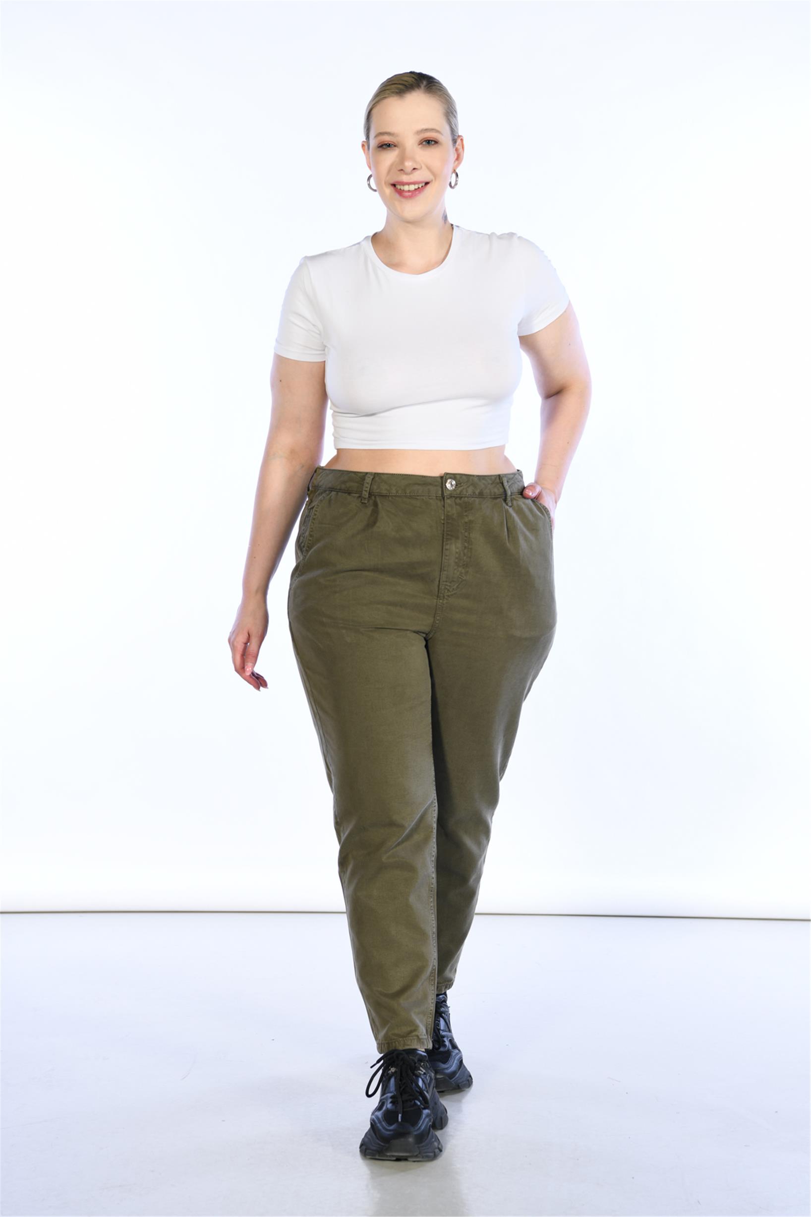 Büyük Beden Haki Yüksek Bel Mom Jeans GF041100028