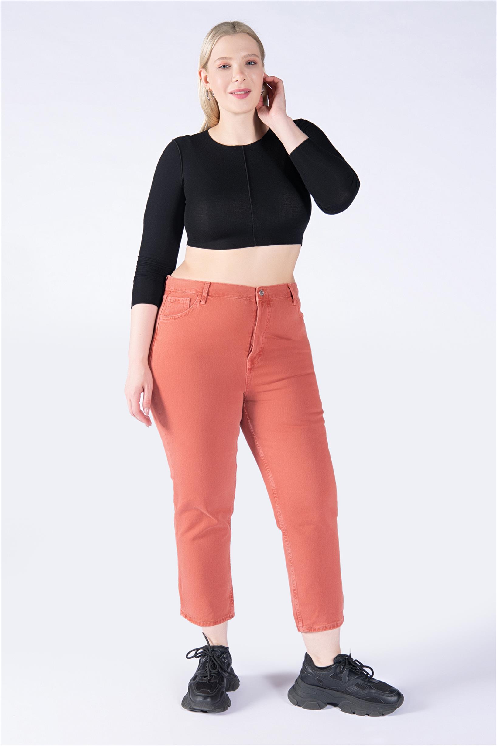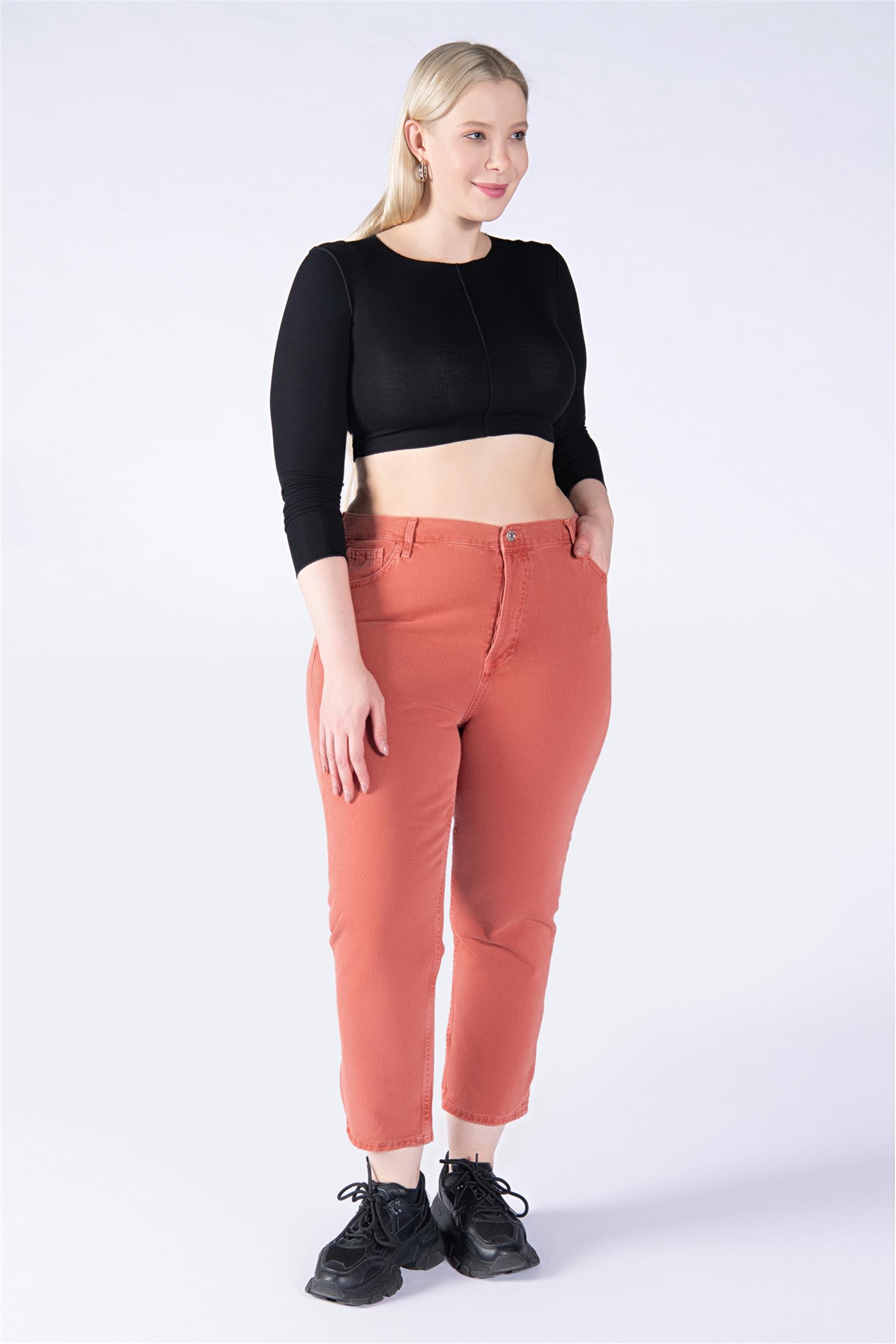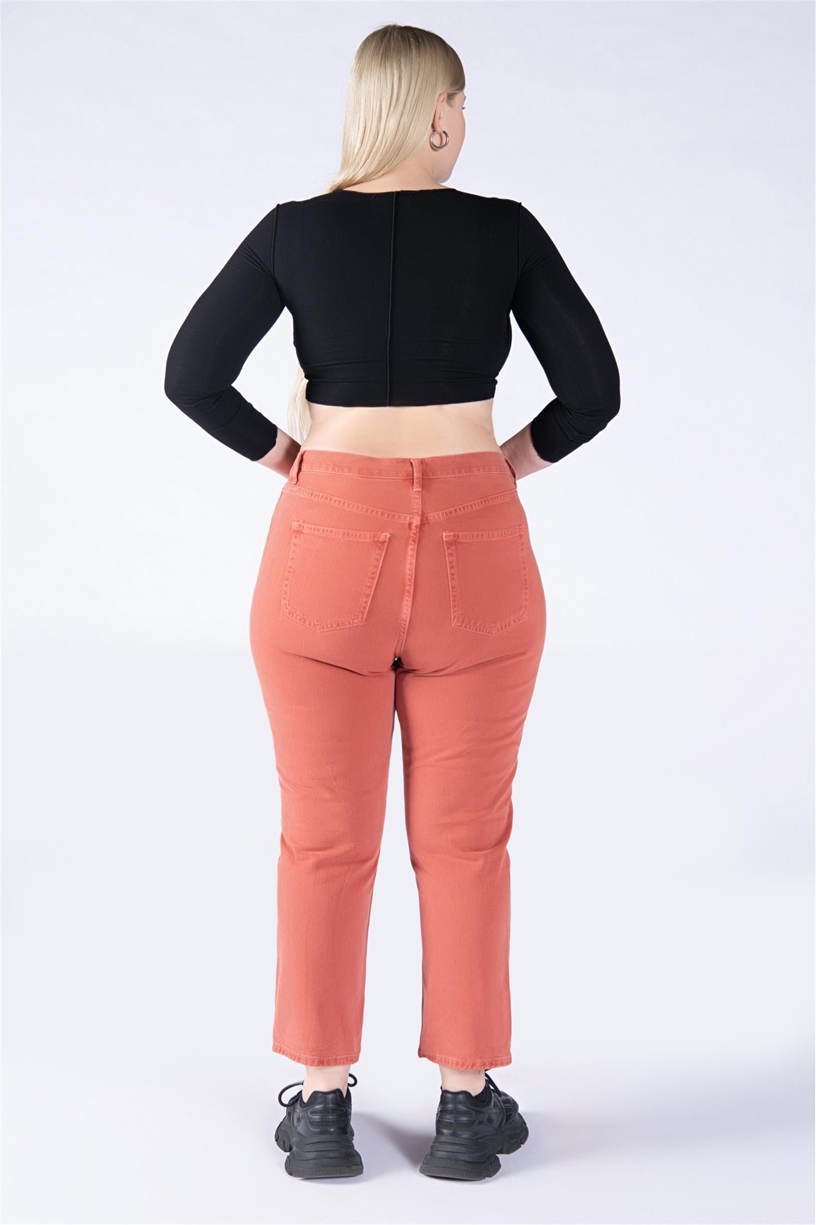 Büyük Beden Kiremit Yüksek Bel Mom Jeans